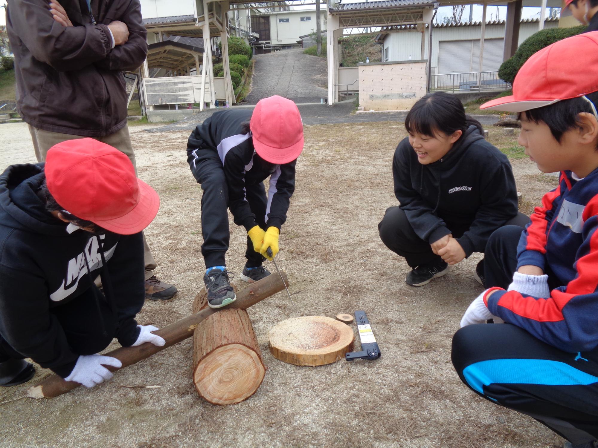 11月22日(金曜日)、苗木財産区主催の森林体験学習が苗木小学校グラウンドで行われました。
