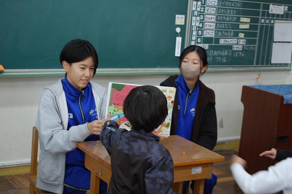 小中連携読み聞かせ 更新日:2025年12月17日 15日(月曜日)中学生ボランティアが阿木小学校へ出かけ、読み聞かせを行いました。これは小中連携の事業として、年2回計画されています。今回は2回目となります。小学生の子たちも、お兄さんお姉さんの読み聞かせを楽しみにしてくれていました。また、来年もお邪魔します。
