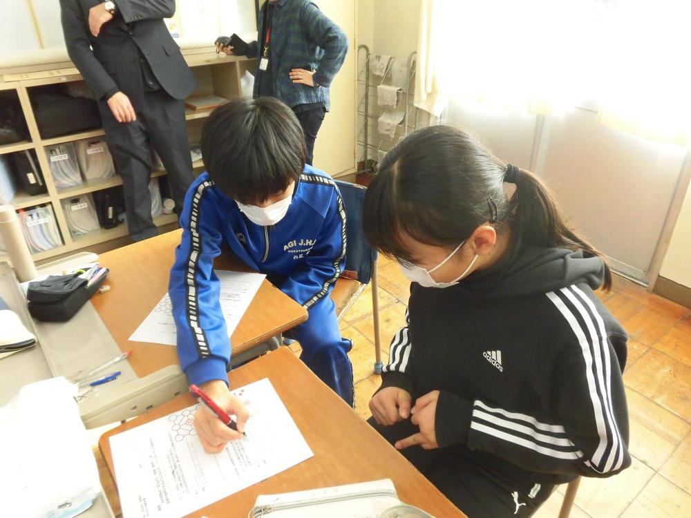 30日(金曜日)令和8年度入学予定の6年生をお迎えして、学校説明会や授業見学、授業体験会を実施しました。学校説明では、学校生活や授業、委員会や部活動などについてクイズを交えながら紹介することができました。その後は、小グループに分かれて特別教室を案内したり、授業を見学したり学校の施設などを見学しました。最後は6年生も参加した授業体験会を行いました。グループ内で交流し学び合いながら楽しそうに問題を解くことができました。