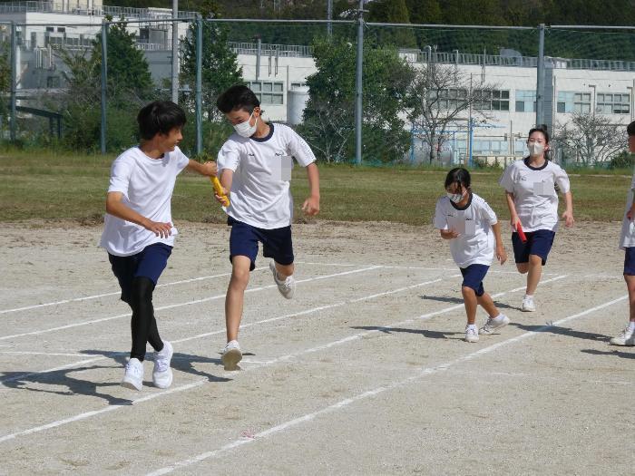 9月30日「1A~昼休みの大繩練習」 更新日:2025年09月30日 1A、お昼休みの練習は、早くに集まって、やる気まんまんです。 しかし、なかなか続きません。 2年生の大繩の写真を撮って、さあ、1Aの写真を撮ろうとした時、縄を片付け始めました。そして、数人が校舎に向かってダッシュ‼ バトンを取りに行って、リレーの練習に変更‼ 切り替えが早いというか、 あきらめが、いさぎよい、というか・・・(笑) やる気が伝わってきて、とっても素敵だね。