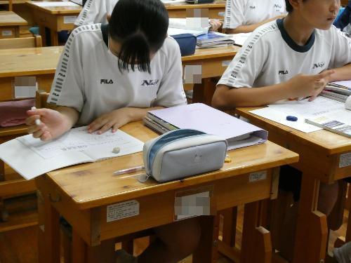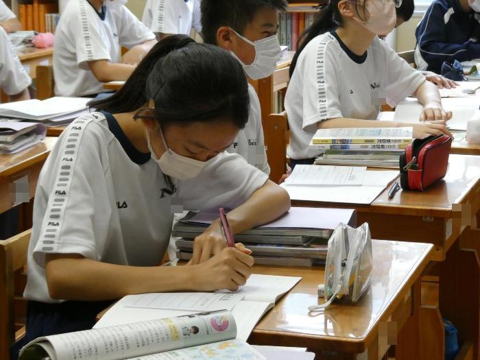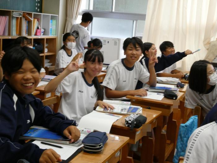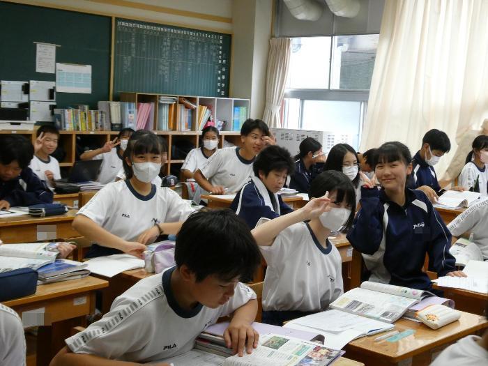 10月7日「1B~授業風景」 更新日:2025年10月07日 カメラに向かって、期待通りのリアクション、期待通りの表情をありがとう(笑) 1時間目は団練習。その後の2時間目の授業です。練習に疲れて、ダラダラ~っとした雰囲気は一切なく、とっても明るい1Bです。 明るすぎて、カメラにピースする人口が激増していました。 授業の邪魔になるので早々に退散しました。