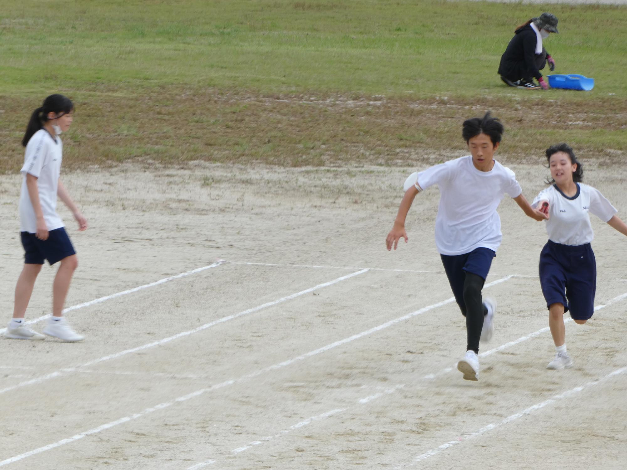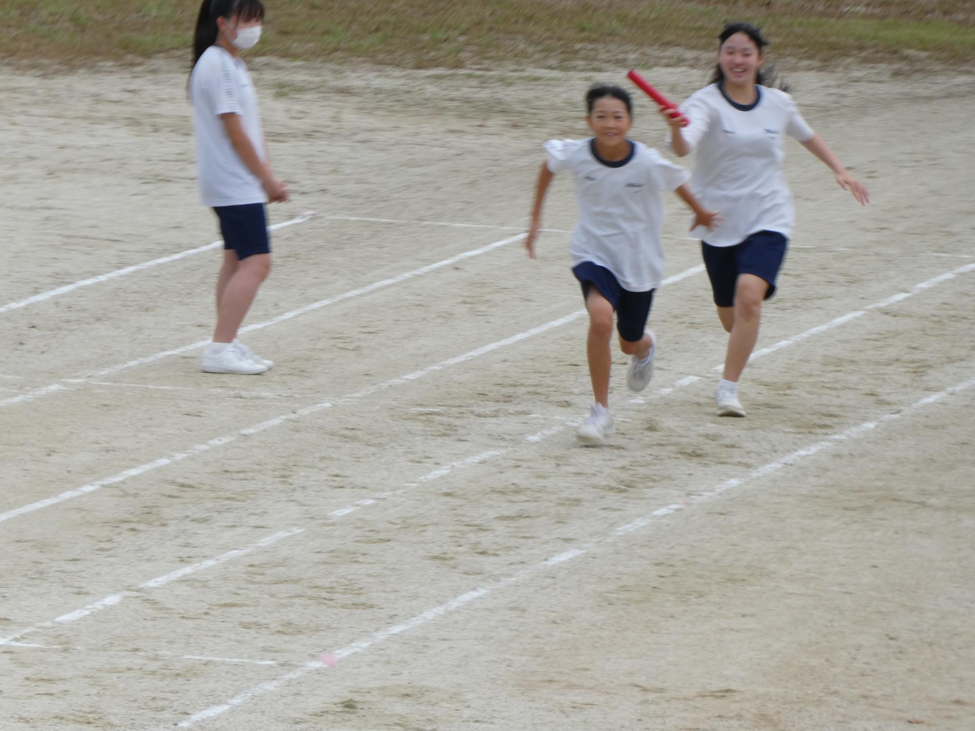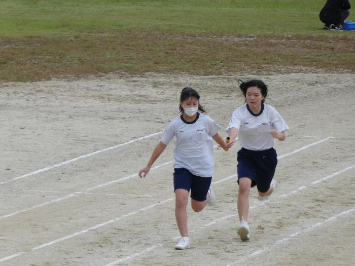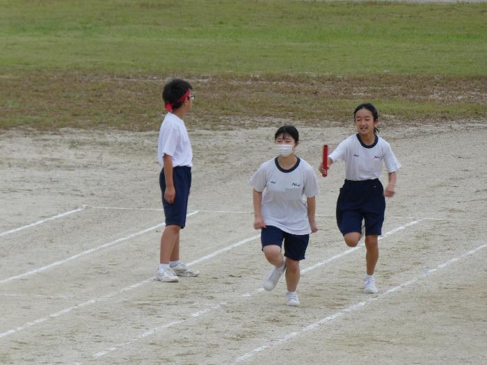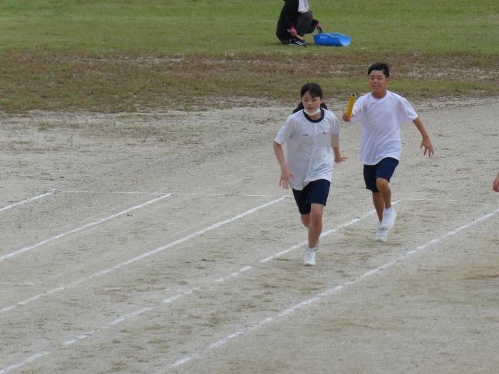 1時間目が団練習。そして、2時間目が体育。2時間続きで体育みたいなもんですね。リレーの練習をしていました。バトンパスだけではなく、みんなしっかり走っていました。