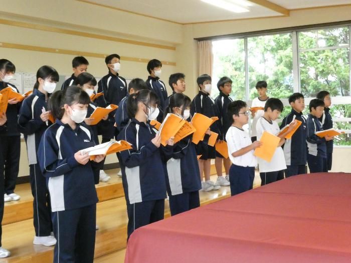 途中、アルトのパートでは蜂が入ってきて大騒ぎでしたが、無事に追い出しました。「校長先生、ありがとうございました~。(拍手付き)」と、とても丁寧にお礼を言っていただきました。(いい子たちだ~💛)