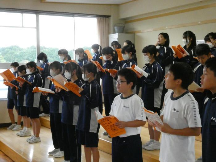 去年から場所をアートピア付知にしました。小さなホールではあるけれど、音響効果が良く、客席からはステージが見やすい。ライトを浴びてステージに立つという経験などないという生徒もいることでしょう。いい経験、いい思い出になるはずです。2・3年生はもう既に自分たちがステージに立っているイメージを描きながら練習をしていることでしょう。1年生は、体育館で歌うようなイメージしか描けていないことでしょう。