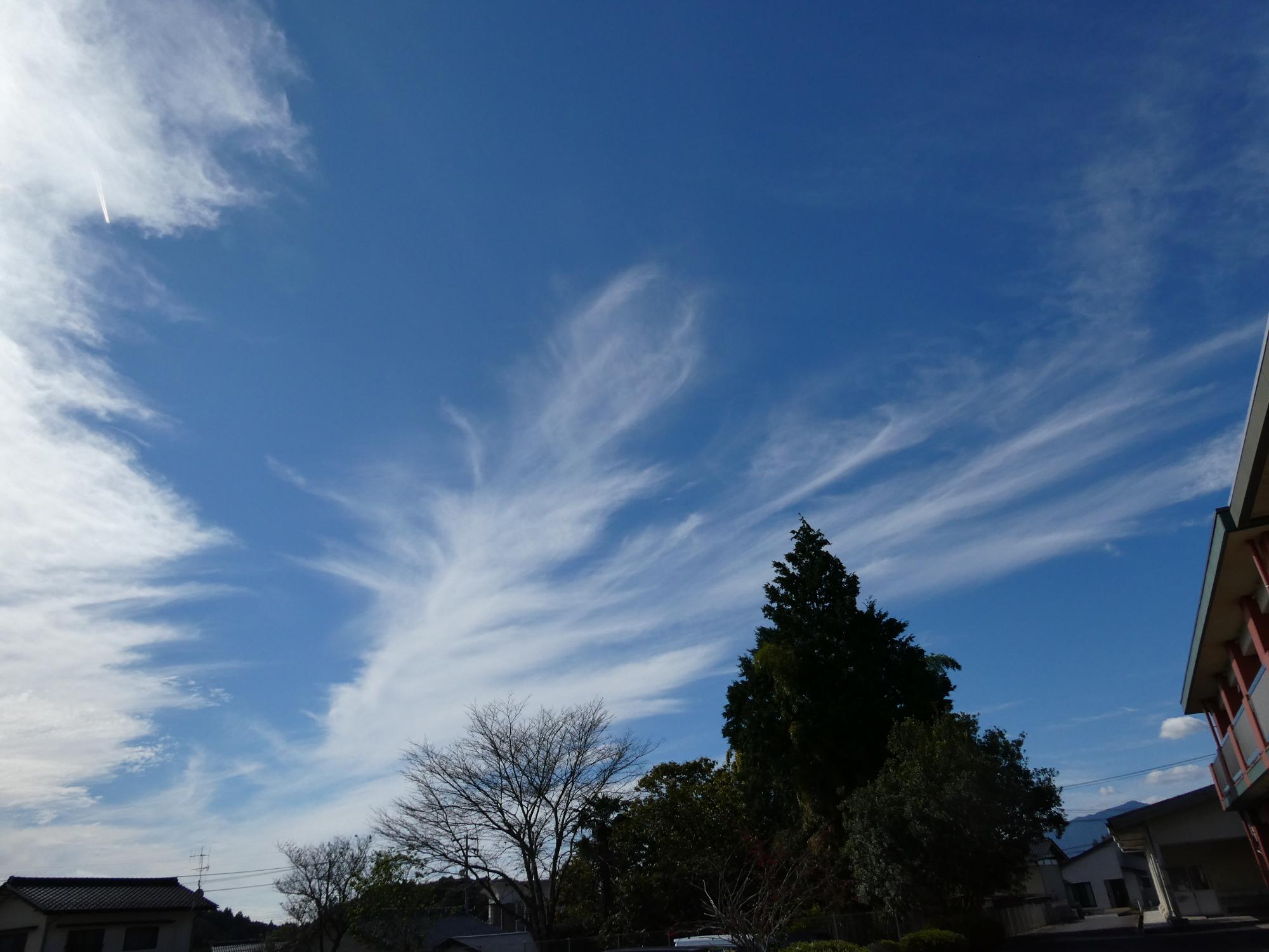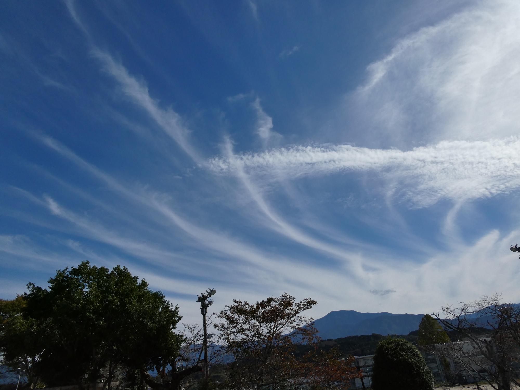 空を見上げると秋の空。青い空にきれいな雲がかかっていました。芸術作品のような雲だなと思って、撮影してしまいました。
