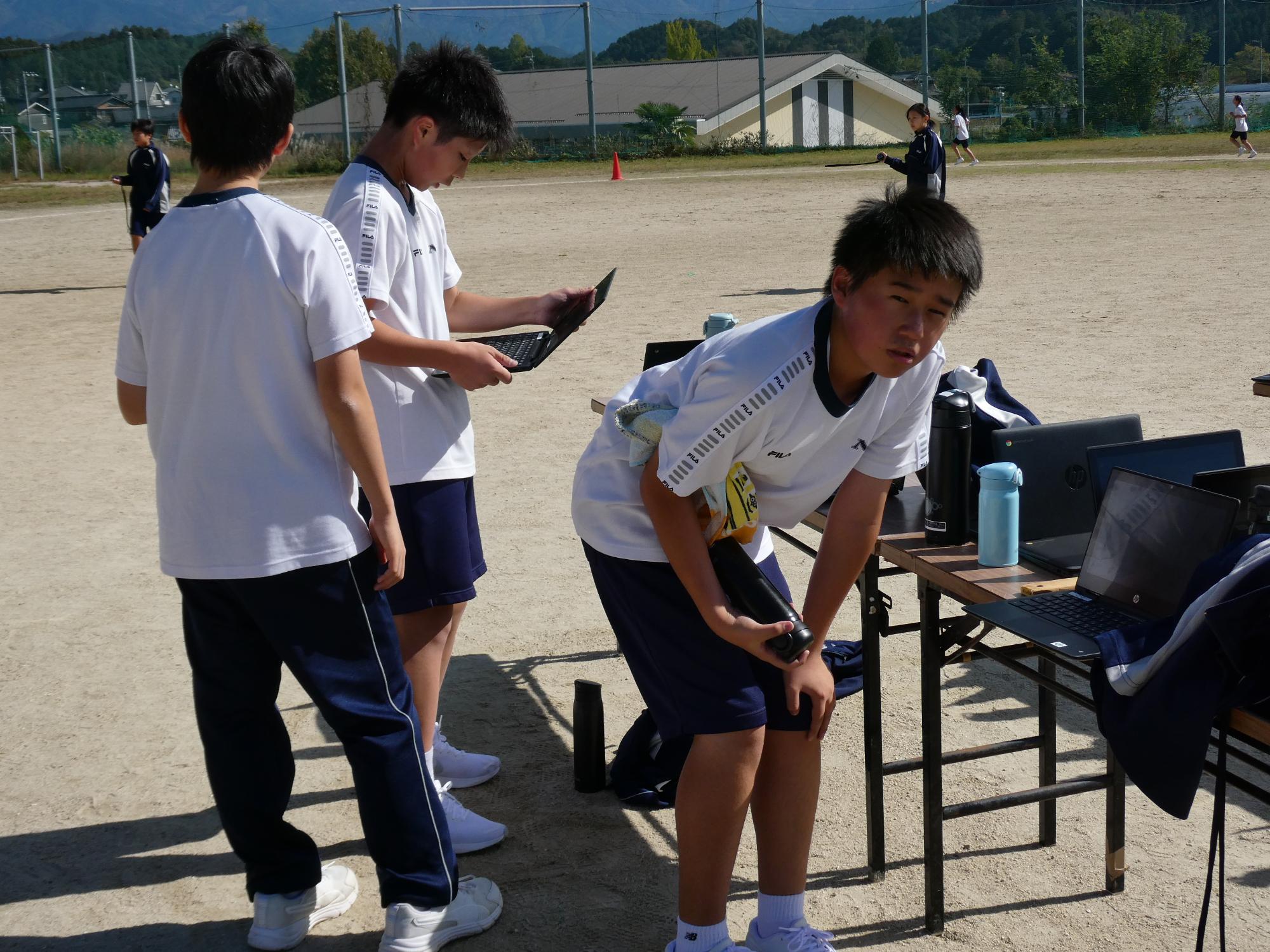 記録はクロームブックに記録します。走るだけでなく、自分の走りを分析します。科学的、分析的に行うのが、今の体育科のようです。昭和の体育は、「根性」でした(笑)