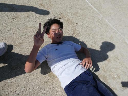 ゴールして寝転んだので、ちょっと心配しましたが、心配ありませんでした。ピースしてますから(笑)