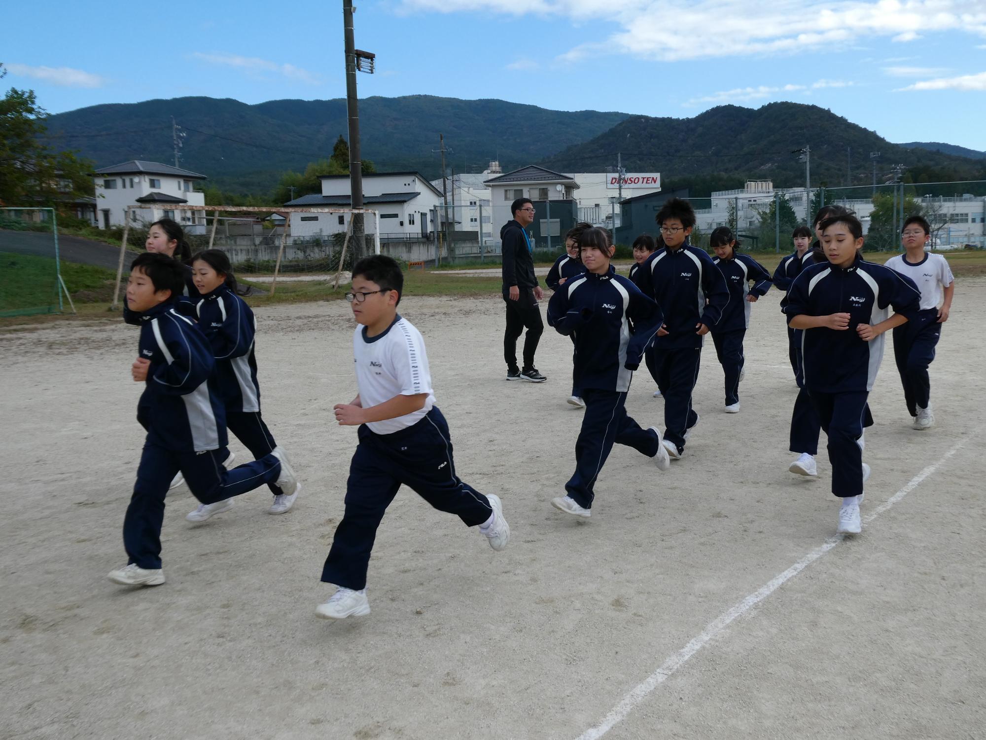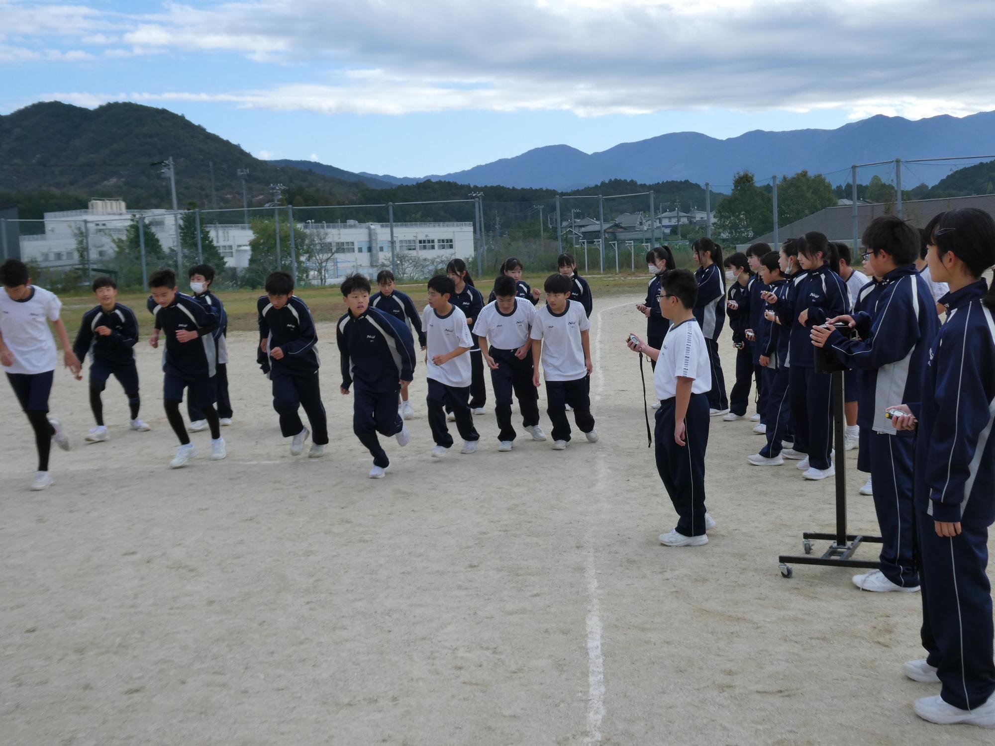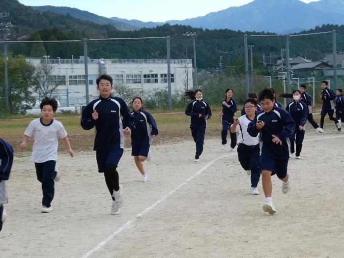 1Aの体育の授業風景です。長距離走ですが、ほとんどがジャージを着ています。