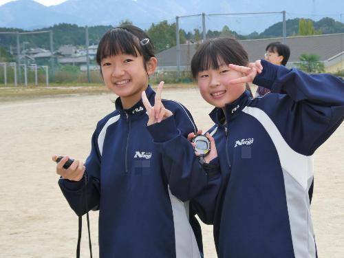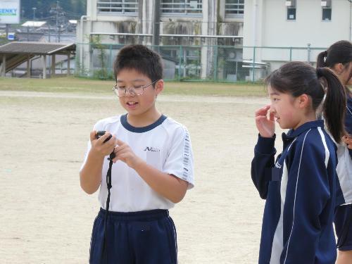 初期計測は終わっているそうで、200m、400mを自分の計測したタイムよりちょっといいくらいのタイムに設定して、そのタイムで毎回走れるように練習しています。ペアの子がタイムを計ります。