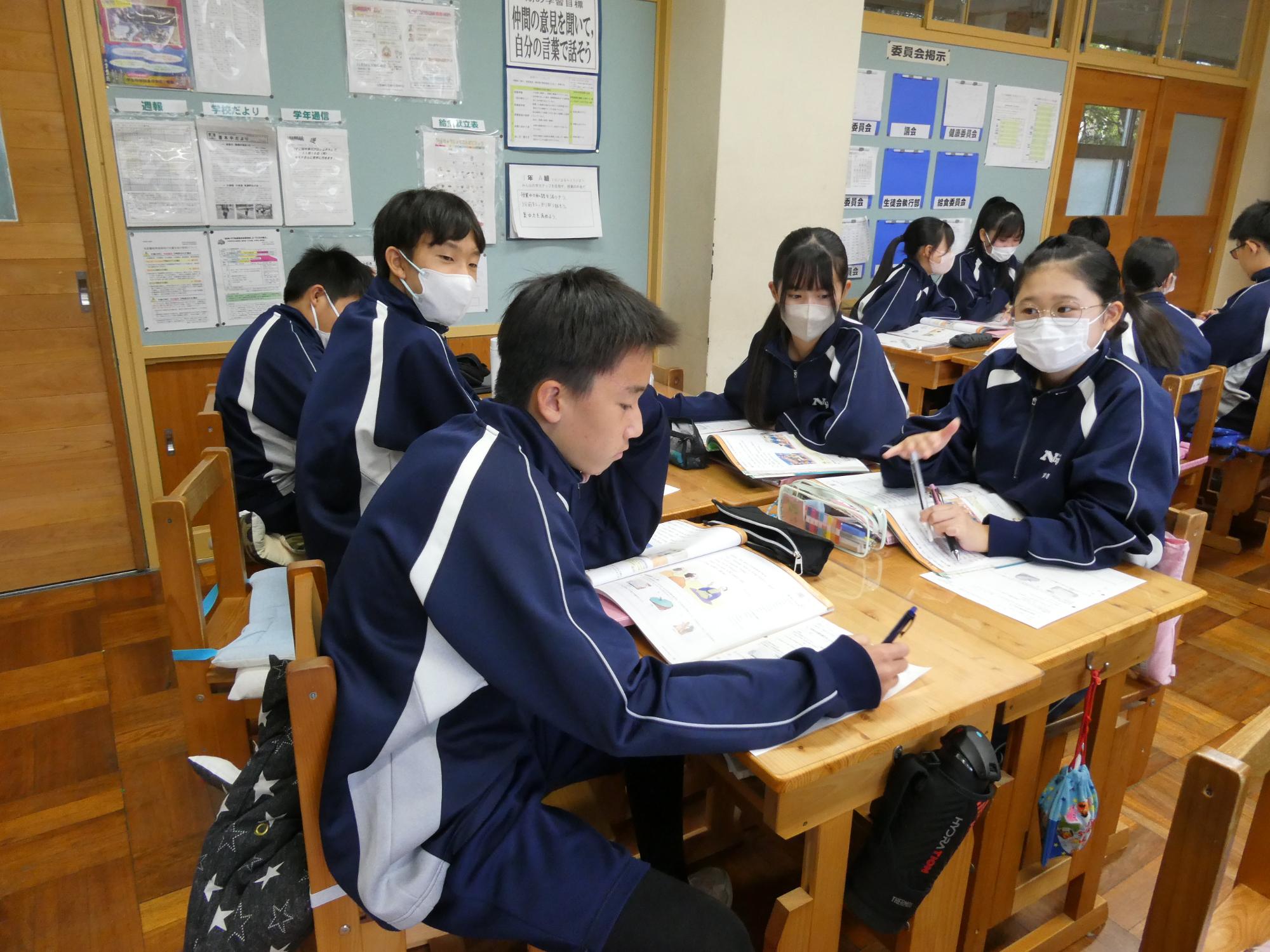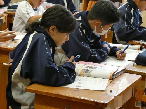11月5日「1A~授業風景」 更新日:2025年11月05日 1Aの英語の授業風景です。 「この〇〇は誰の持ち物ですか?」「〇〇さんの〇〇です。」という会話文を勉強していました。 中学生のころにもっとまじめに勉強しておけばよかったなぁ~と、ずっと思っているのが英語です。英語と数学は積み上げの教科だから、どこかでつまずいてしまうと、次が分からなくなったりして諦めてしまう・・・。そういう子が多いのではないかな。中1の英語は大事だから、これからも毎日頑張ってね。