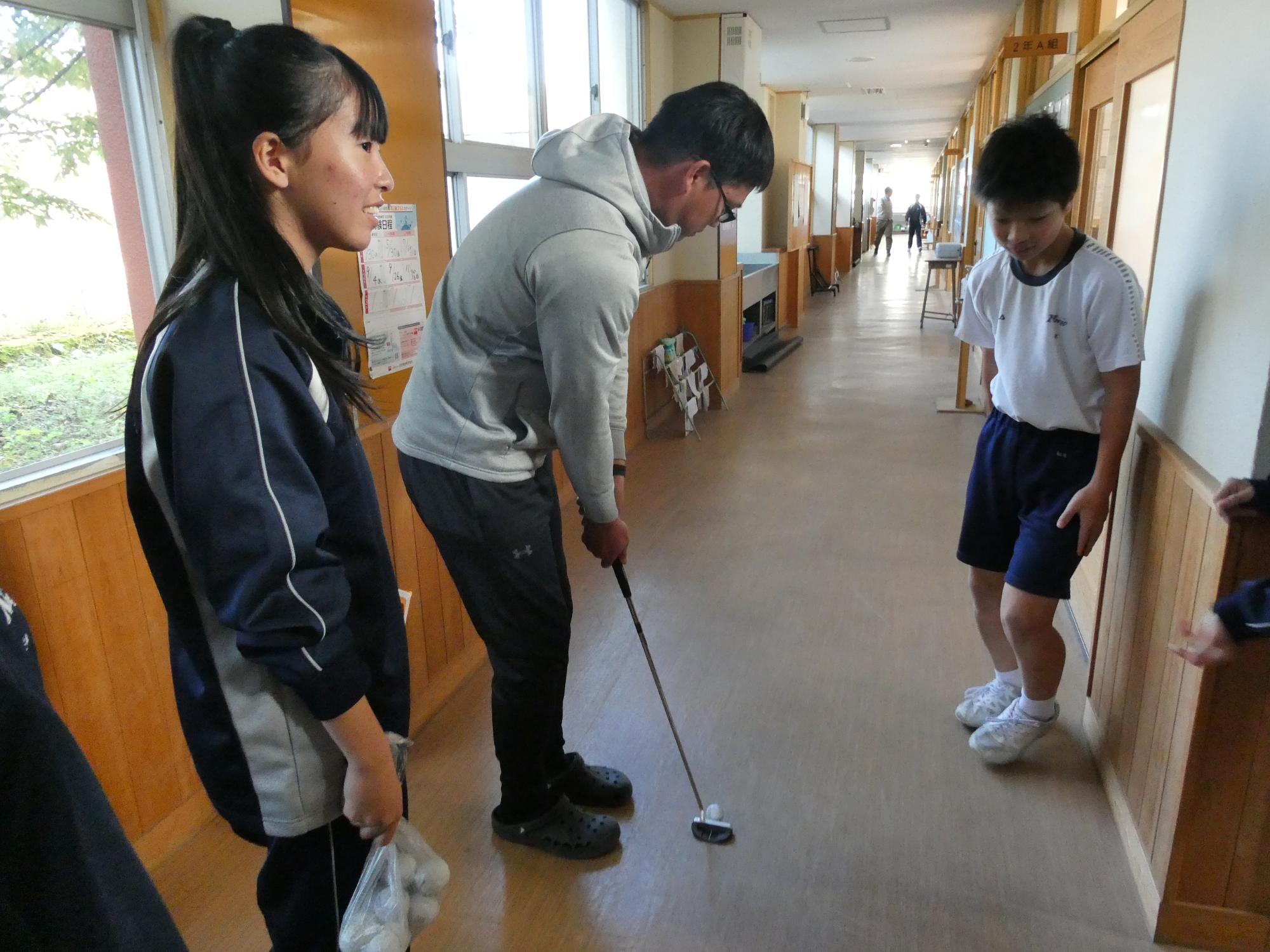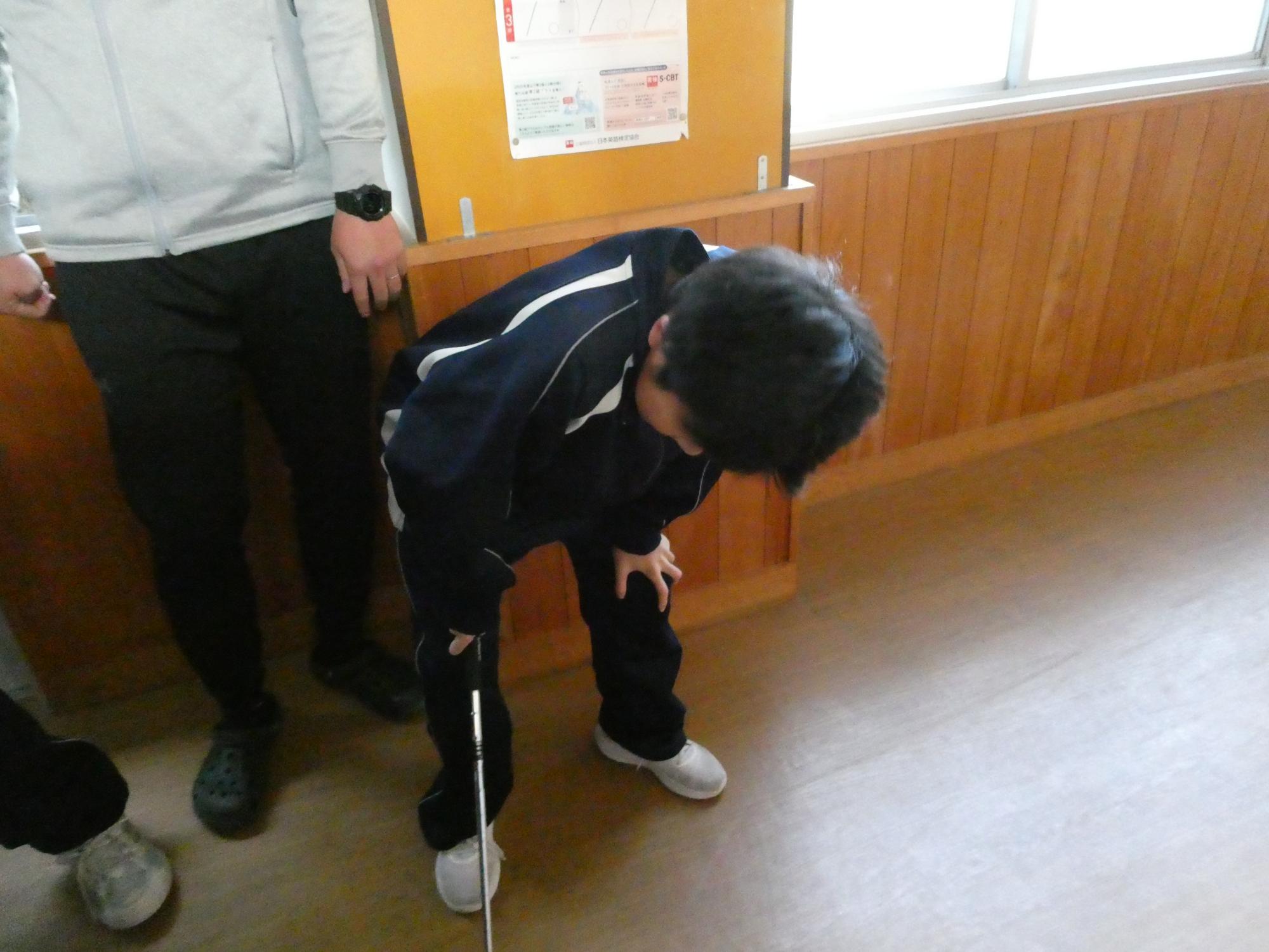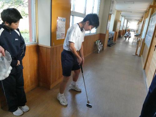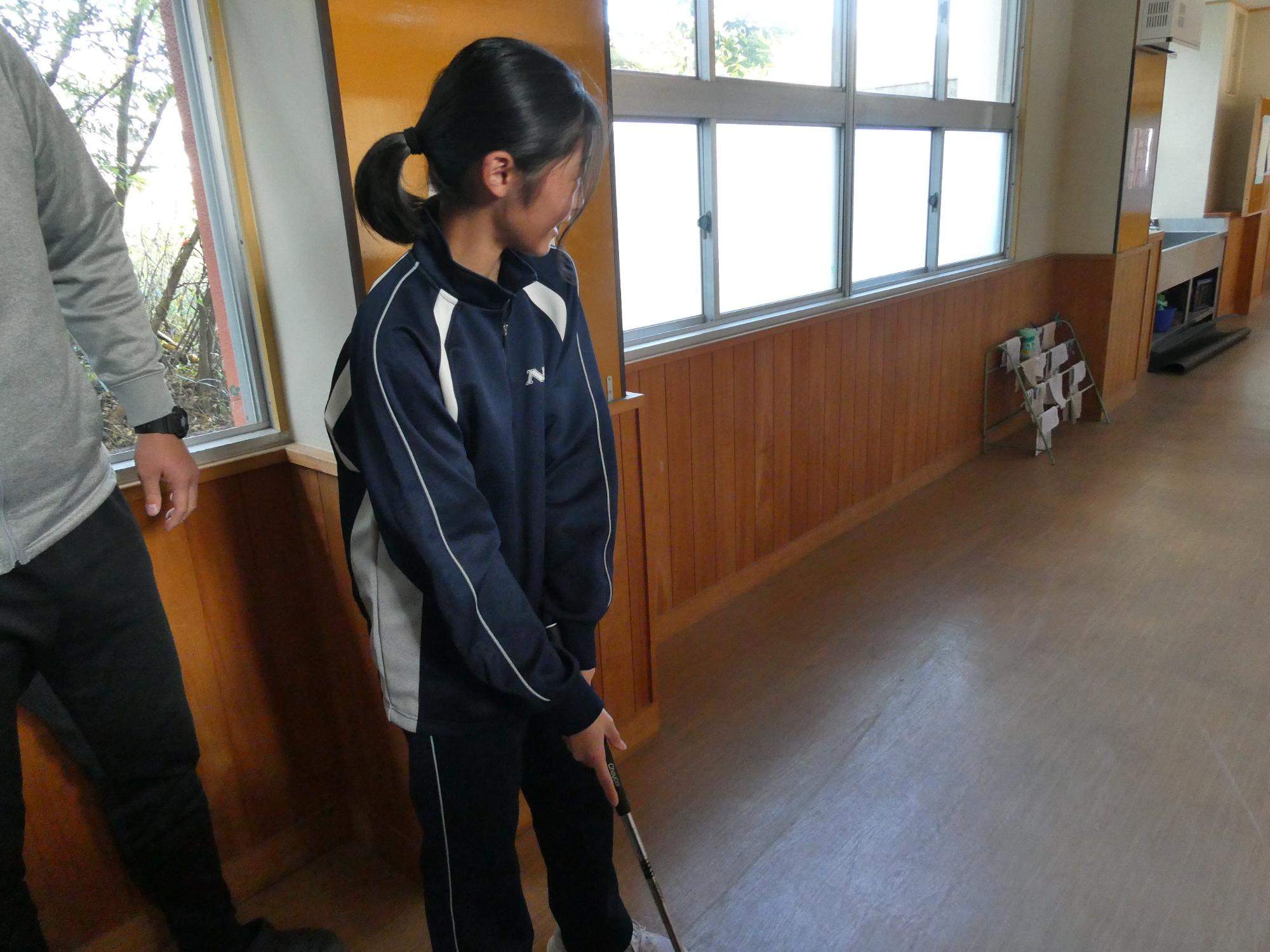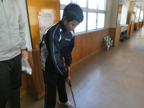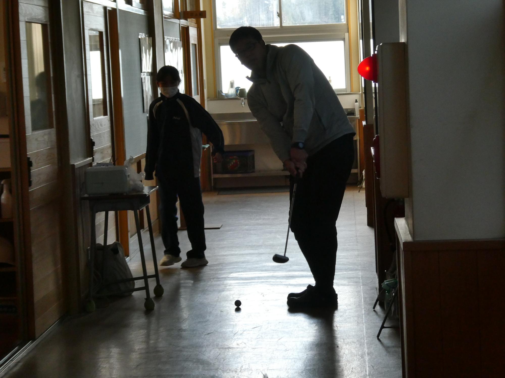 廊下が長すぎるので、2/3のところからパターで打って、壁や障害物にぶつかることなく、突き当りまでとどければゴール