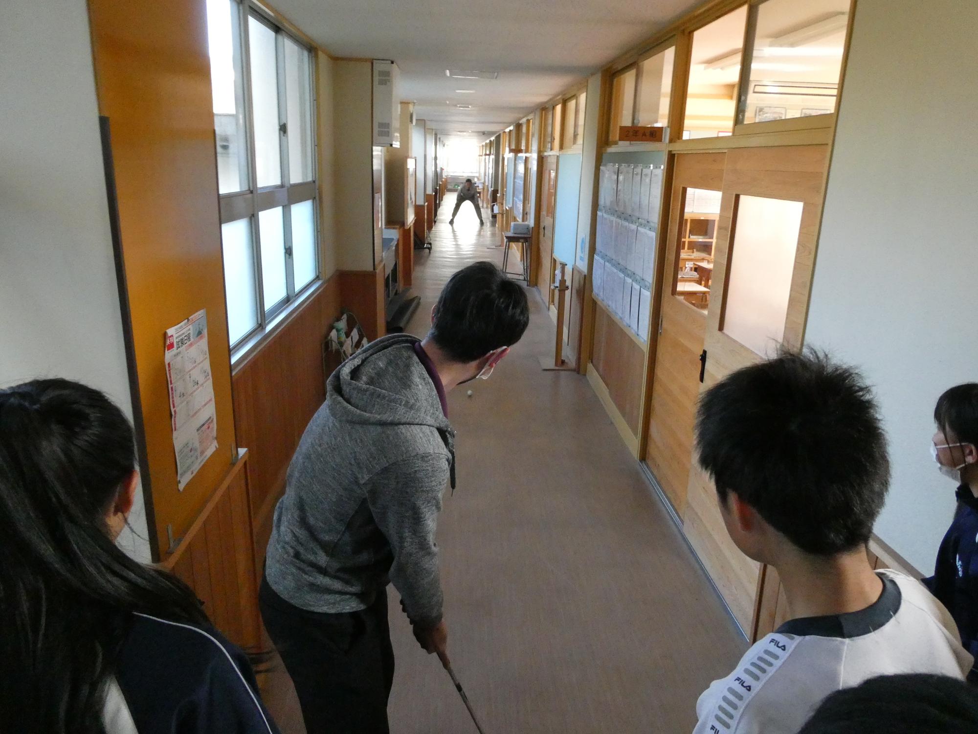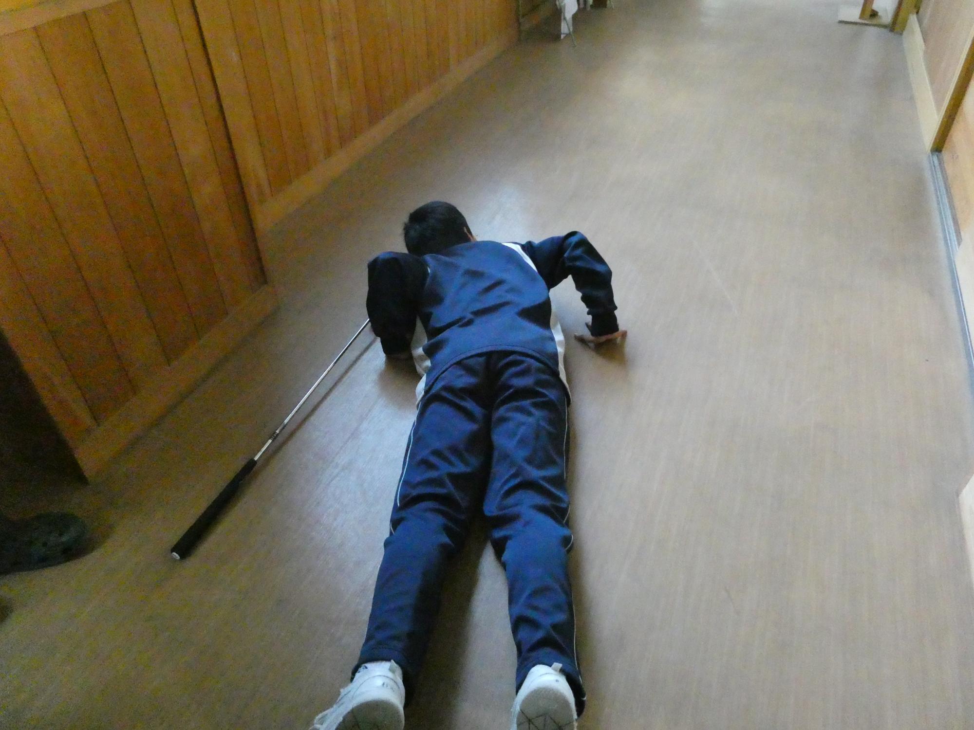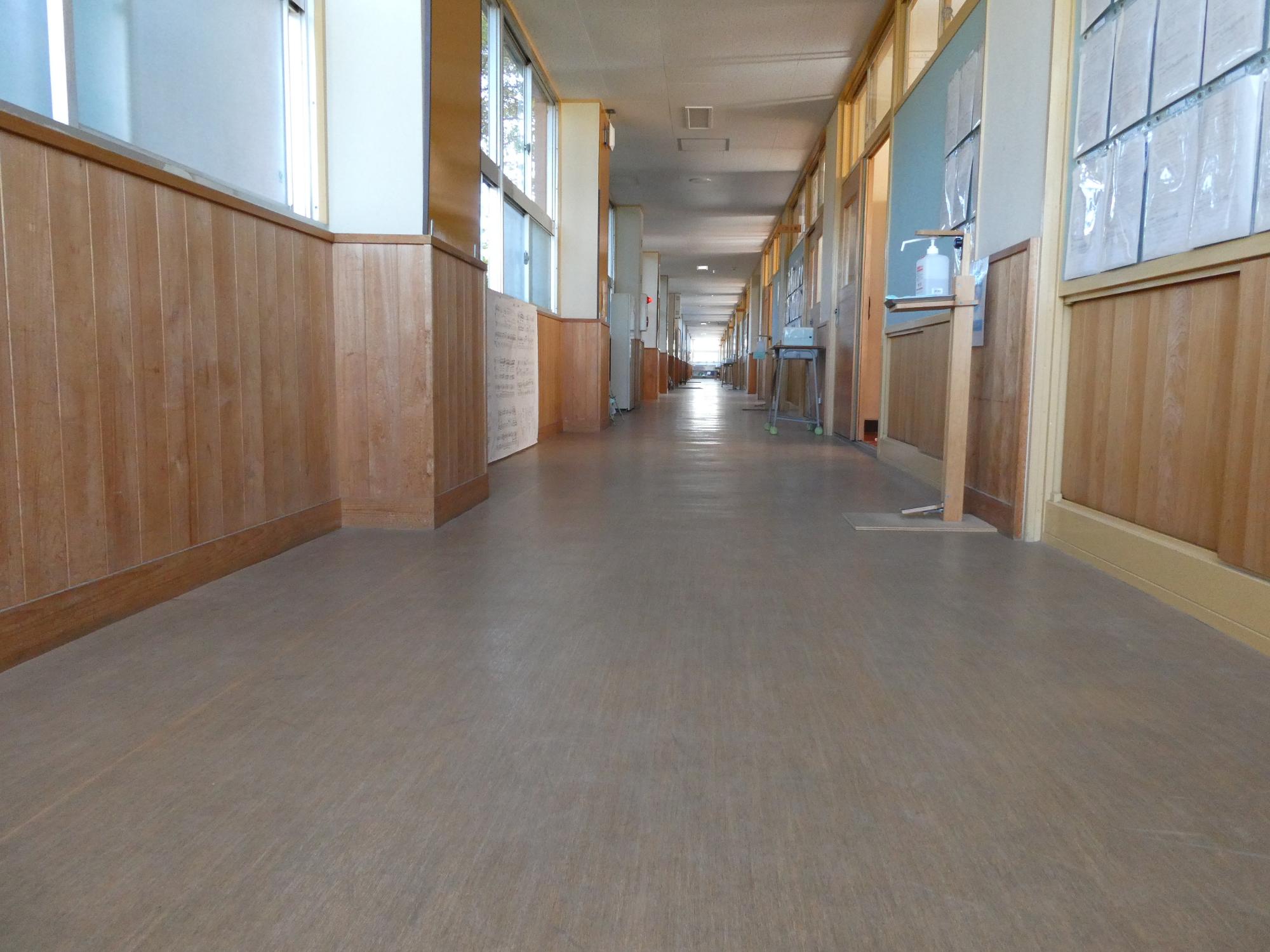 2・3年生がインフルエンザによる学年閉鎖のため、今日、学校にいるのは1年生だけです。廊下の2/3は誰も人がいない、静かな、長い空間になっています。その長さ、約、50メートル・・・