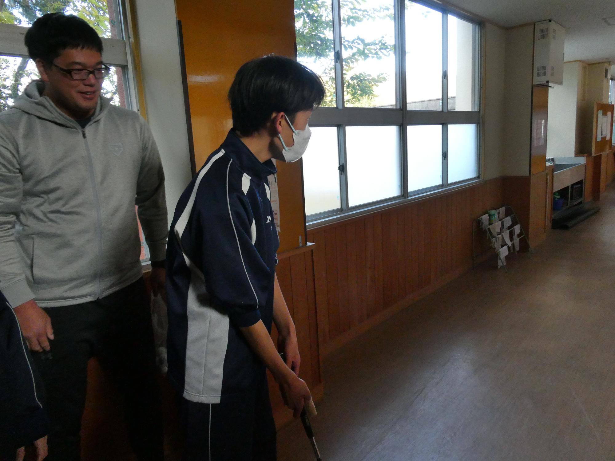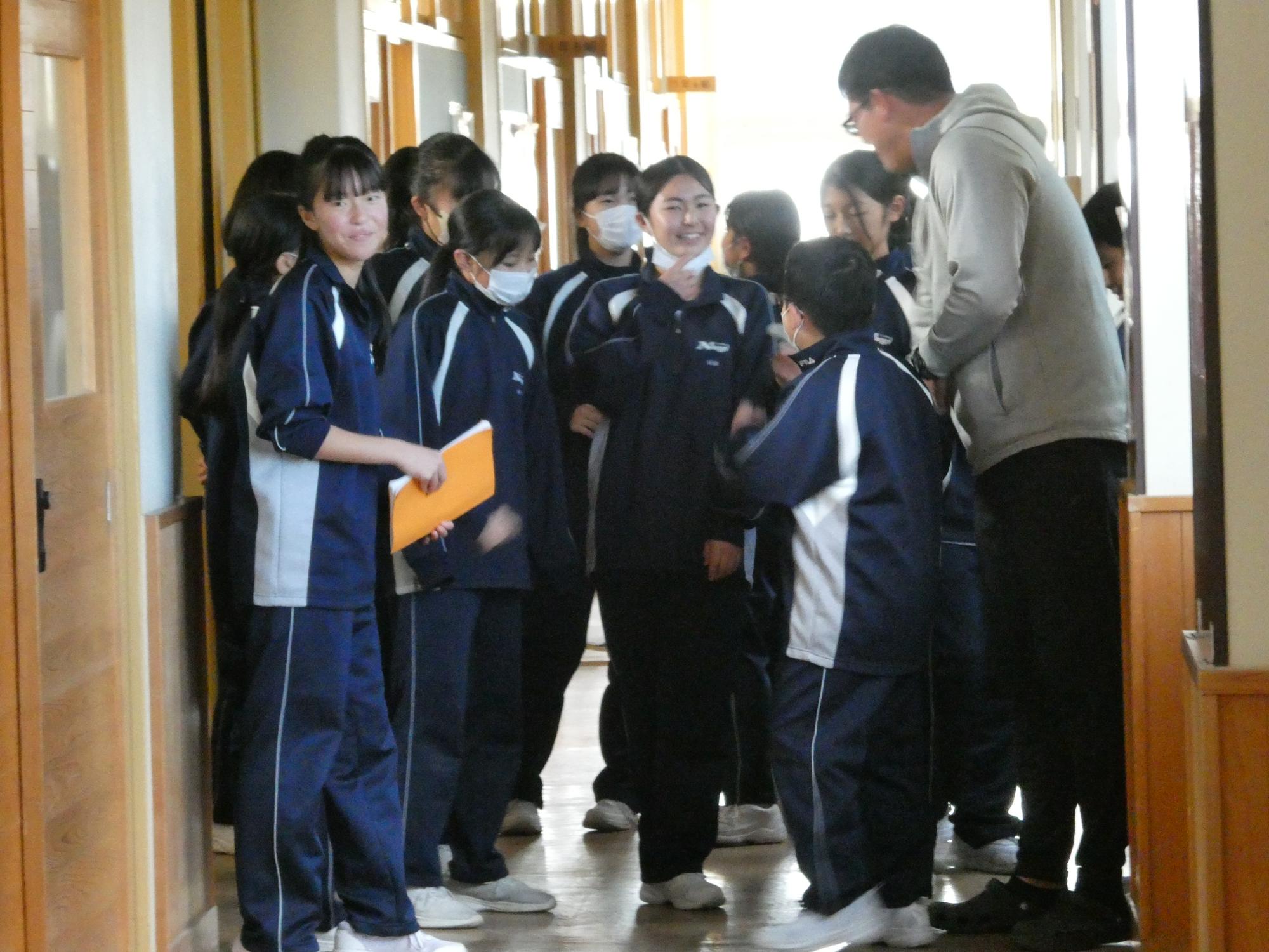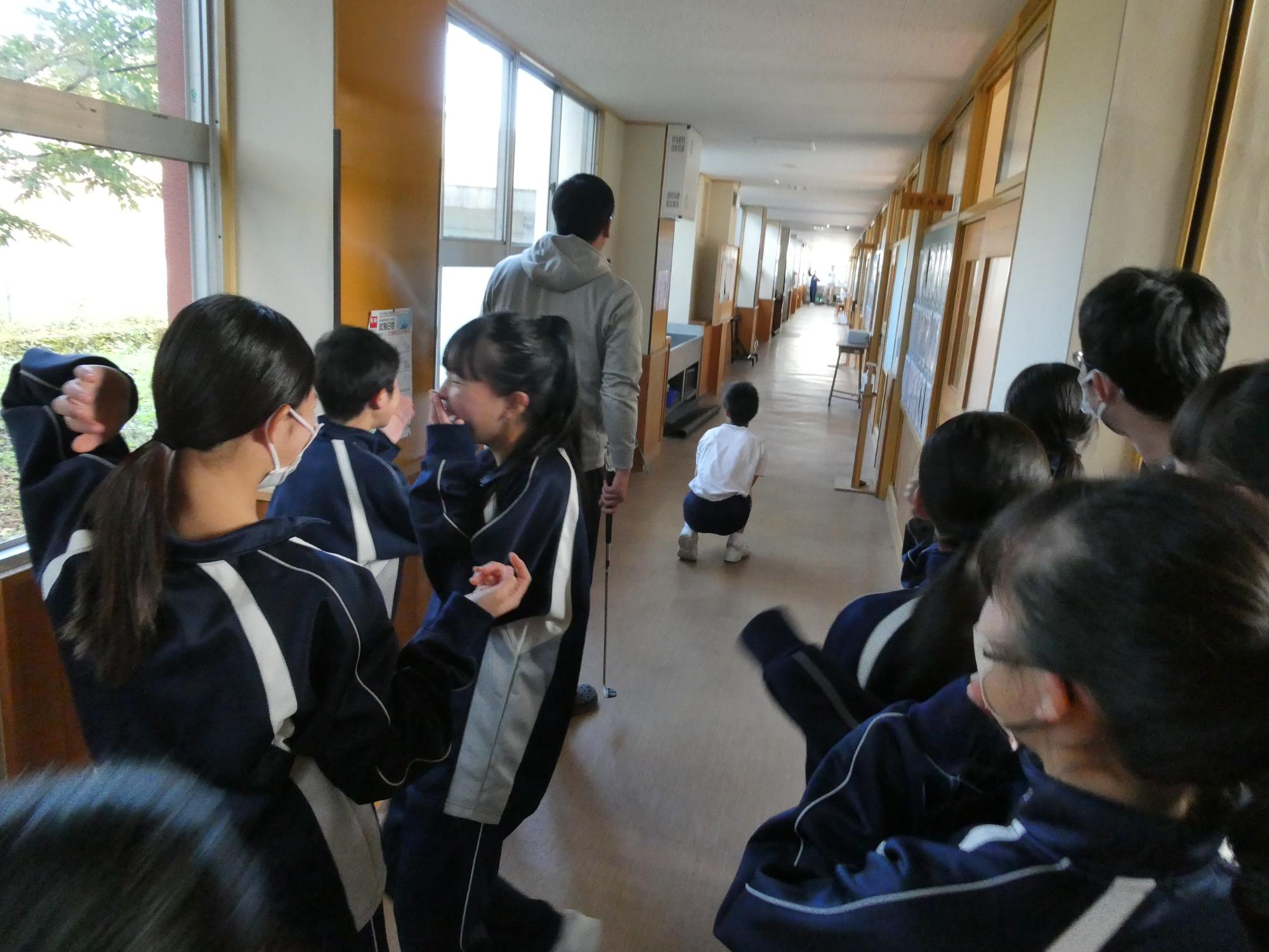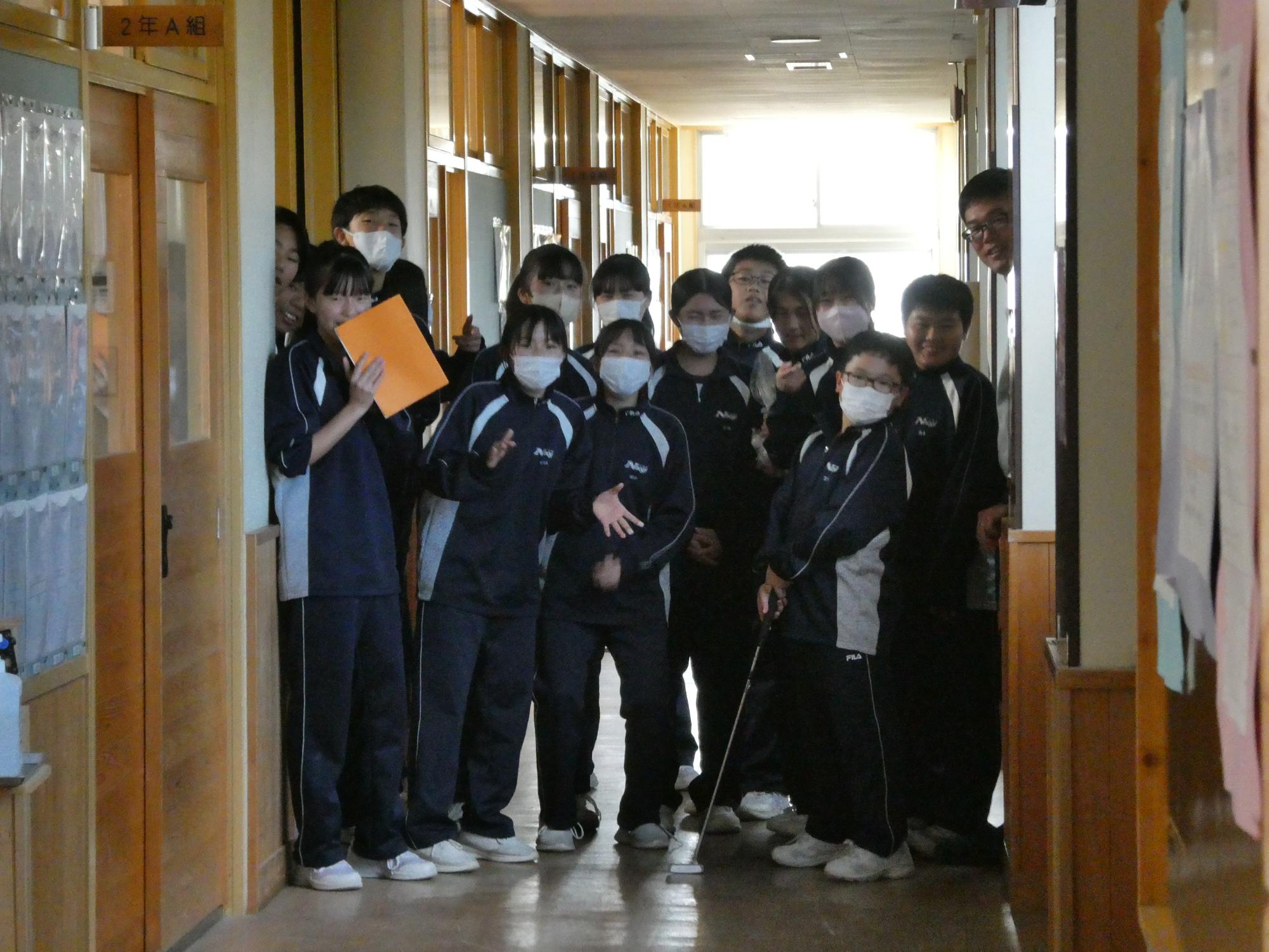2・3年生がインフルエンザによる学年閉鎖のため、今日、学校にいるのは1年生だけです。廊下の2/3は誰も人がいない、静かな、長い空間になっています。その長さ、約、50メートル・・・