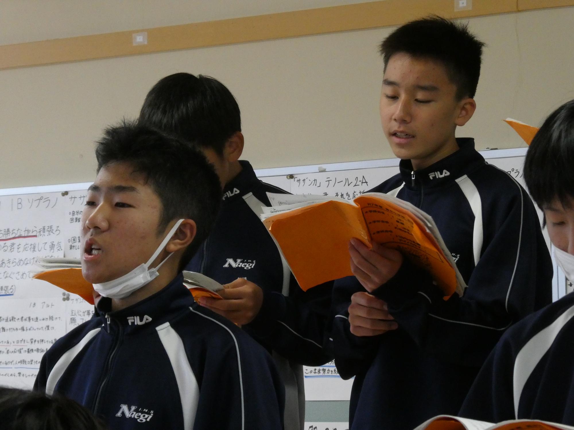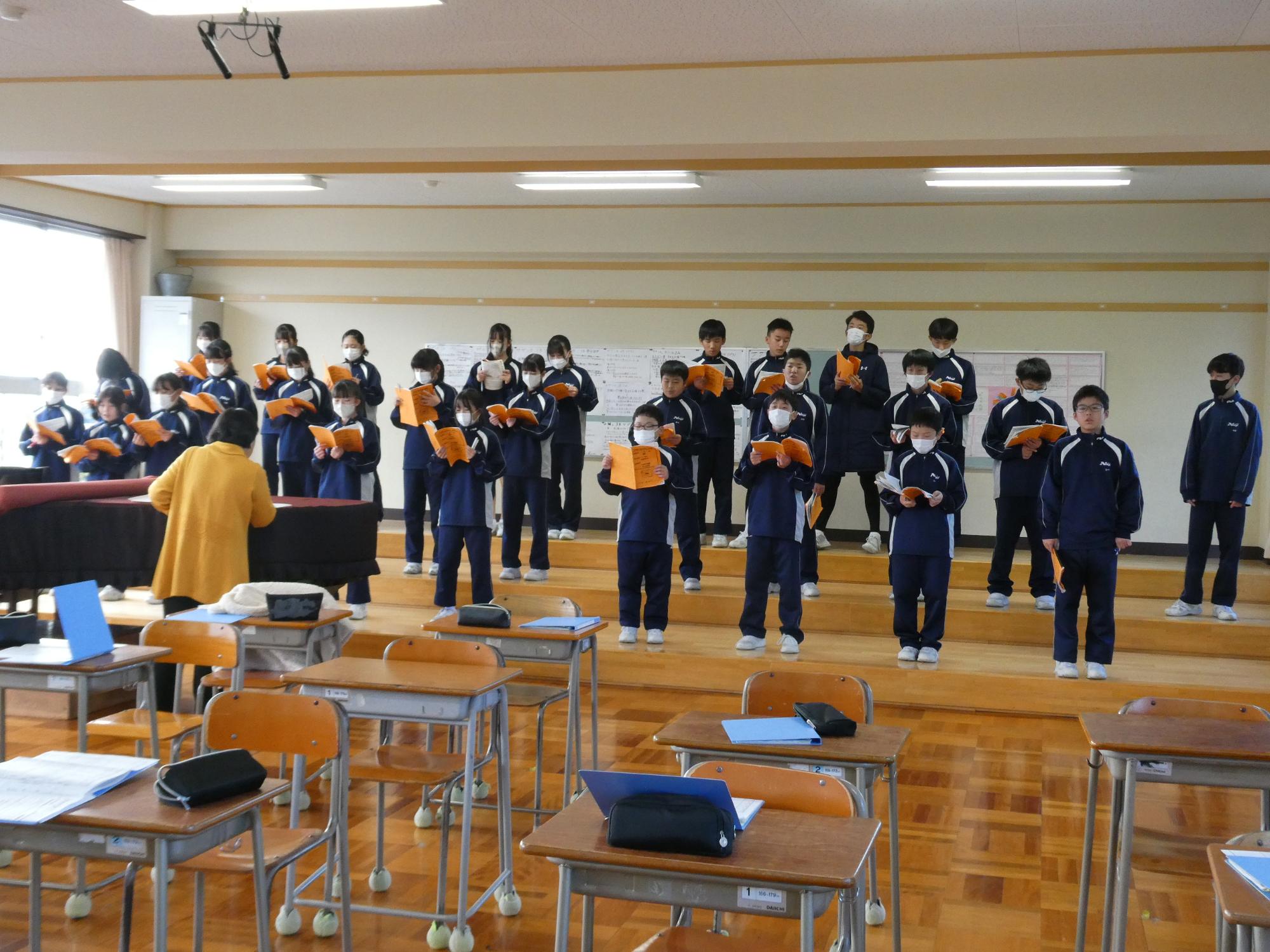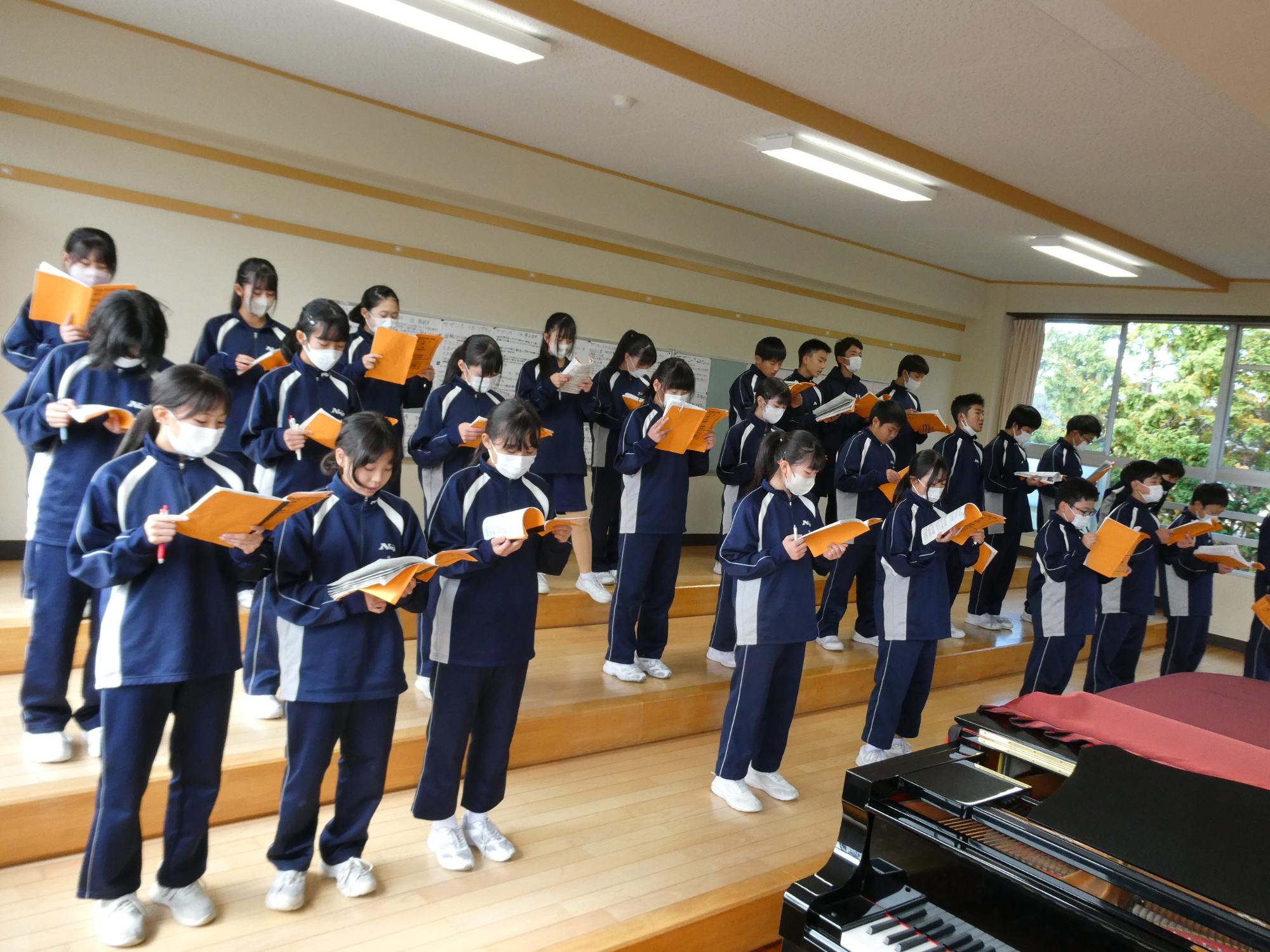 11月11日「1A~授業風景」 更新日:2025年11月11日 1Aの音楽の授業風景です。 インフルエンザ感染予防です。・・・窓、全開・・・さむっ‼ 合唱祭まで、あと2週間ちょっとになりました。1Aもちょっと本気モードになってきたかな。いい顔して歌っていると思います。楽譜なしで歌えるようになると、もっと変わってくるはず・・・。これからの変化、成長が楽しみです。