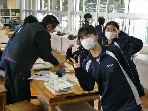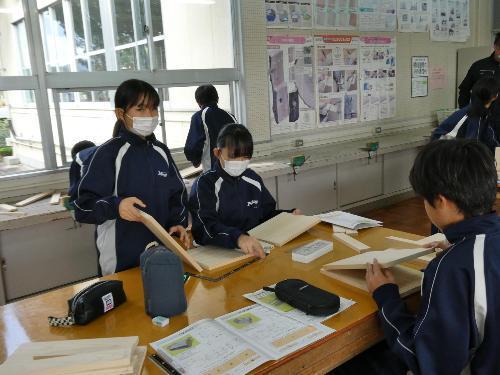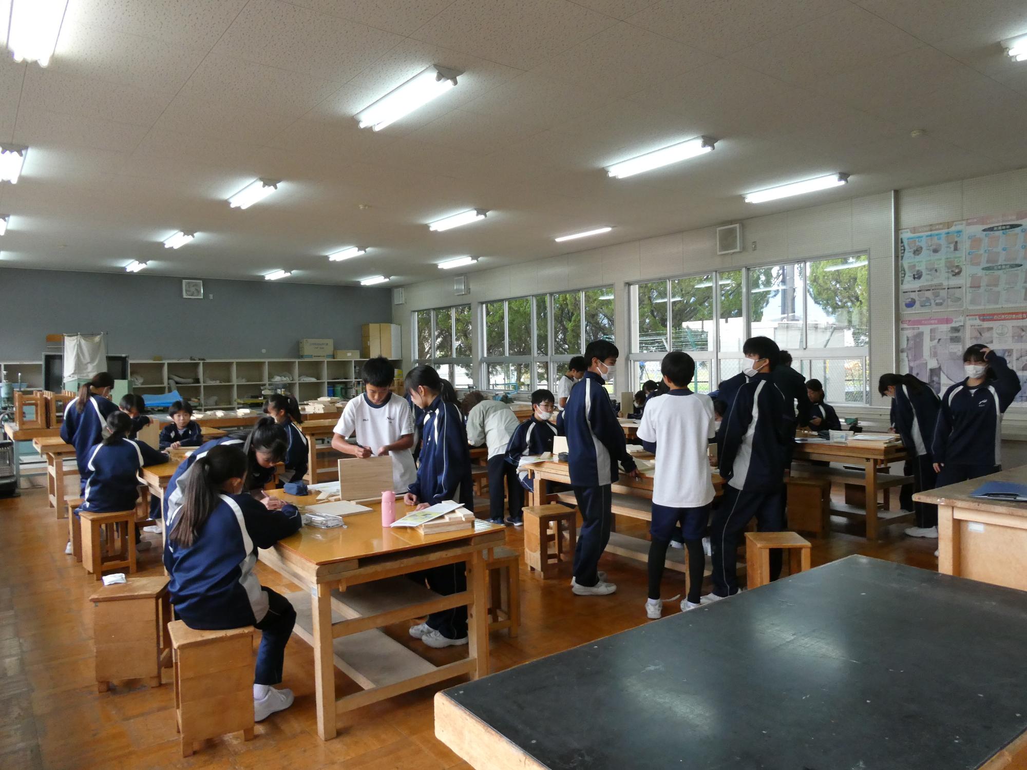 本棚のようなものの木工作品作りですね。デザインがいくつかのパターンになっていて、自分で選択して作るようです。
