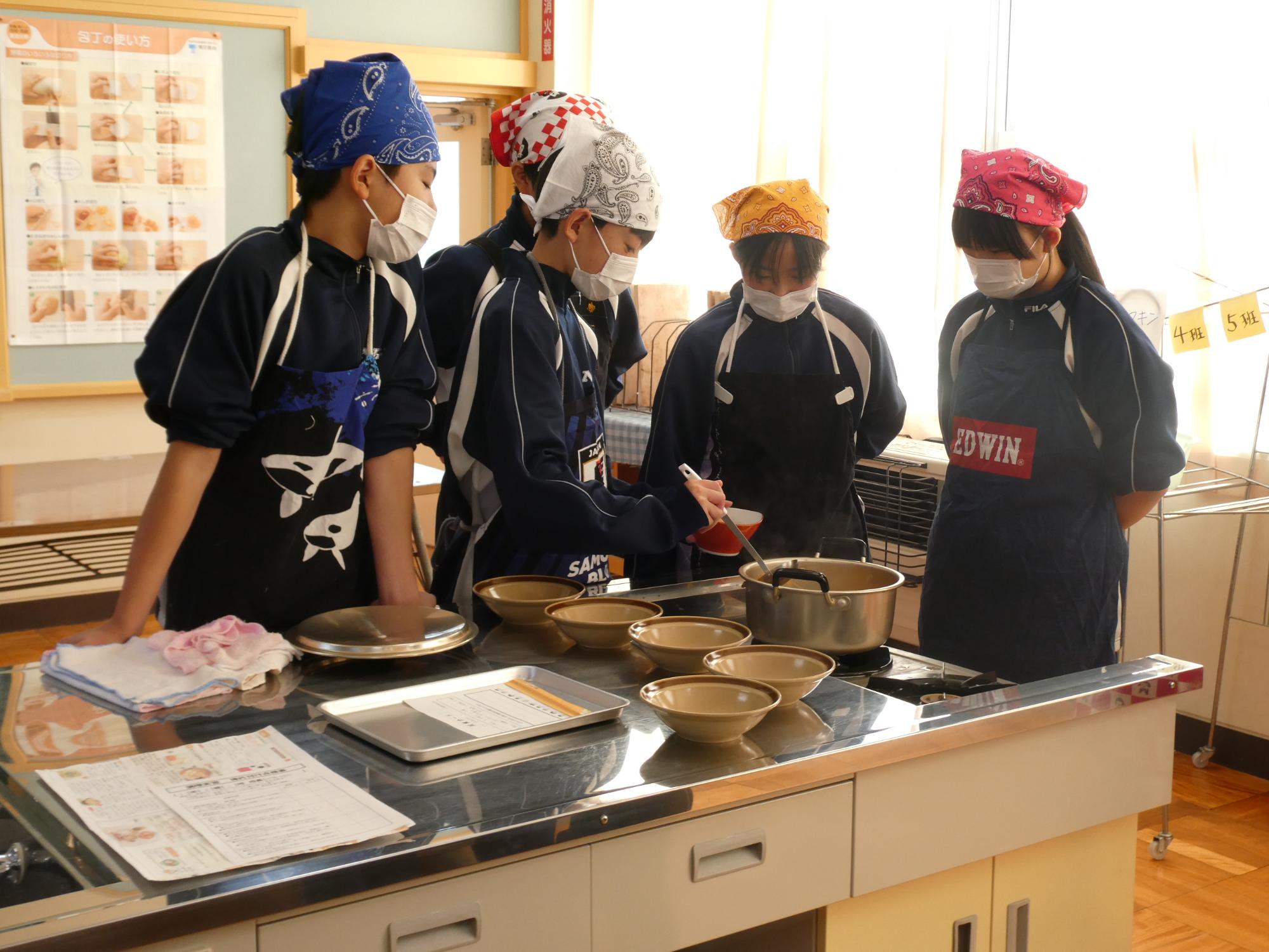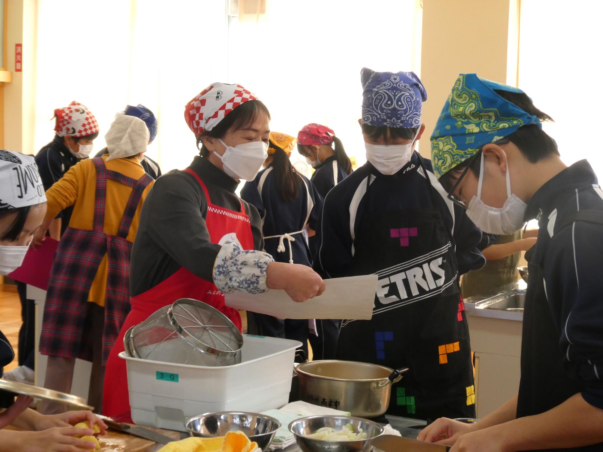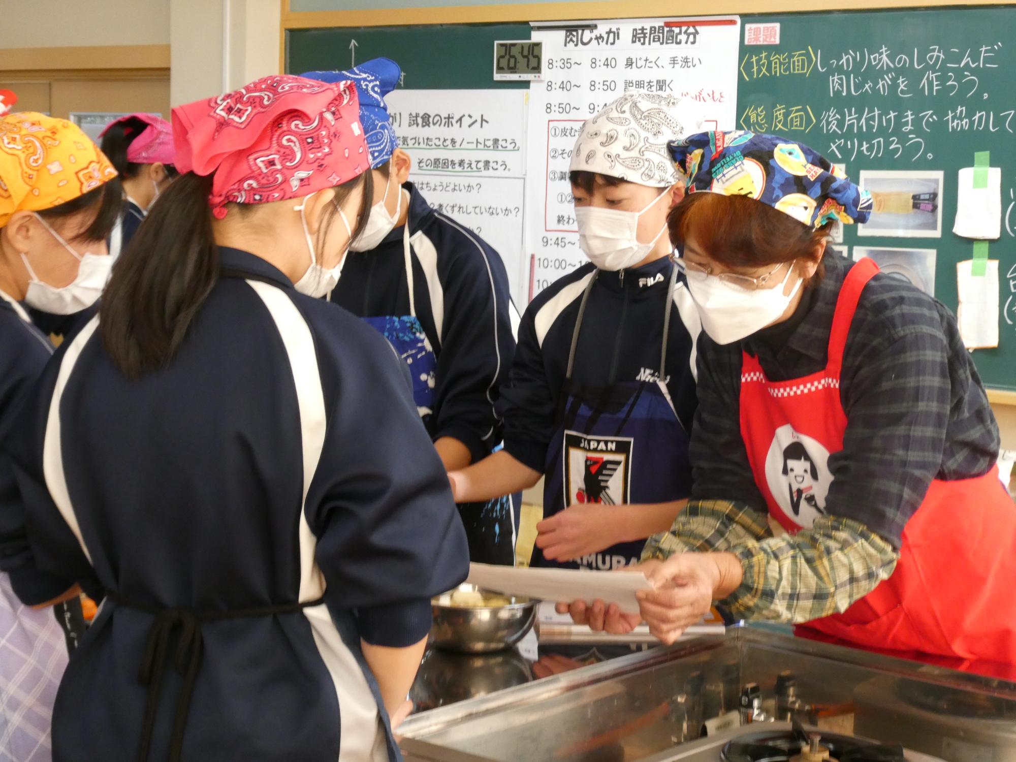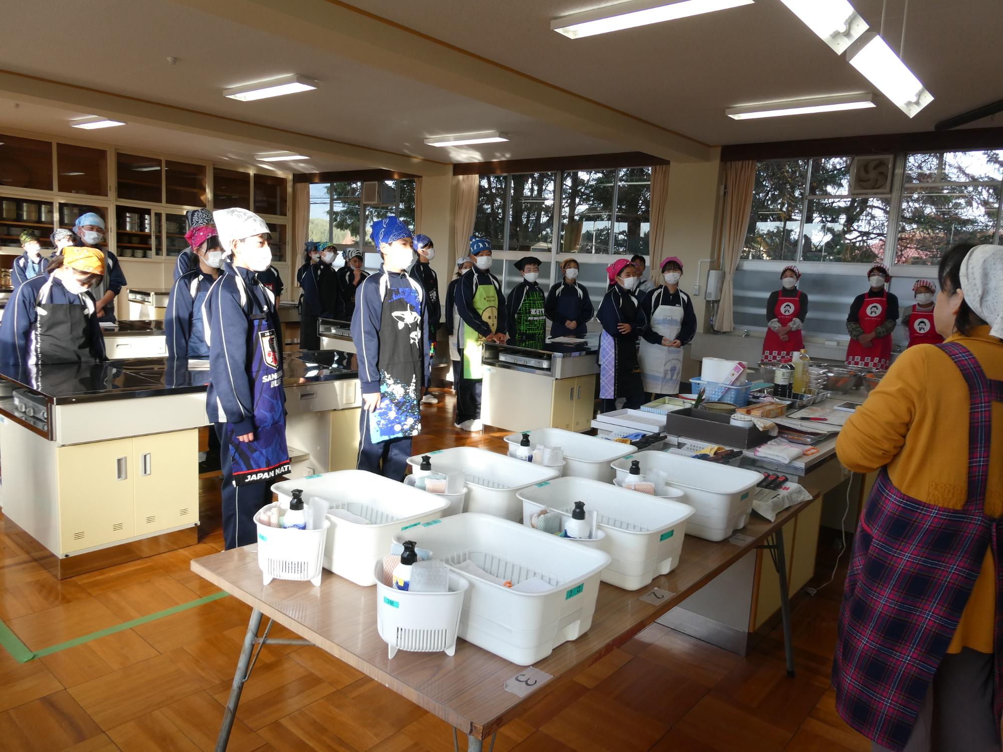今日の1・2時間目は家庭科の調理実習です。何を作るかというと、「肉じゃが」です。去年いただいた肉じゃが(現2年生の実習料理)は、ジャガイモが一部分シャキシャキしてました(笑)歯ごたえがありました(笑)去年は何人かの先生たちがヘルプに入っていましたが、今年は、JA食農リーダーの皆さんがヘルプに来てくださいました。本当に助かりました。ありがとうございました。