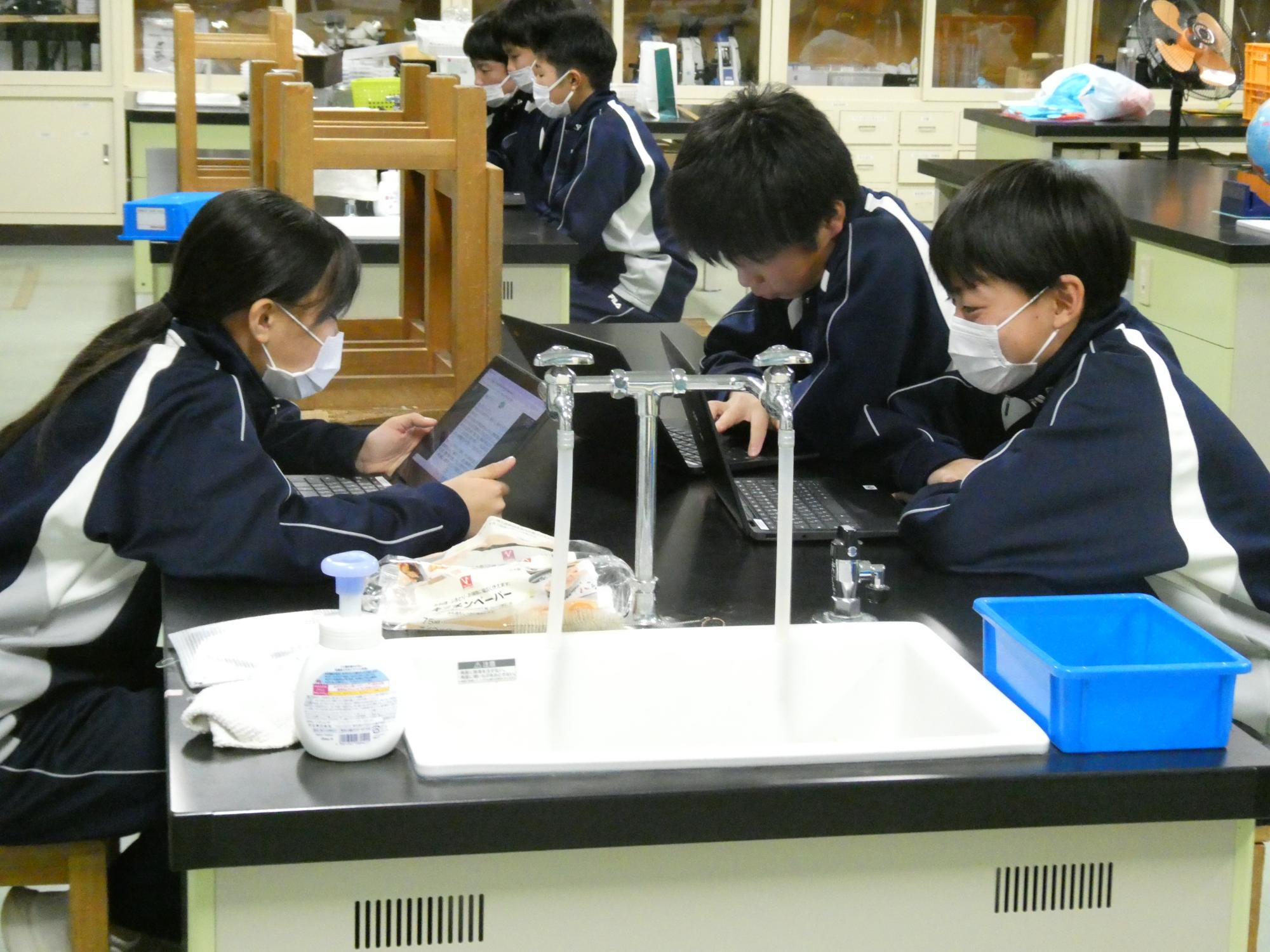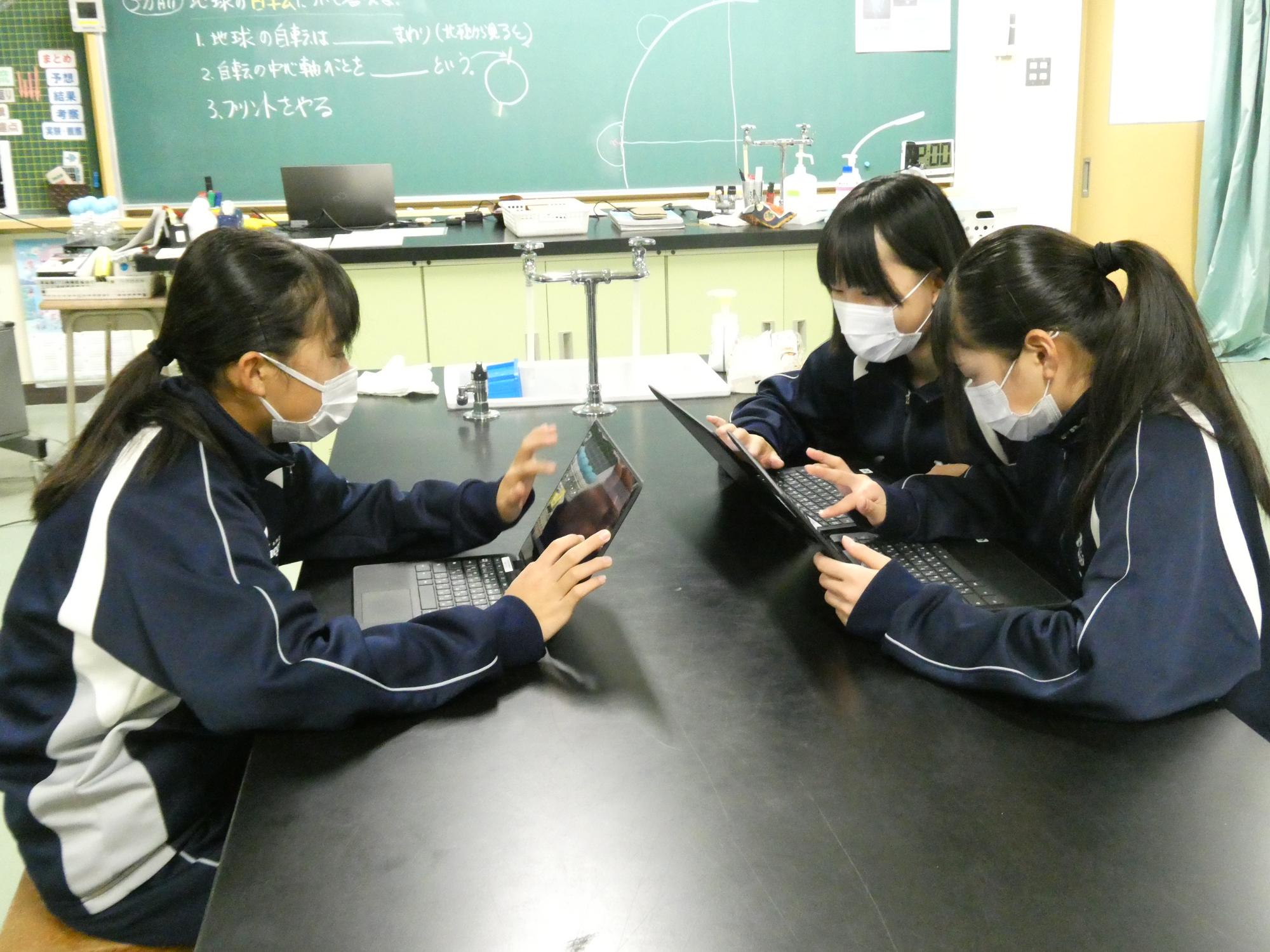 1時間目に理科室にいると、1年生が続々と入ってきて着席し、無言でクロームブックを開き、何やら打ち込んだり、じっくり見たり考えたりしています。