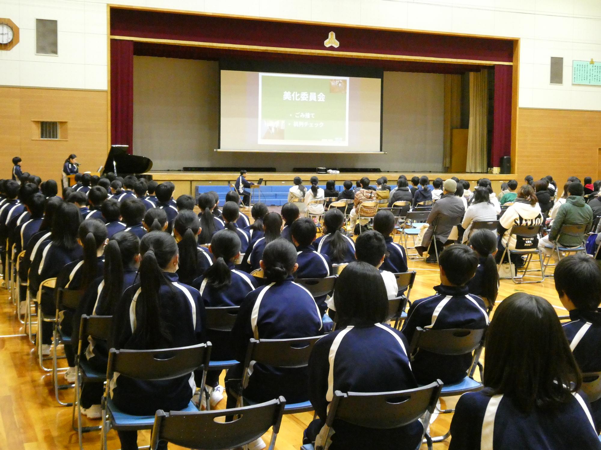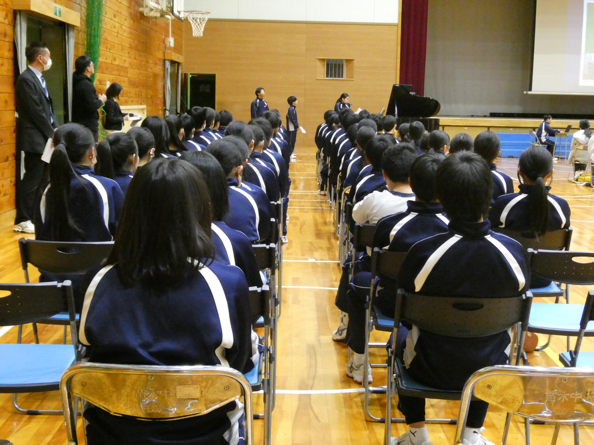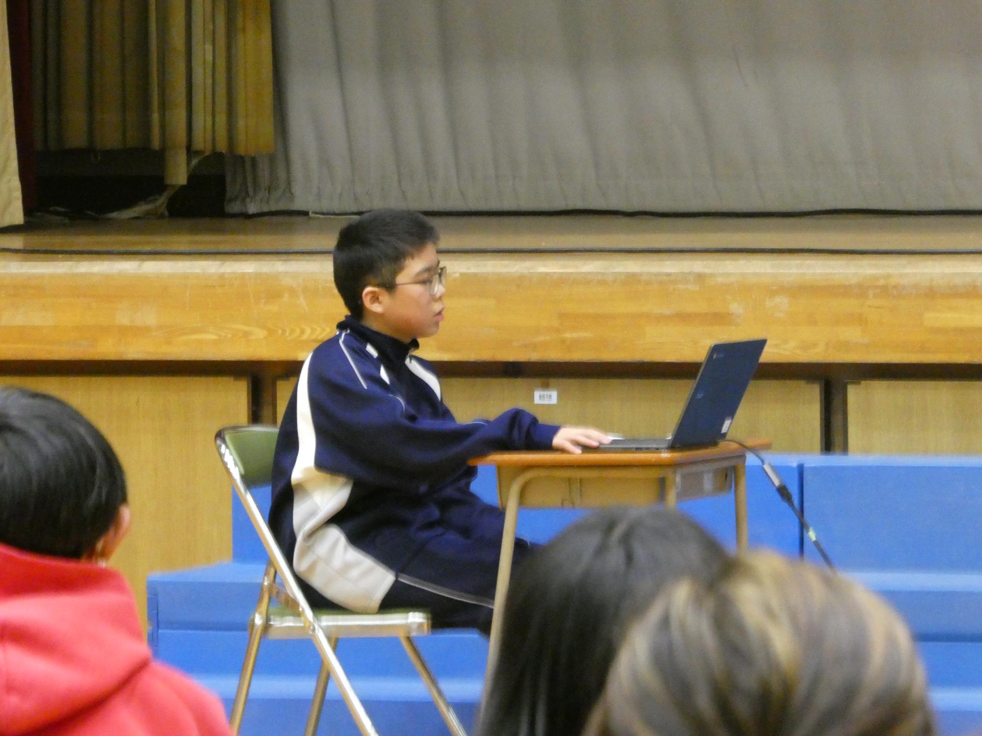 説明する項目、内容、文面を考え、それに合うように映し出す画面を作り、練習をしてこの日を迎えました。本番前は、結構緊張している様子。「緊張してる?」と聞くと、「いいえ」と言うかと思ったら、「はい。めちゃくちゃ緊張してます。」って、めちゃくちゃ素直にみんな答えてくれました(笑)