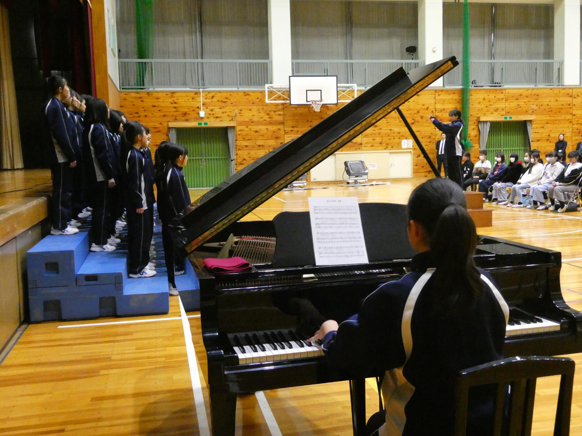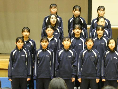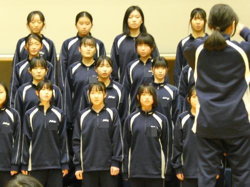 学校生活の説明の後は、苗木中を生で感じてもらうために、まずは「合唱」