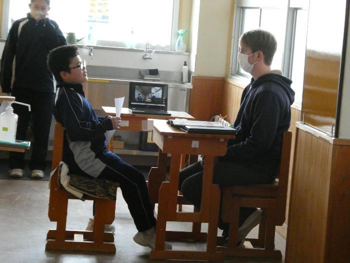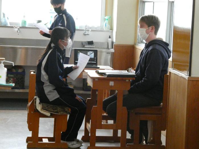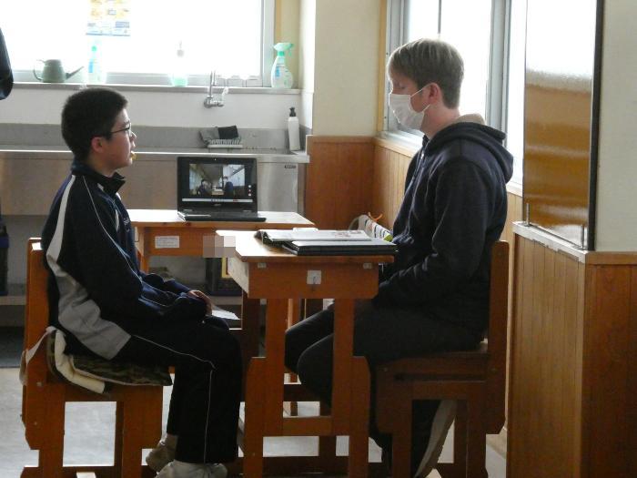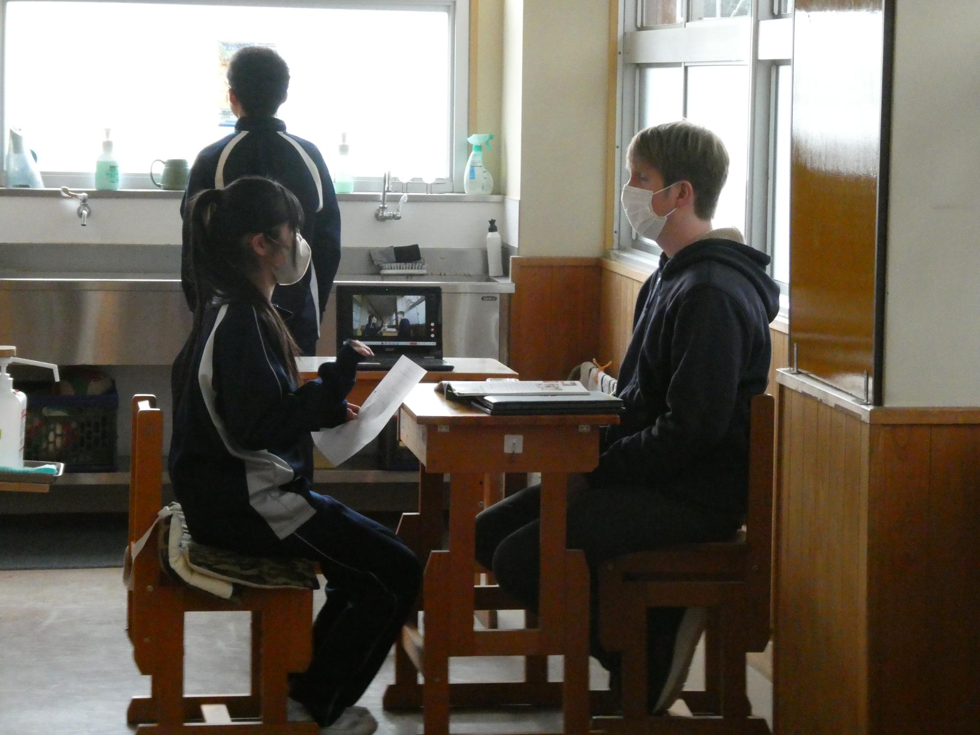 2月6日「1A~緊張の英会話テスト」 更新日:2026年02月06日 ふと通りかかったら、廊下ではこんな光景。 ALTのネイト先生と1Aの生徒が英会話。 英語の授業での、英会話テストでした。 冬休みをどう過ごしたのかテーマにした英会話のテストでした。 緊張してる子もいました。笑顔で会話している子もいました。私が見た何人かの子はとても上手に会話していました。