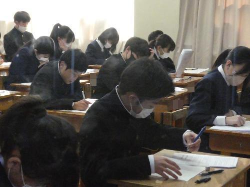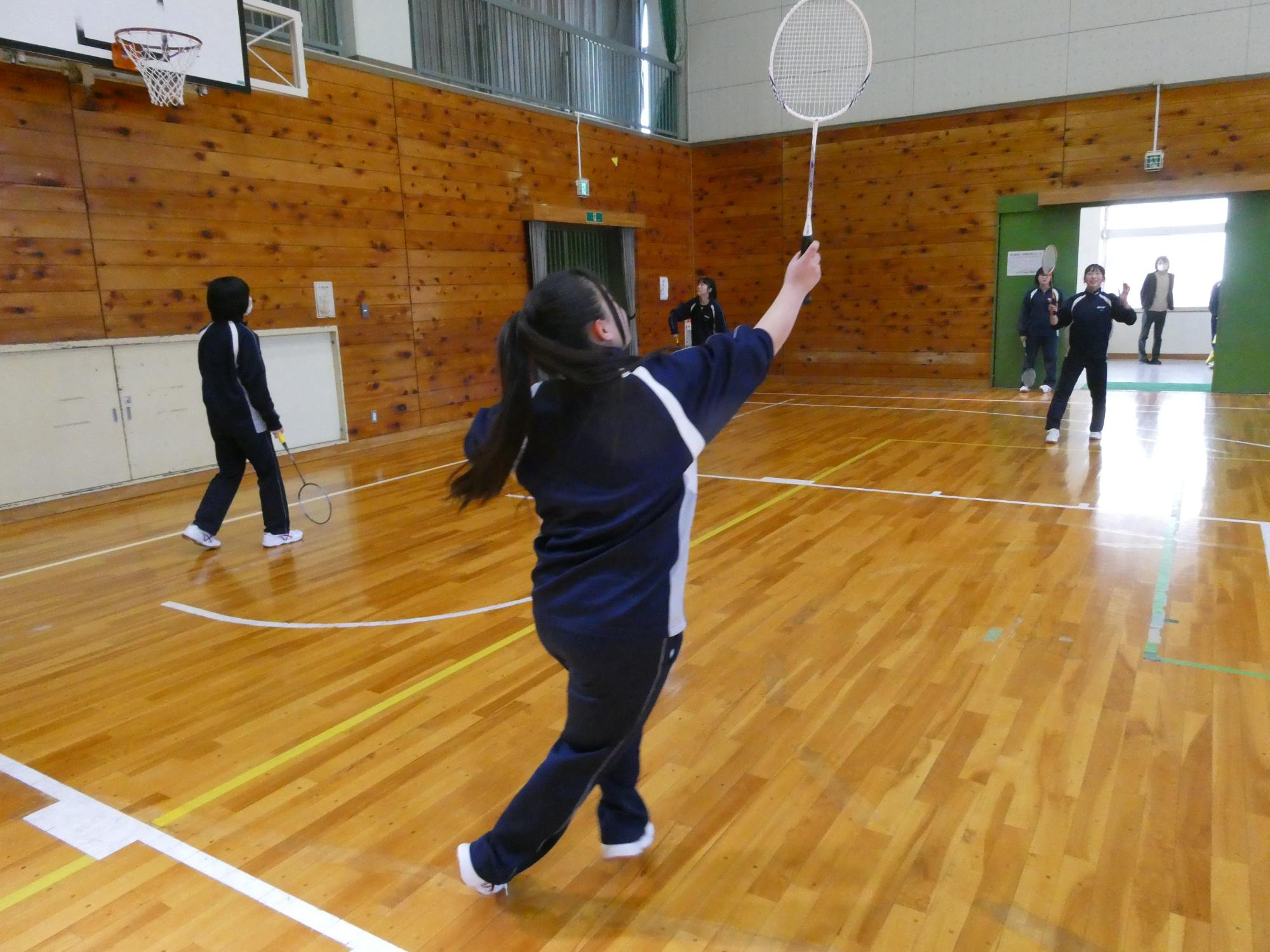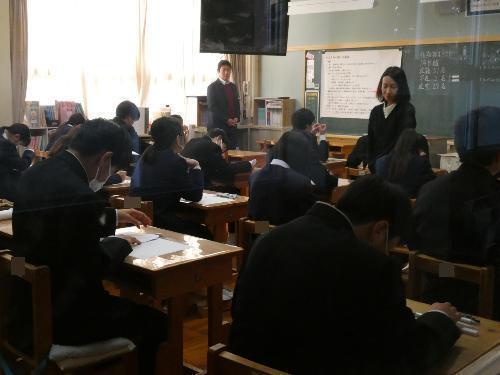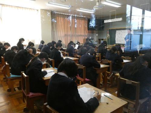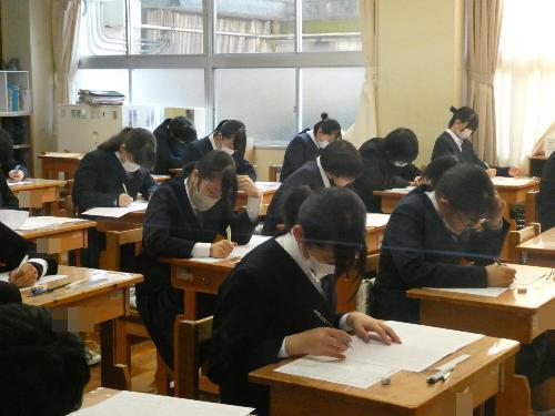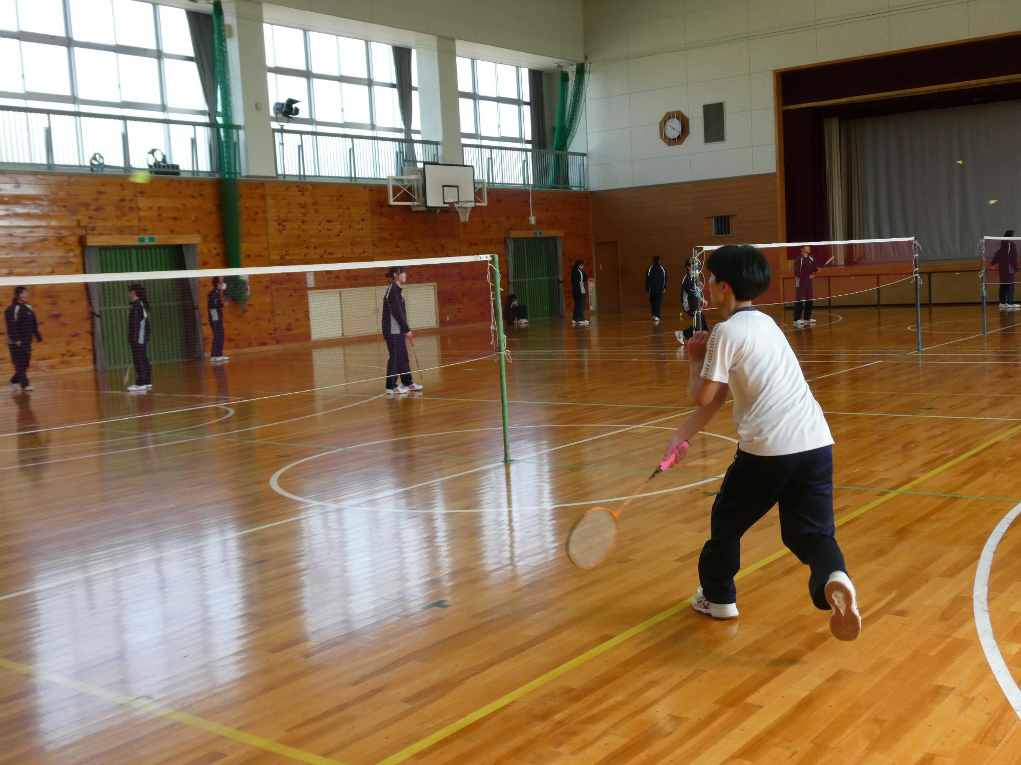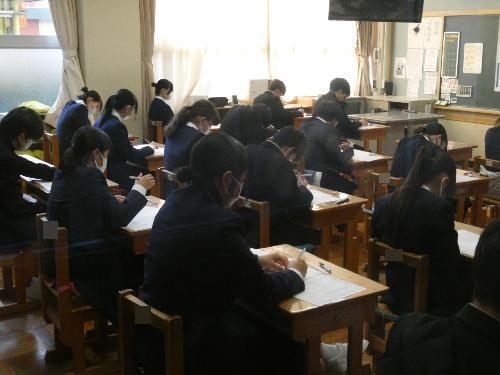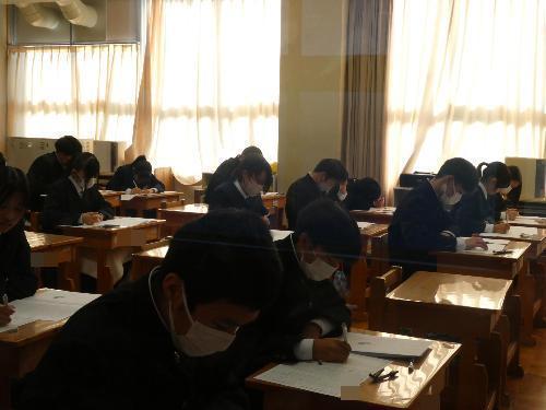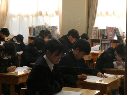 2月16日「1・2年生期末テスト」 更新日:2026年02月16日 1・2年生は、終日、期末テストです。 邪魔してはいけないので、いつものとおりガラス越しに・・・。 1A 1B 2A 2B 3年生は期末テストはもうかなり前に終わっているので、今日は通常の授業。 AもBも体育があったので、体育の様子を撮りました。バドミントンですね。楽しそうです。 3A 3B