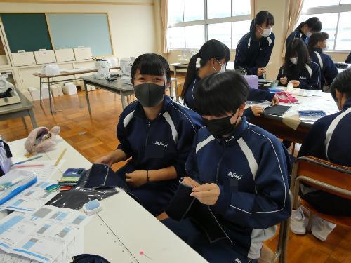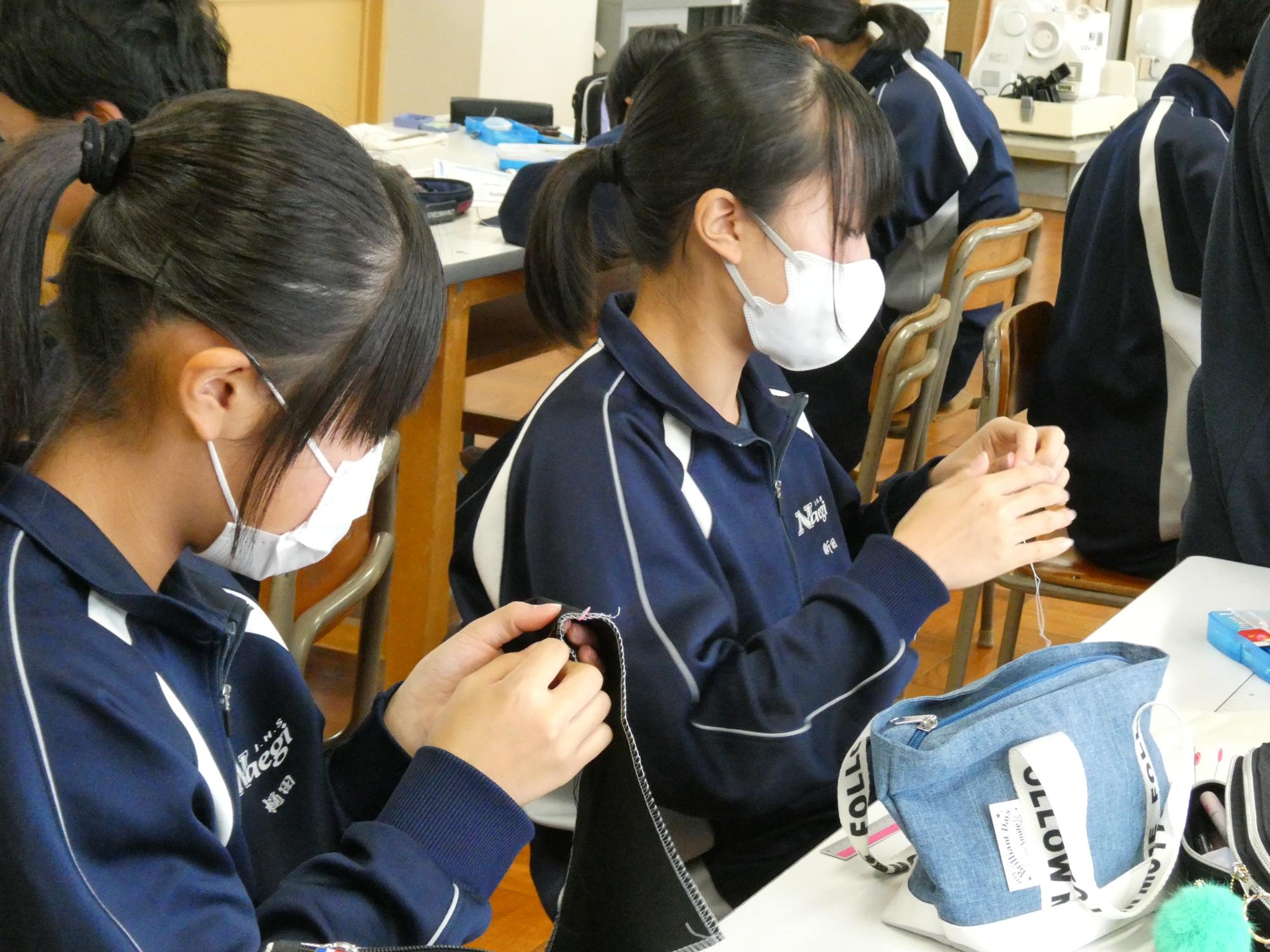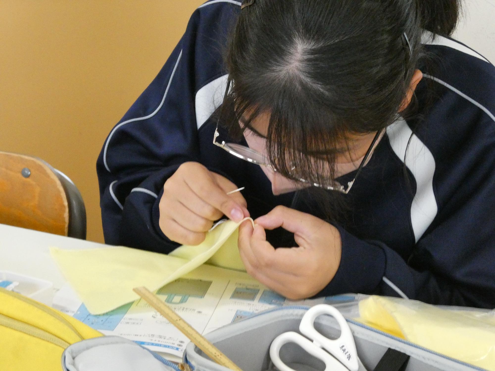生地は自分の好みのものを注文したそうです。好みのデザイン生地だから、意欲も高まるのかな。頑張り過ぎて、縫わなくてもいい所を縫って、何も入らないポケットにしていた子もいたようですが・・・