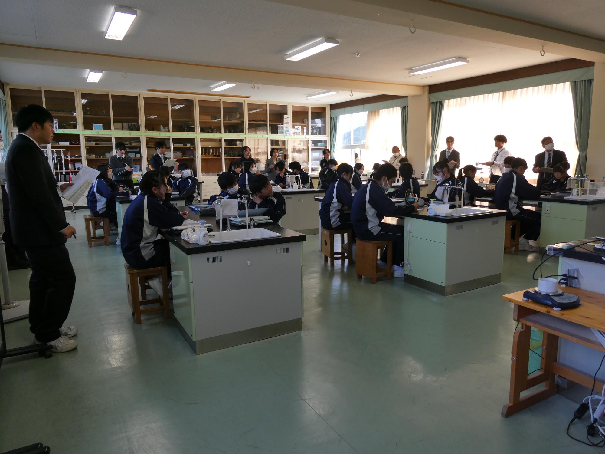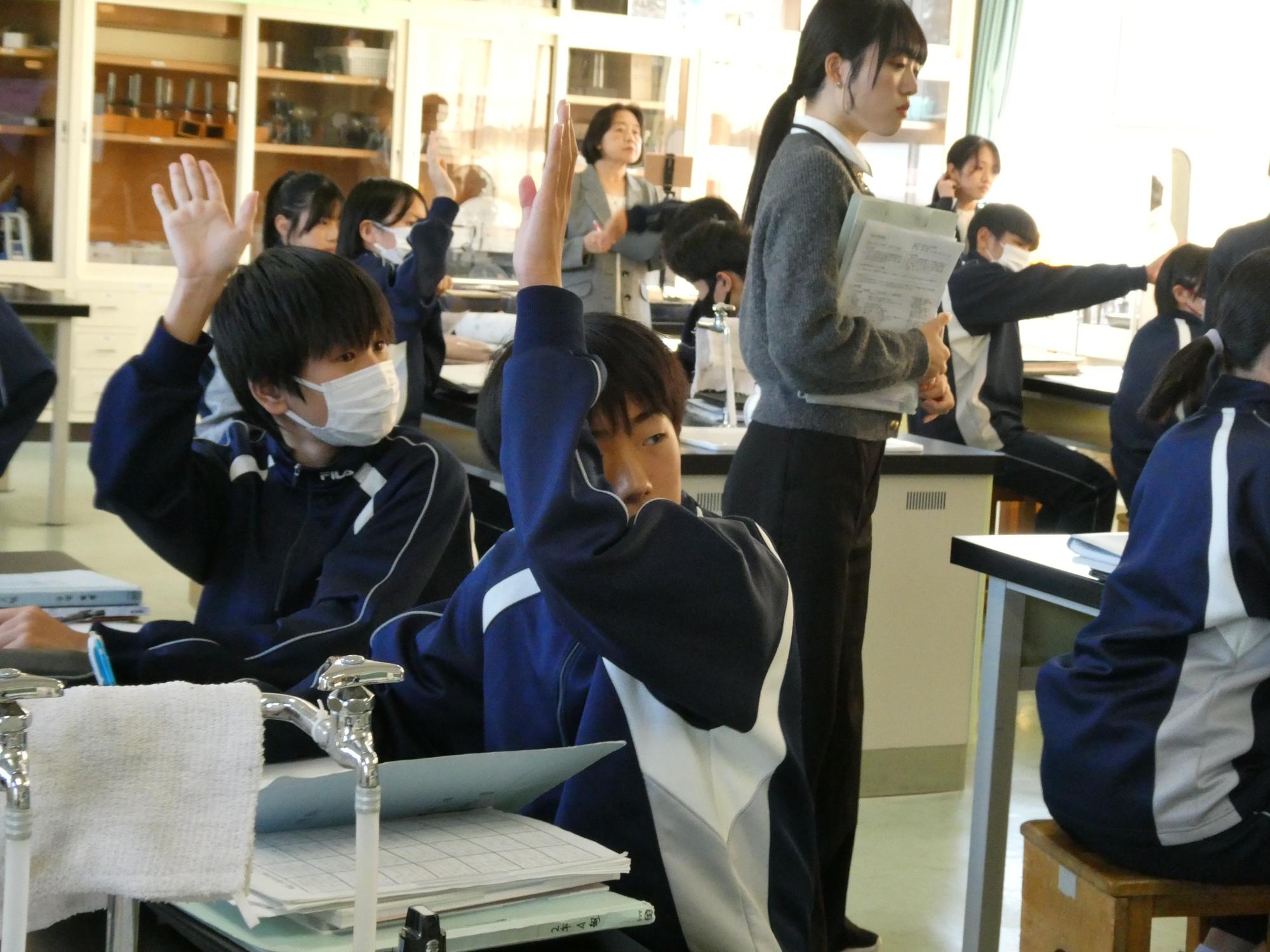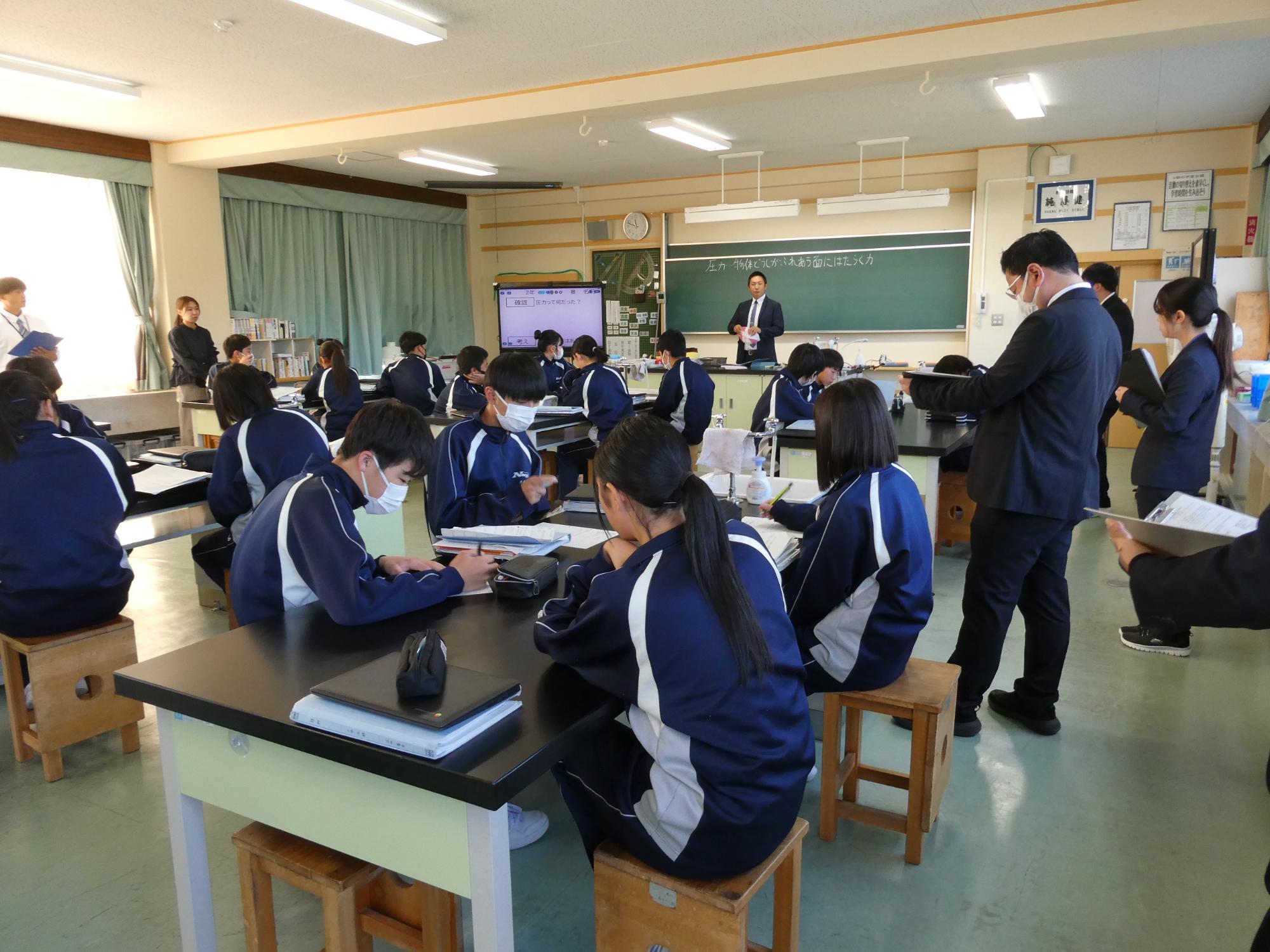 今日は苗木中学校で研修会がありました。今年先生になった新人の先生たちの研修会です。2Aでは、杉田先生が理科の授業を行い、新人の先生たちに2A授業を公開しました。