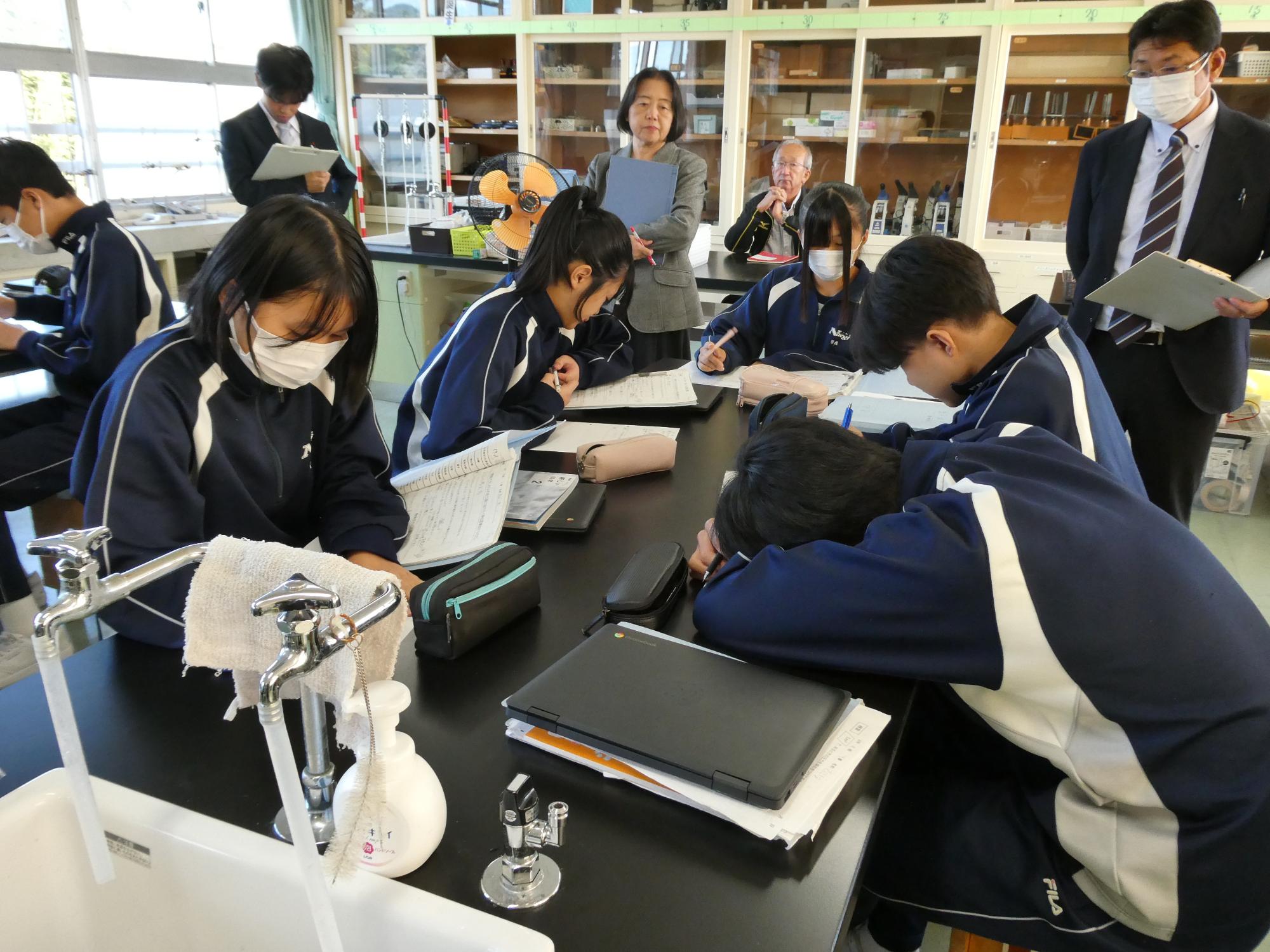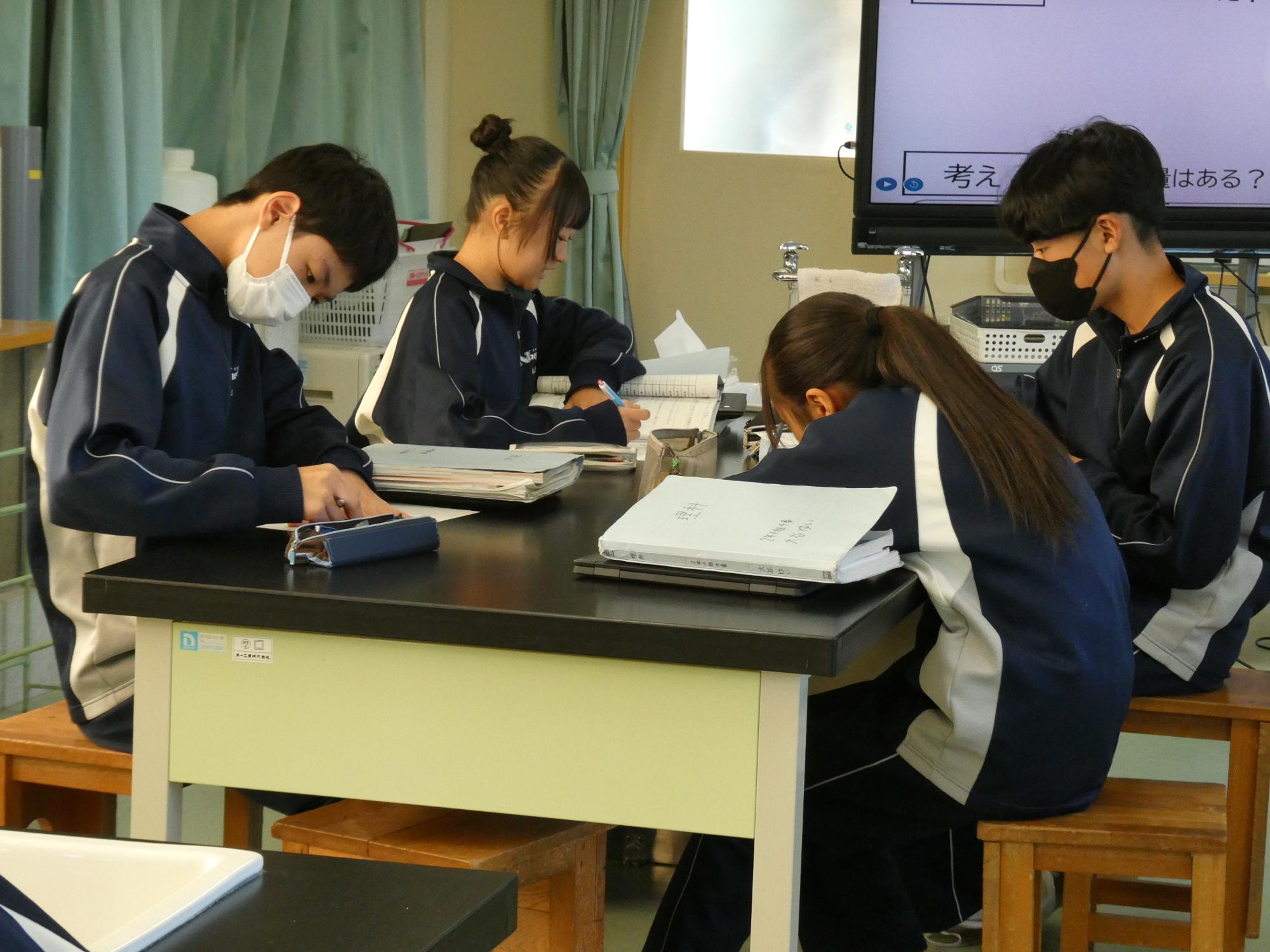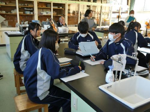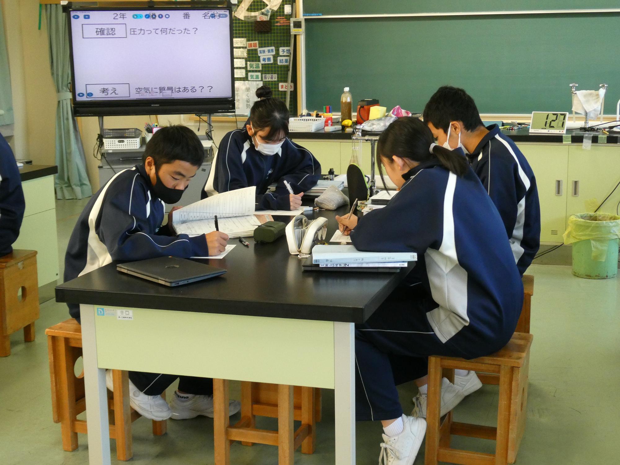 今日は苗木中学校で研修会がありました。今年先生になった新人の先生たちの研修会です。2Aでは、杉田先生が理科の授業を行い、新人の先生たちに2A授業を公開しました。