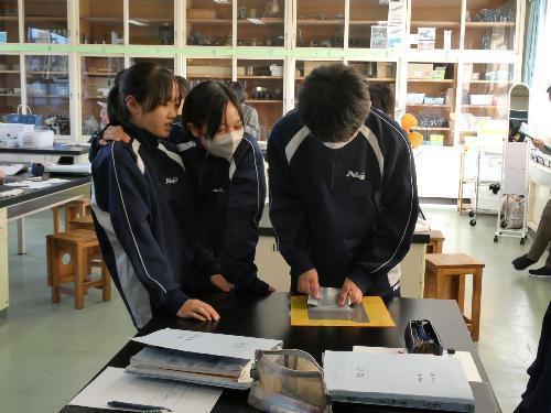 おもしろい!・・・生徒たちの予想はバラバラになるだろうと思ったら、みんな「質量はある」という予想。考え、話し合っている生徒たちの反応を聞いていたら、「これから実験するんだから、質量はあるんじゃない。」と・・・、そっちからよそうするか~と笑えてきました。いい読みです(笑)