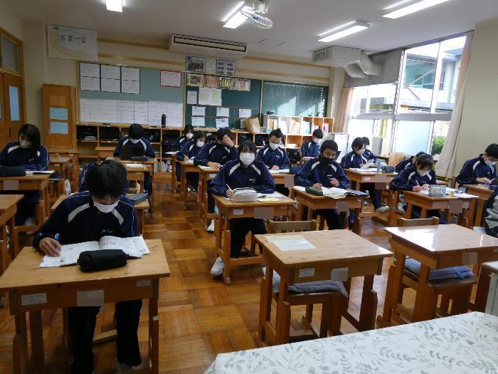 昨日までインフルエンザによる学年閉鎖で、今日から再開した2年生ですが、2Aはまだ発症後5日間、解熱後2日間という規定に達しずに欠席している生徒が何人もいて、教室は寂しい感じです。明日になると増え、また1日経つとまた増えていくという感じです。