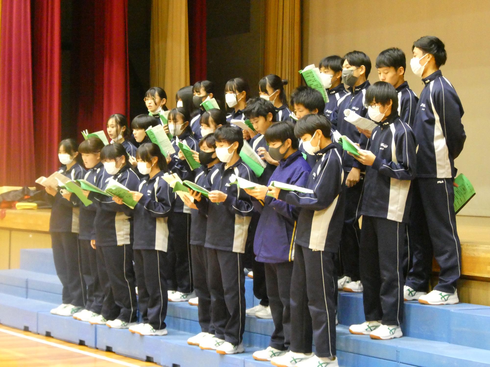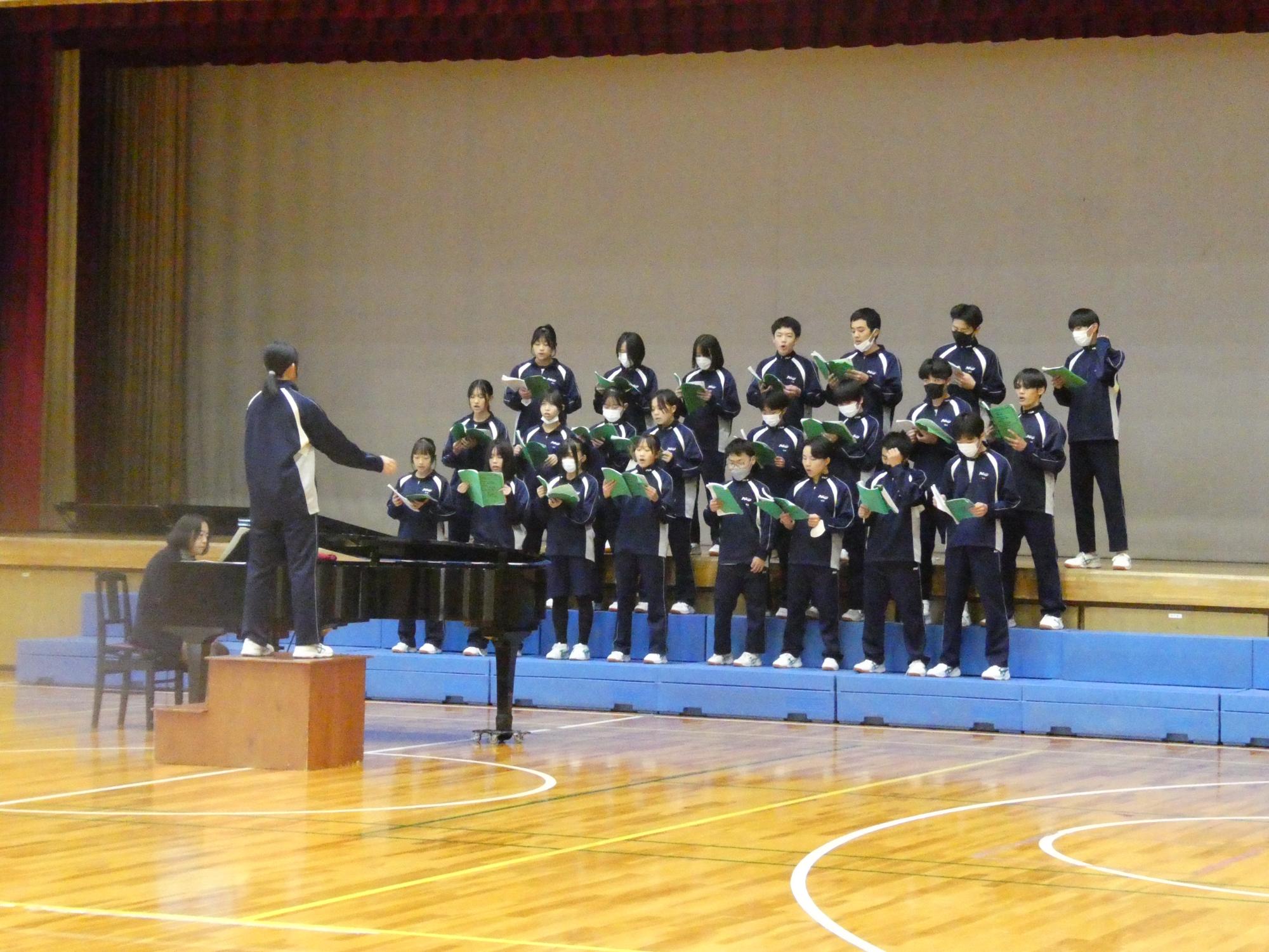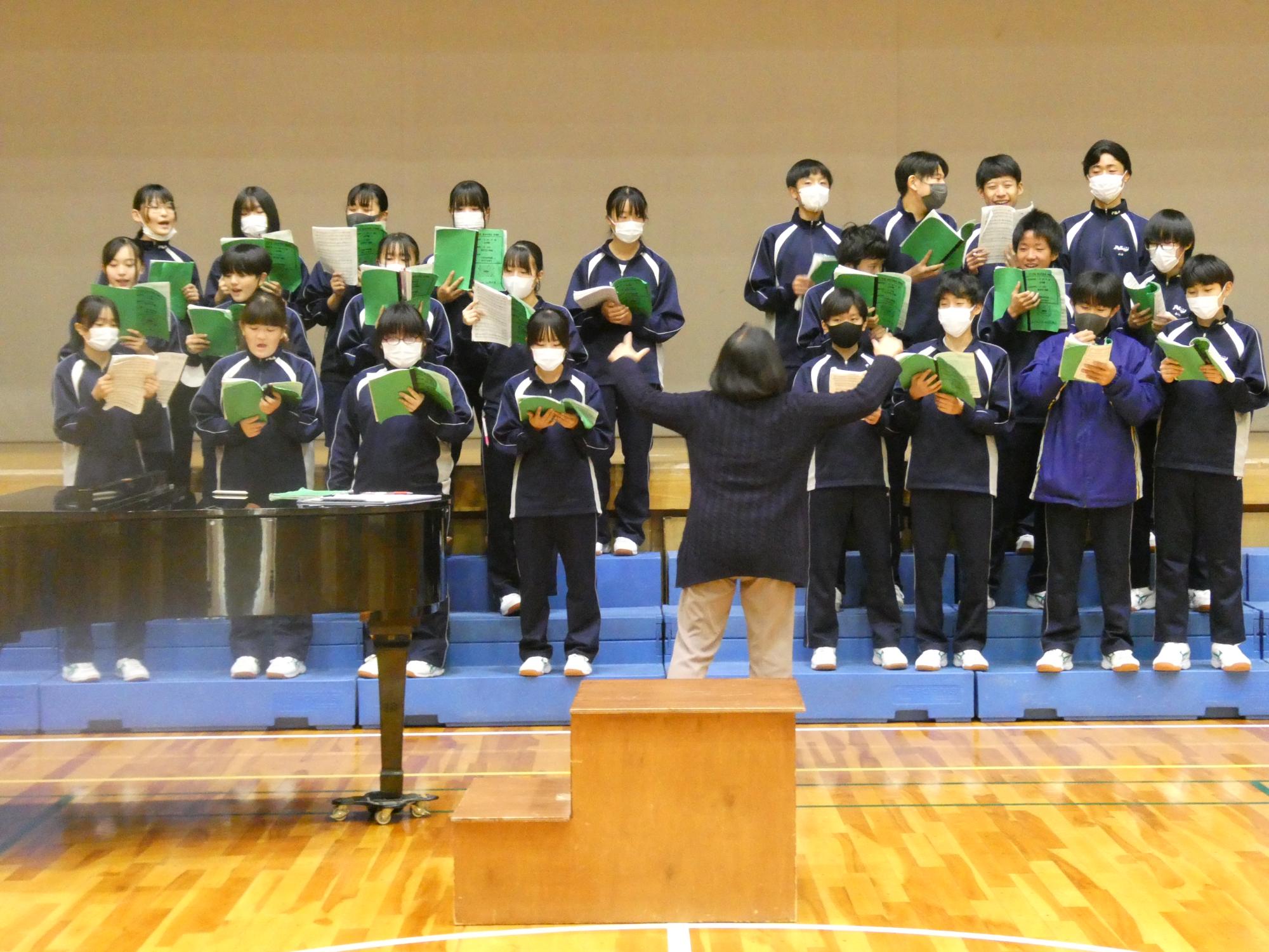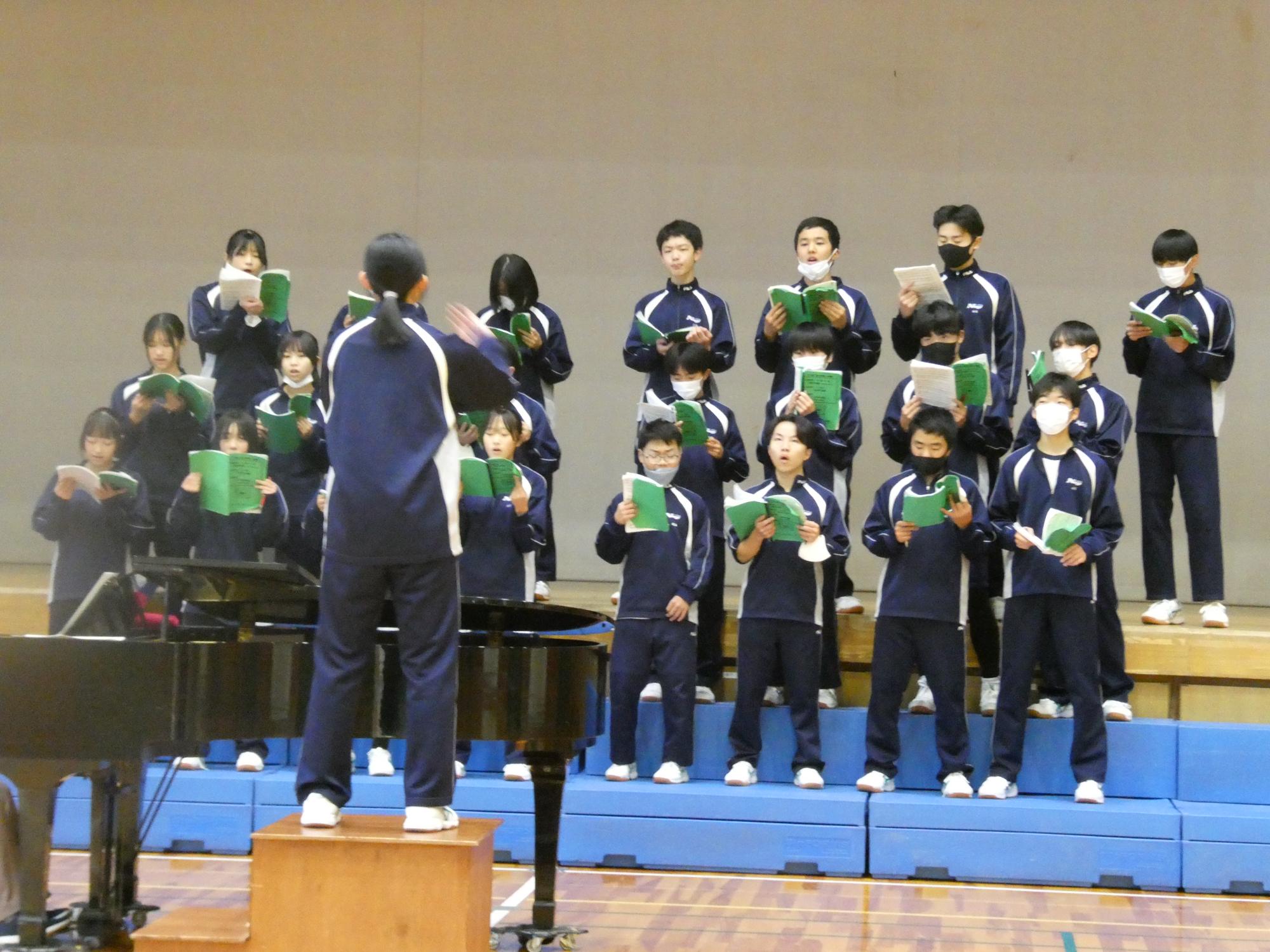 今日の音楽の授業は、音楽室ではなく、体育館で行いました。4時間目に2A、5時間目に2Bです。合唱祭本番を意識して、広い場所で、ひな壇のあるところで歌うことを目的にしています。