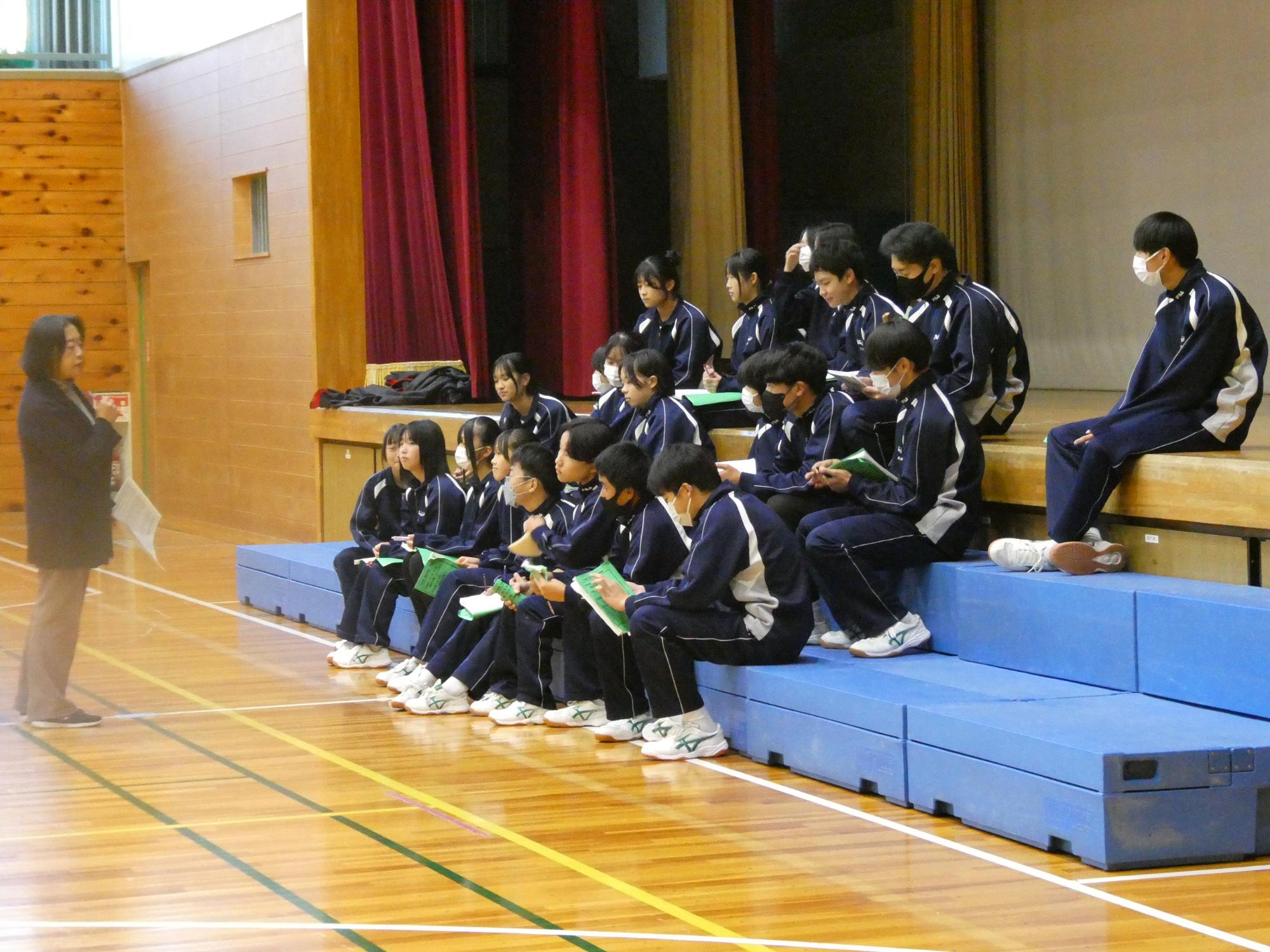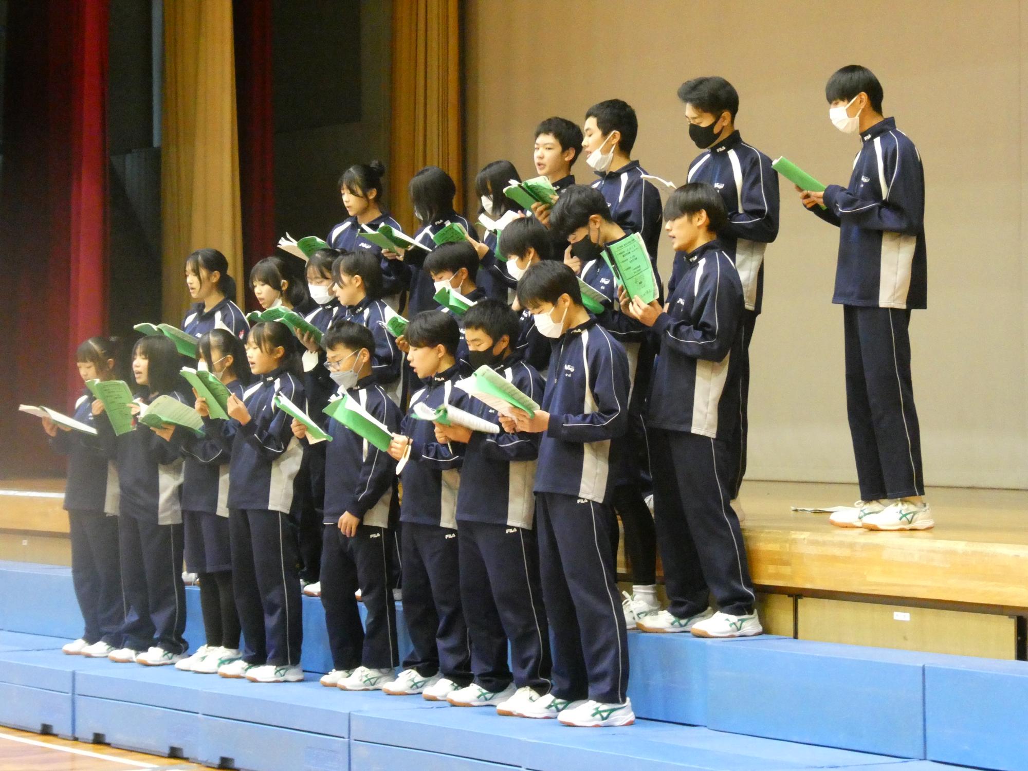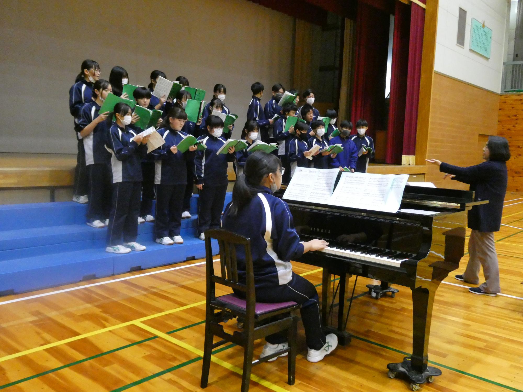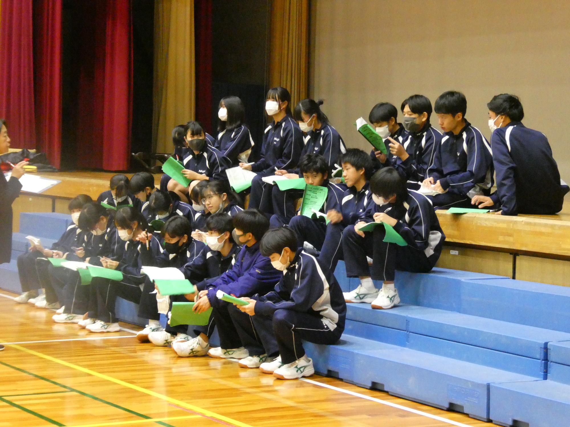 今日の音楽の授業は、音楽室ではなく、体育館で行いました。4時間目に2A、5時間目に2Bです。合唱祭本番を意識して、広い場所で、ひな壇のあるところで歌うことを目的にしています。