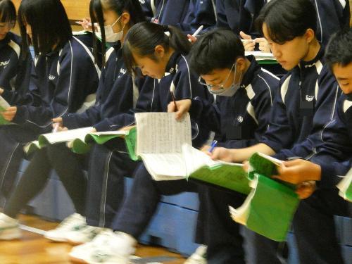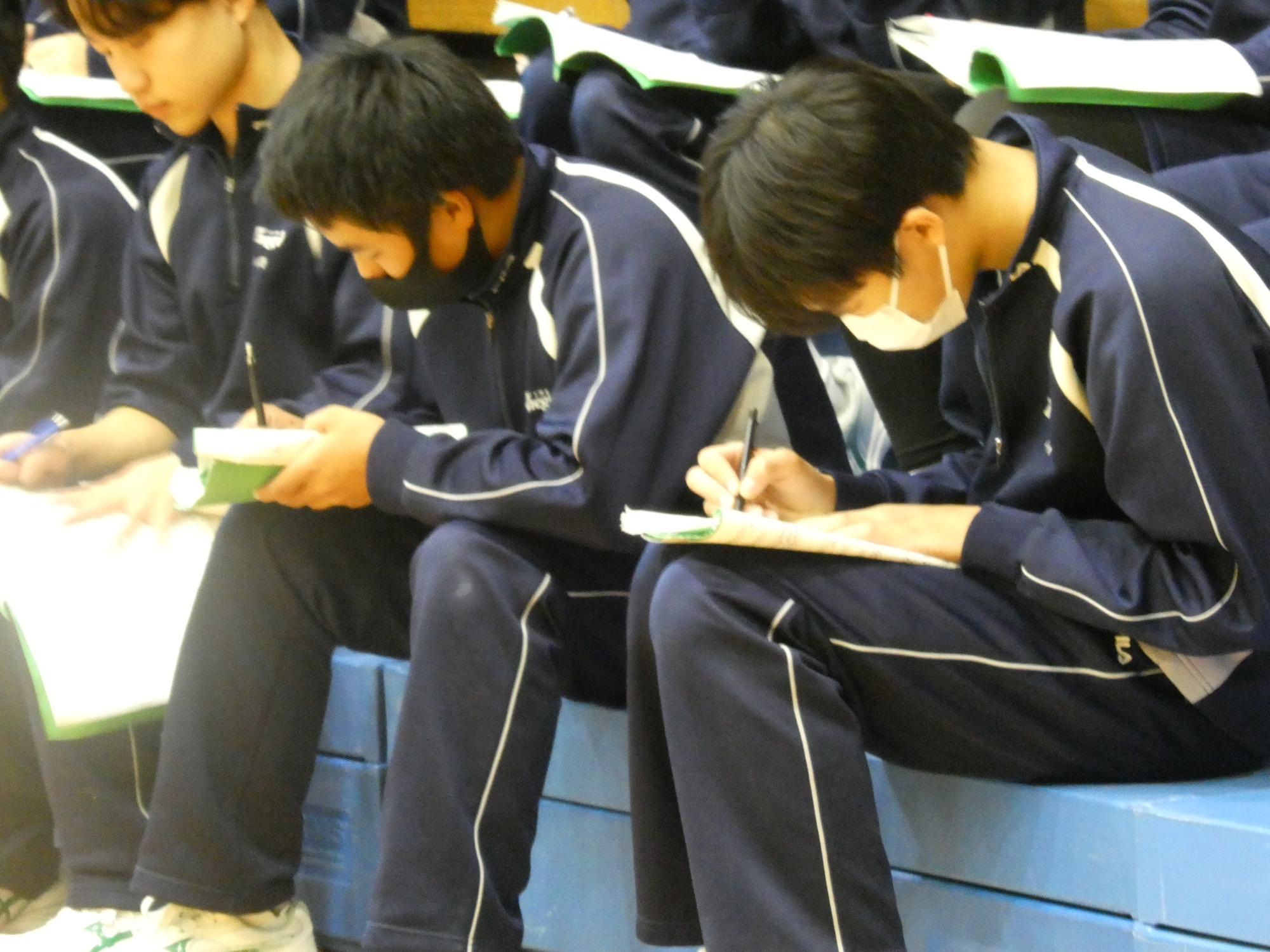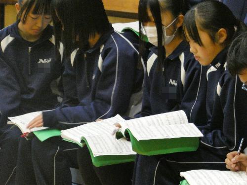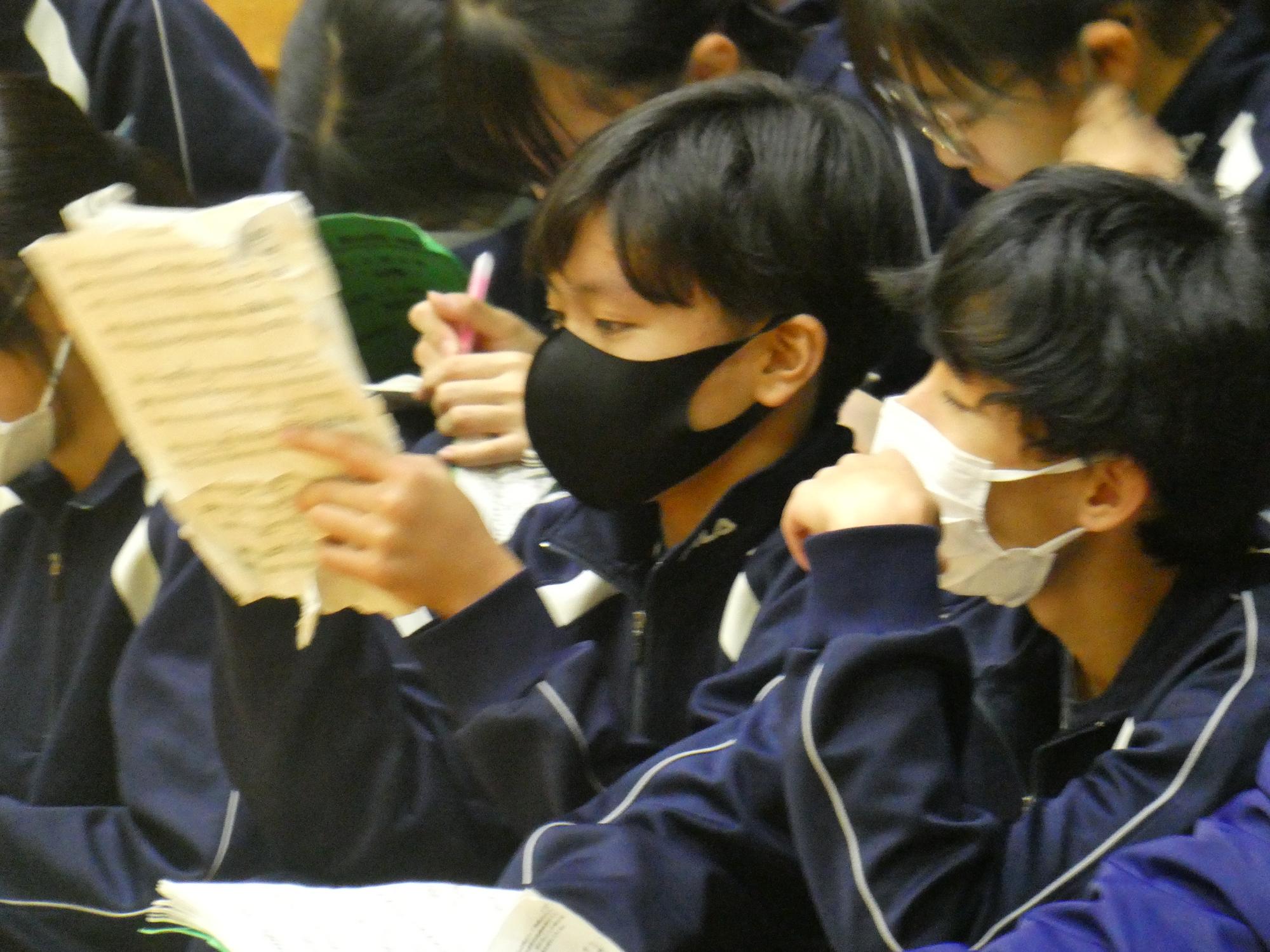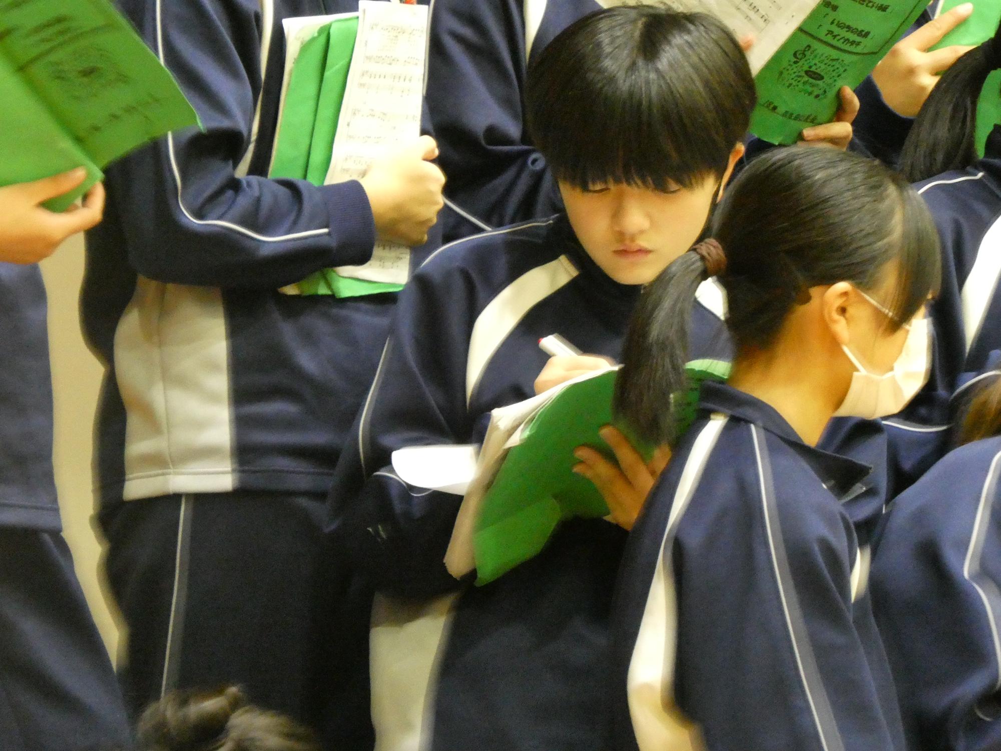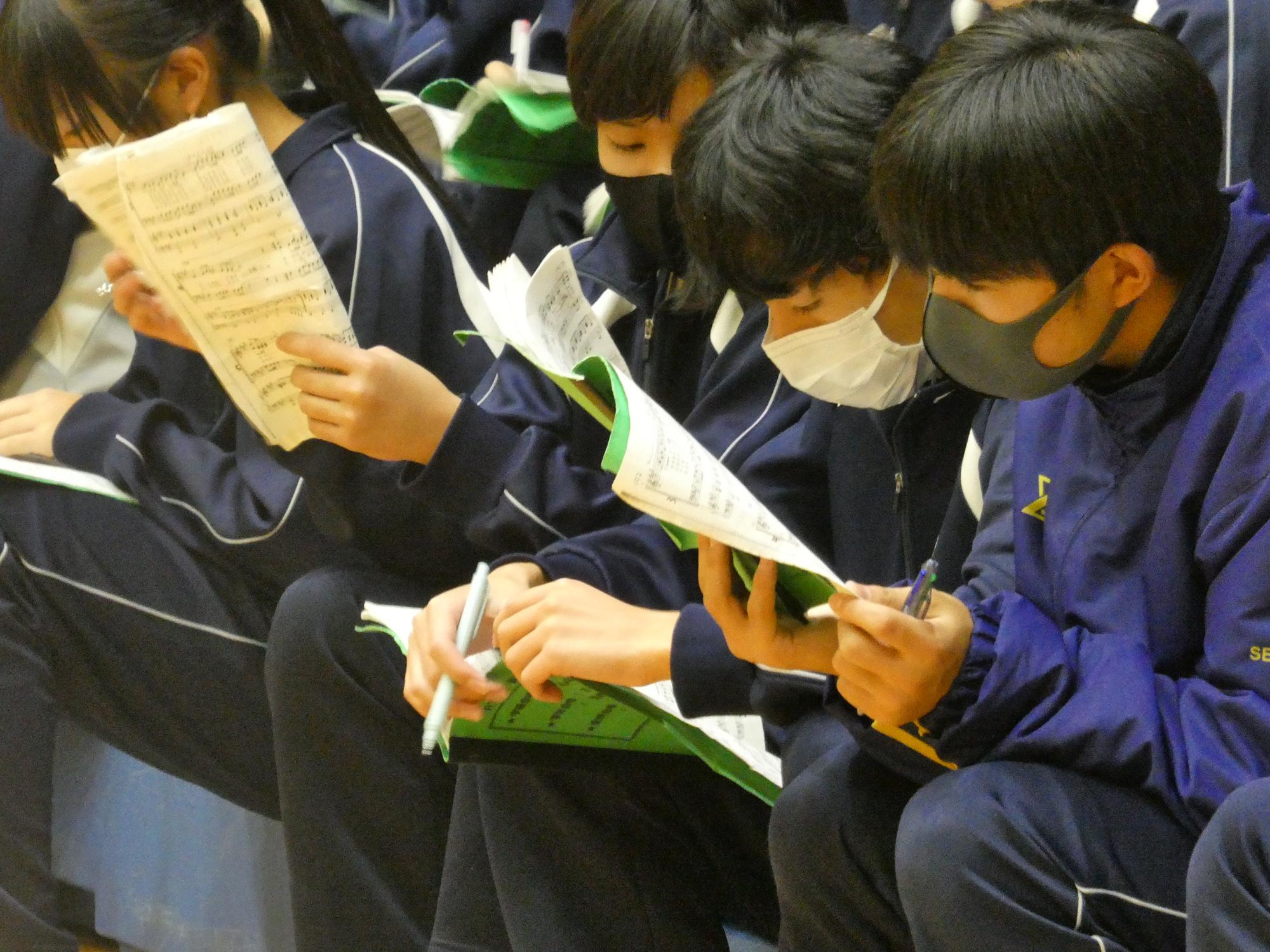 先生からの指導を楽譜にメモしたりして、授業に臨んでいました。