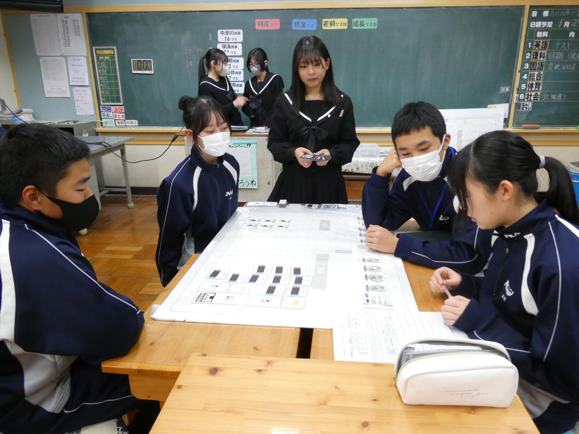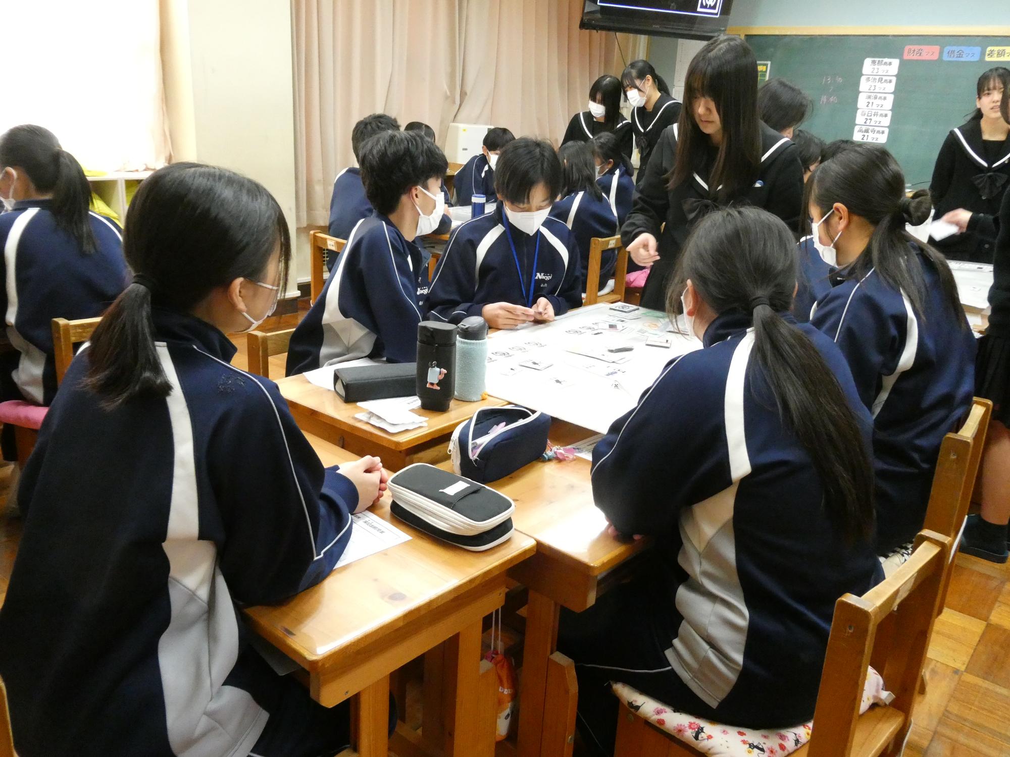 商業高校というと「簿記」、その「簿記」とはどういうものなのかを、オリジナルのゲームであるビジネスゲームを使って、ゲーム感覚で楽しみながら教えてもらいました。