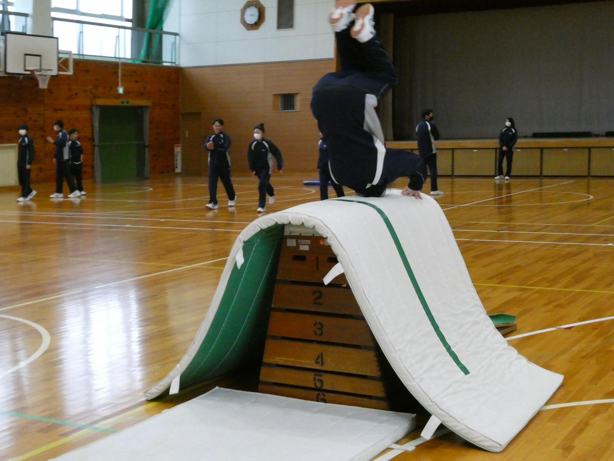 高さはちがうけれど、小学校でも3段か4段くらいで「頭はね跳び」や「首はね跳び」をやっているから、そんなに特別なことをやっている訳ではない。ちゃんと安全に跳べているし、勇気を出して挑戦してみてください(笑)