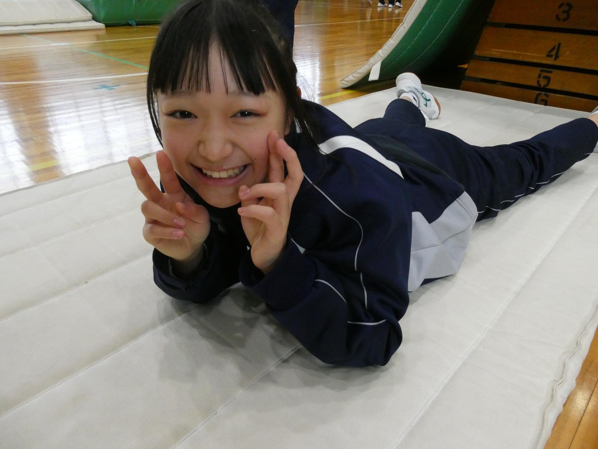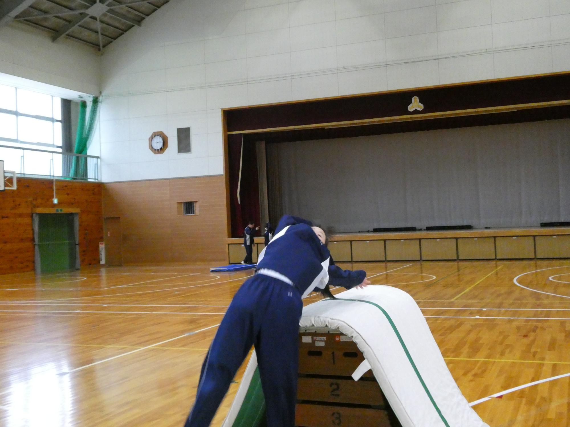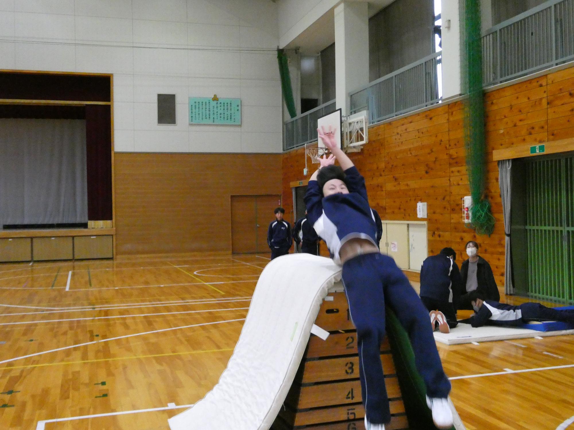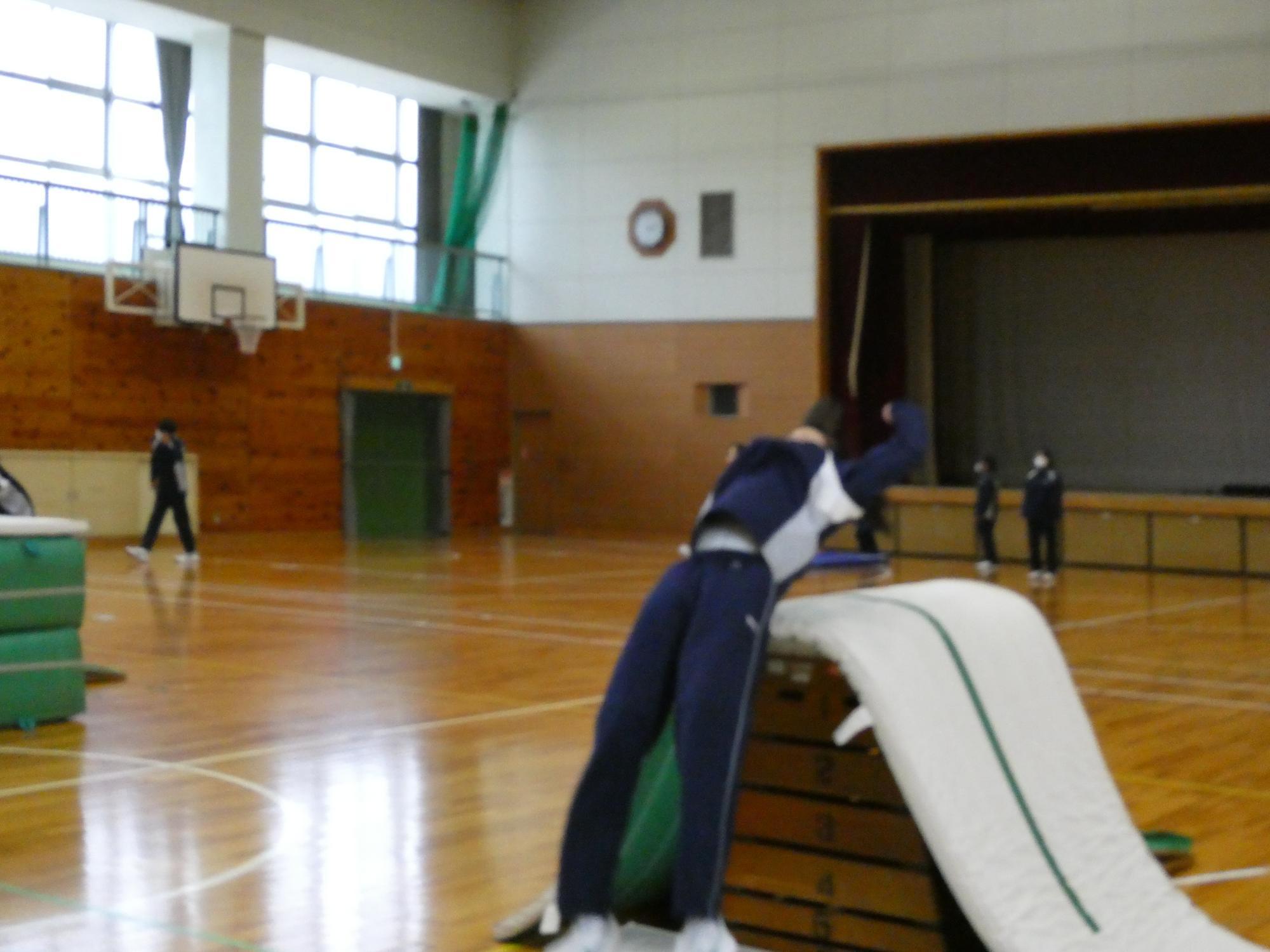 最後の最後は、跳び箱の上のマットを取って、下のマットも1枚にして、挑戦。