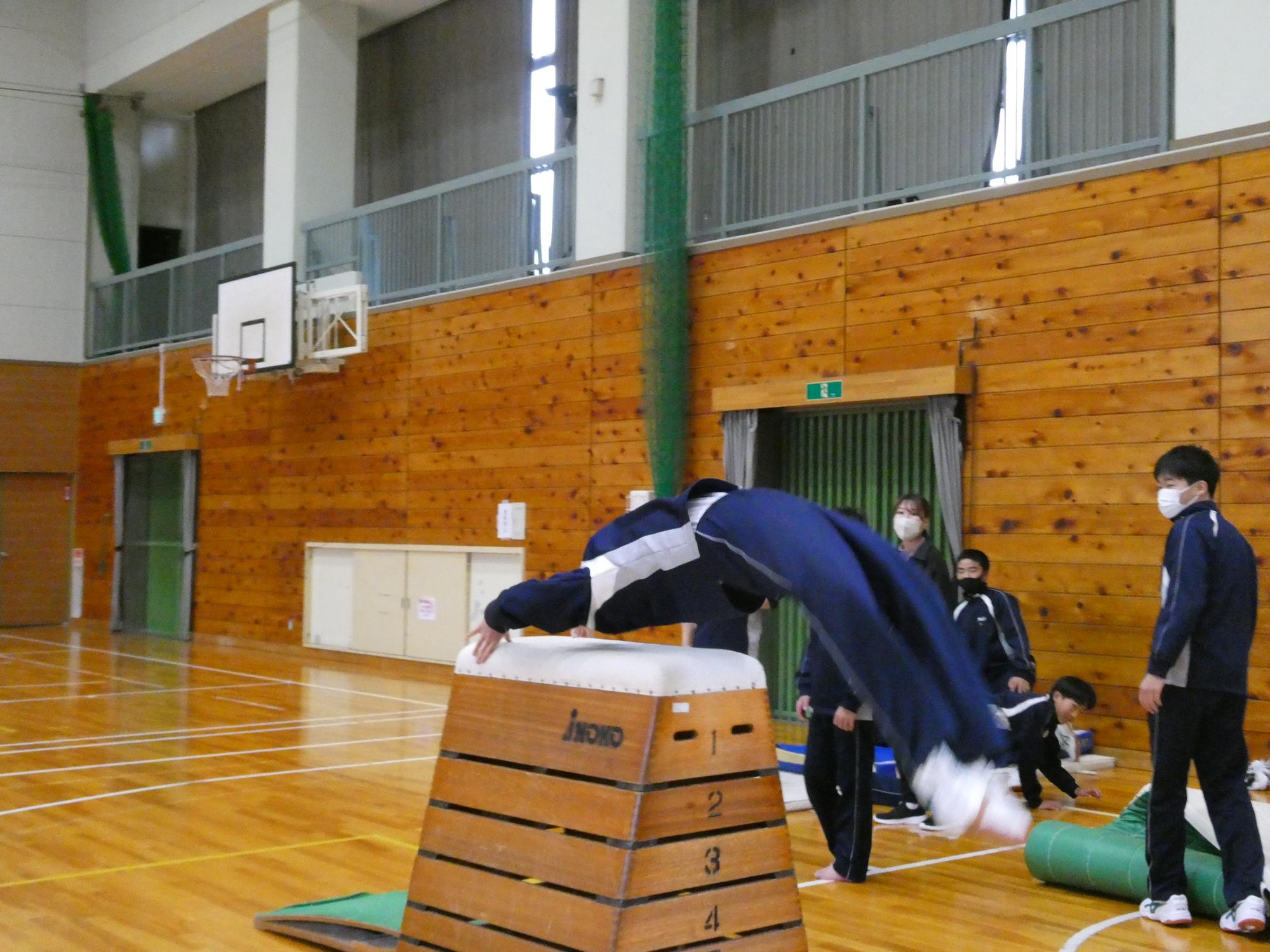 ここは男子ばかりで、跳び箱は7段? 8段?
