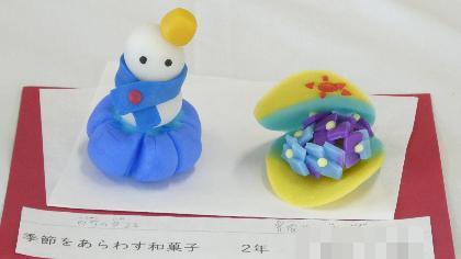 2年生が美術の授業で制作した「季節を表す和菓子」です。
