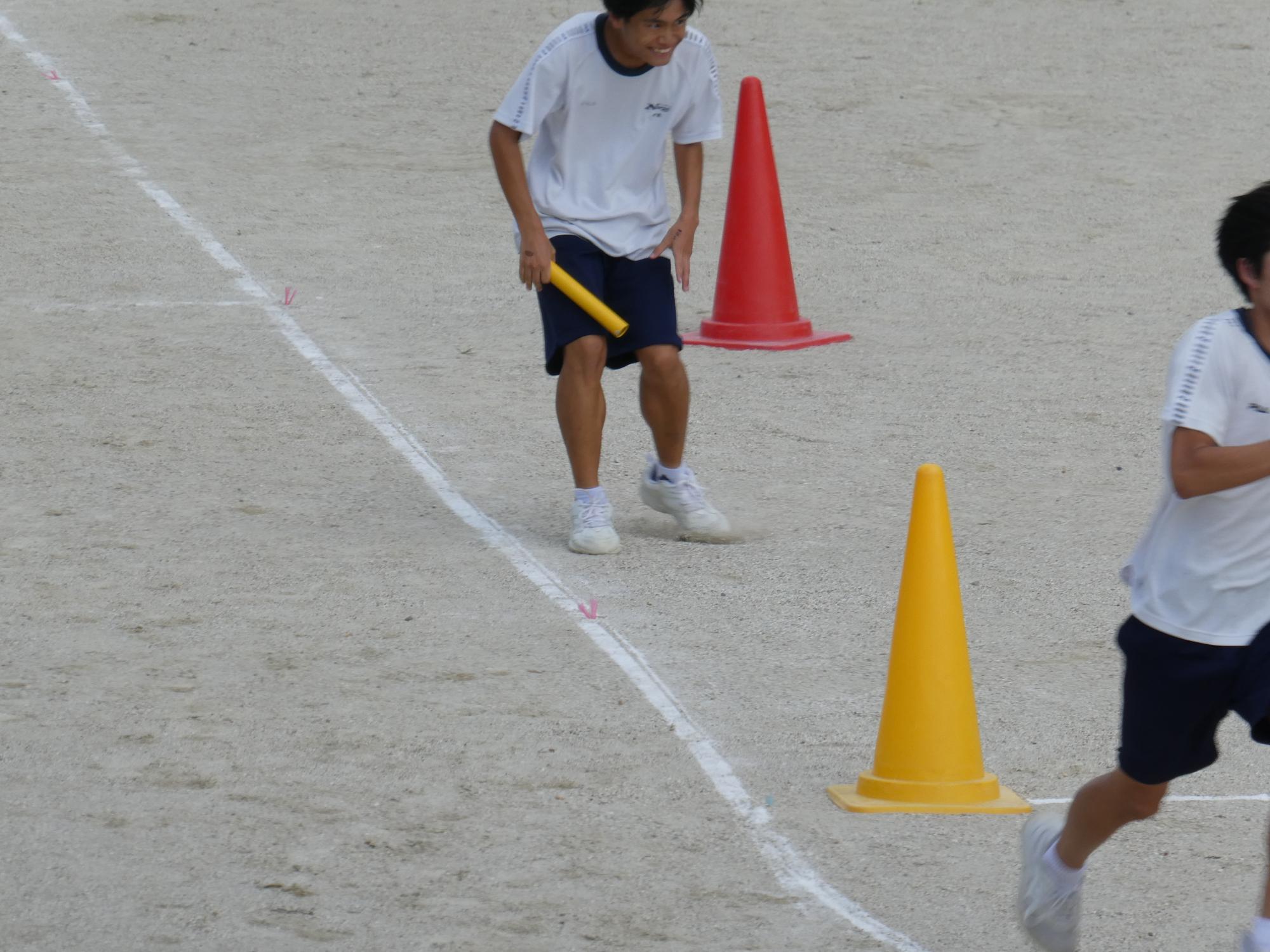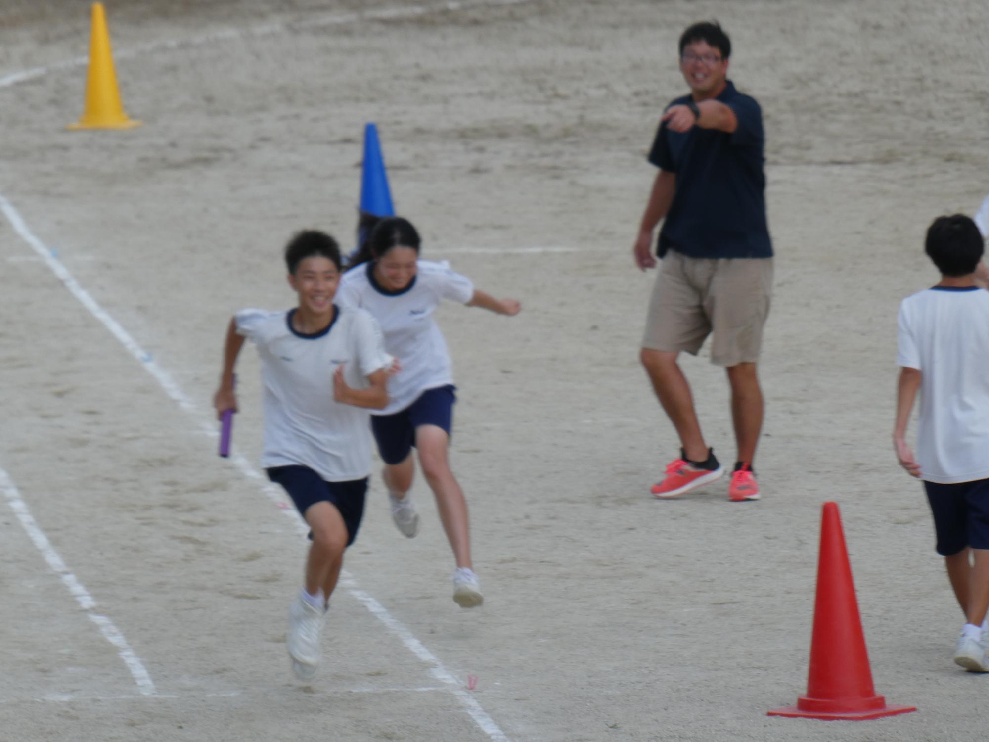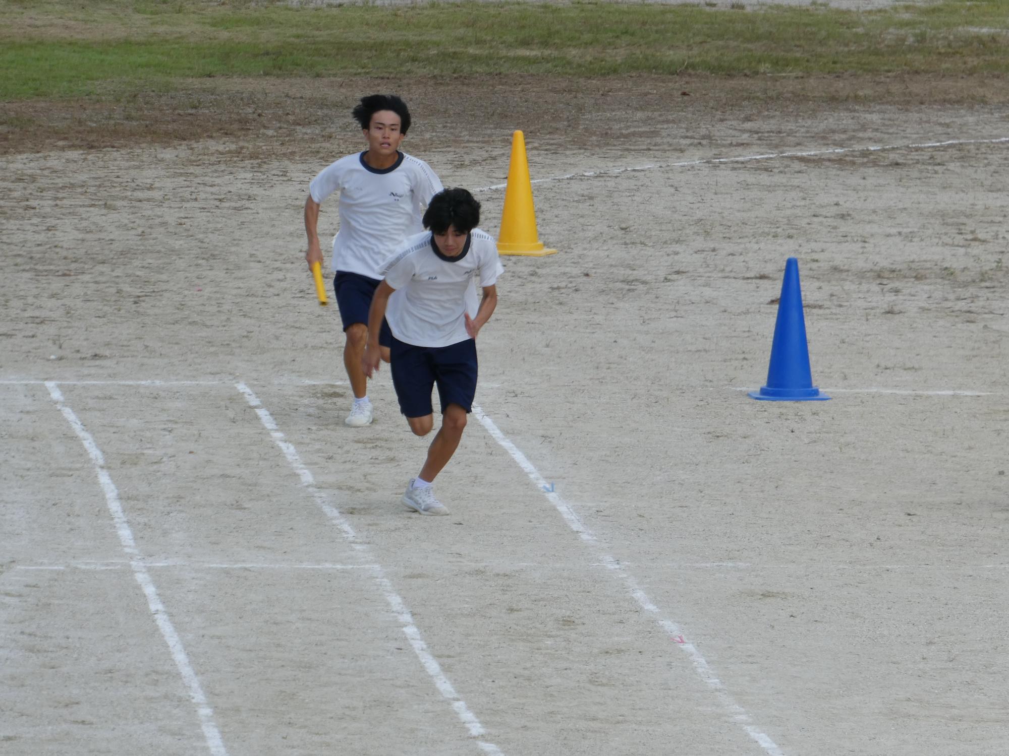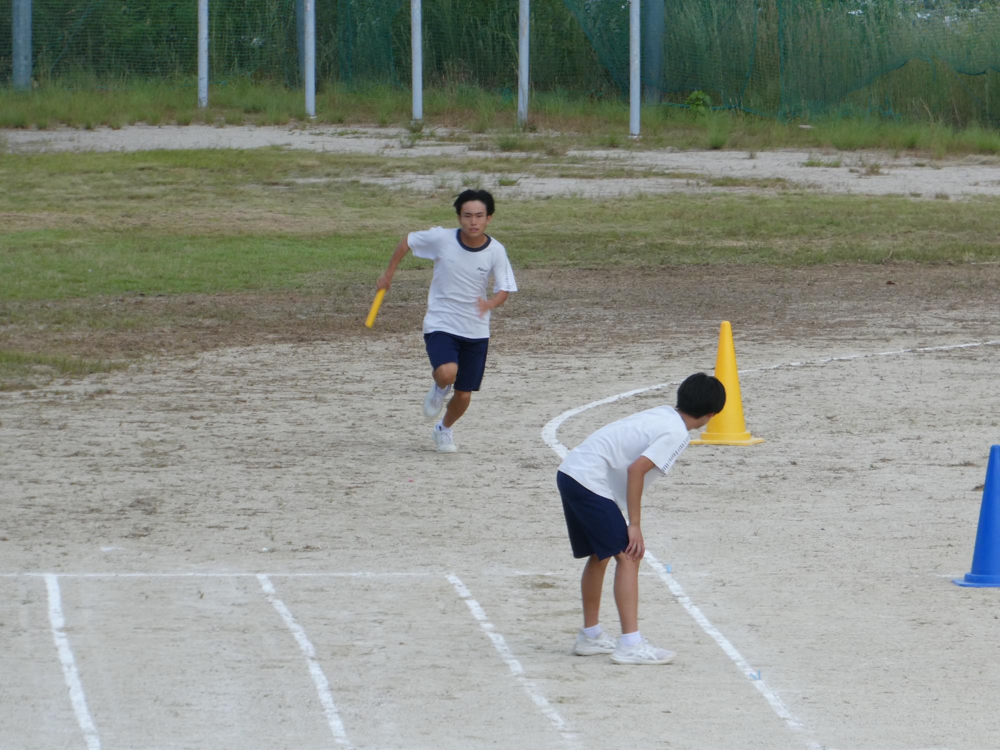 真剣なスピードでリレーの練習していました。スピードを落とさず、うまくバトンパスできるか・・・