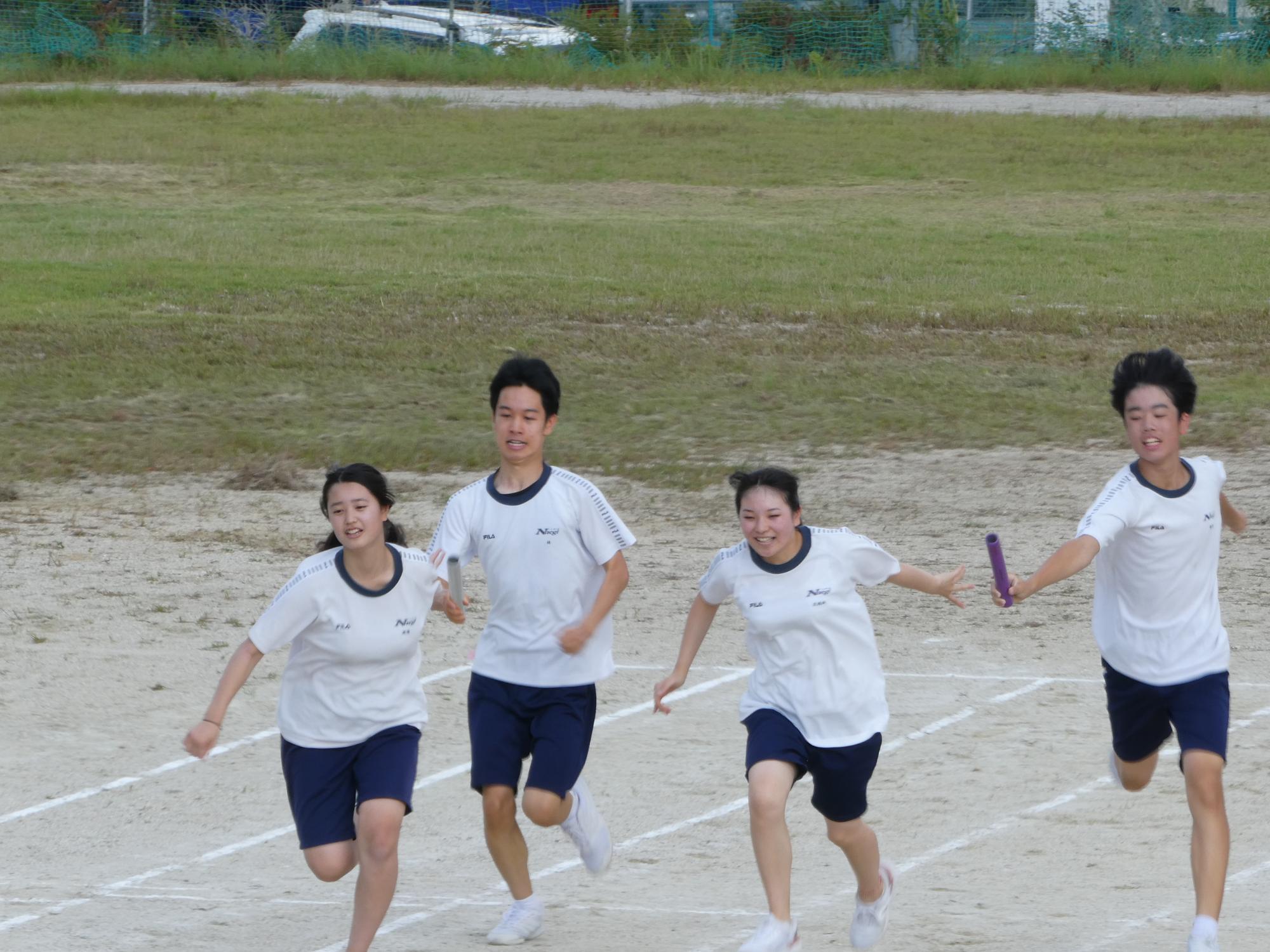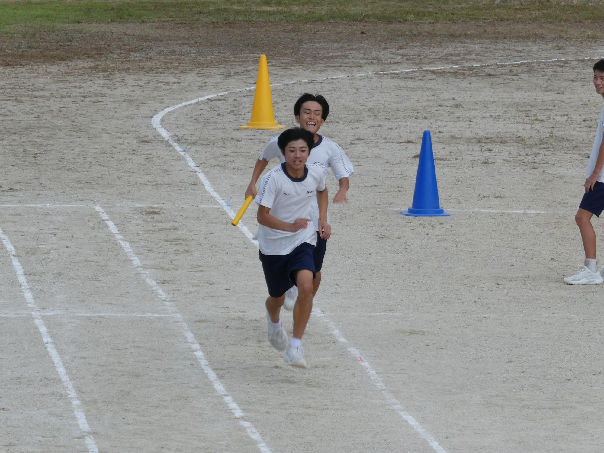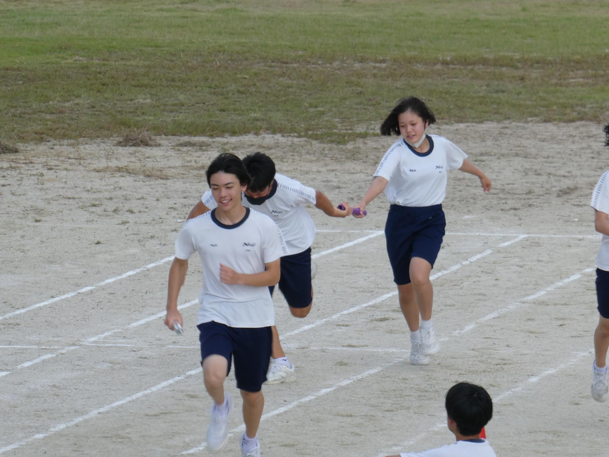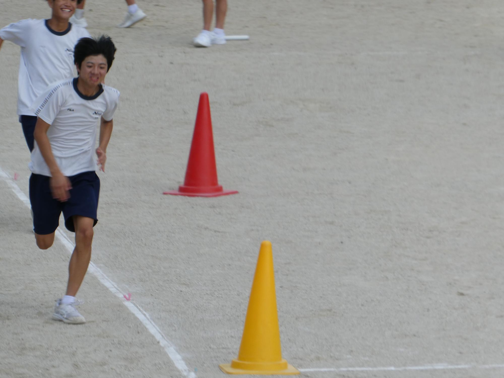 真剣なスピードでリレーの練習していました。スピードを落とさず、うまくバトンパスできるか・・・
