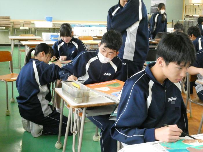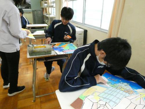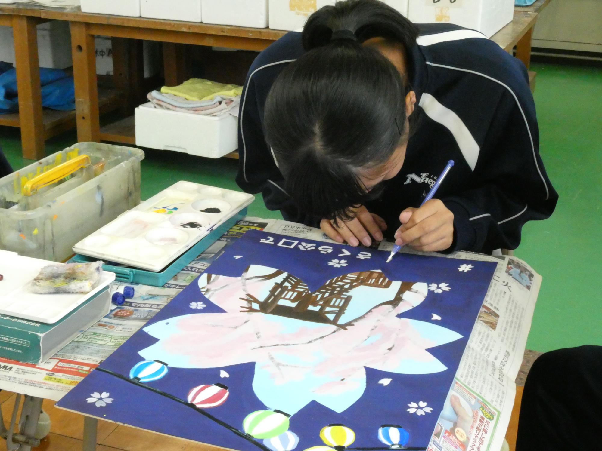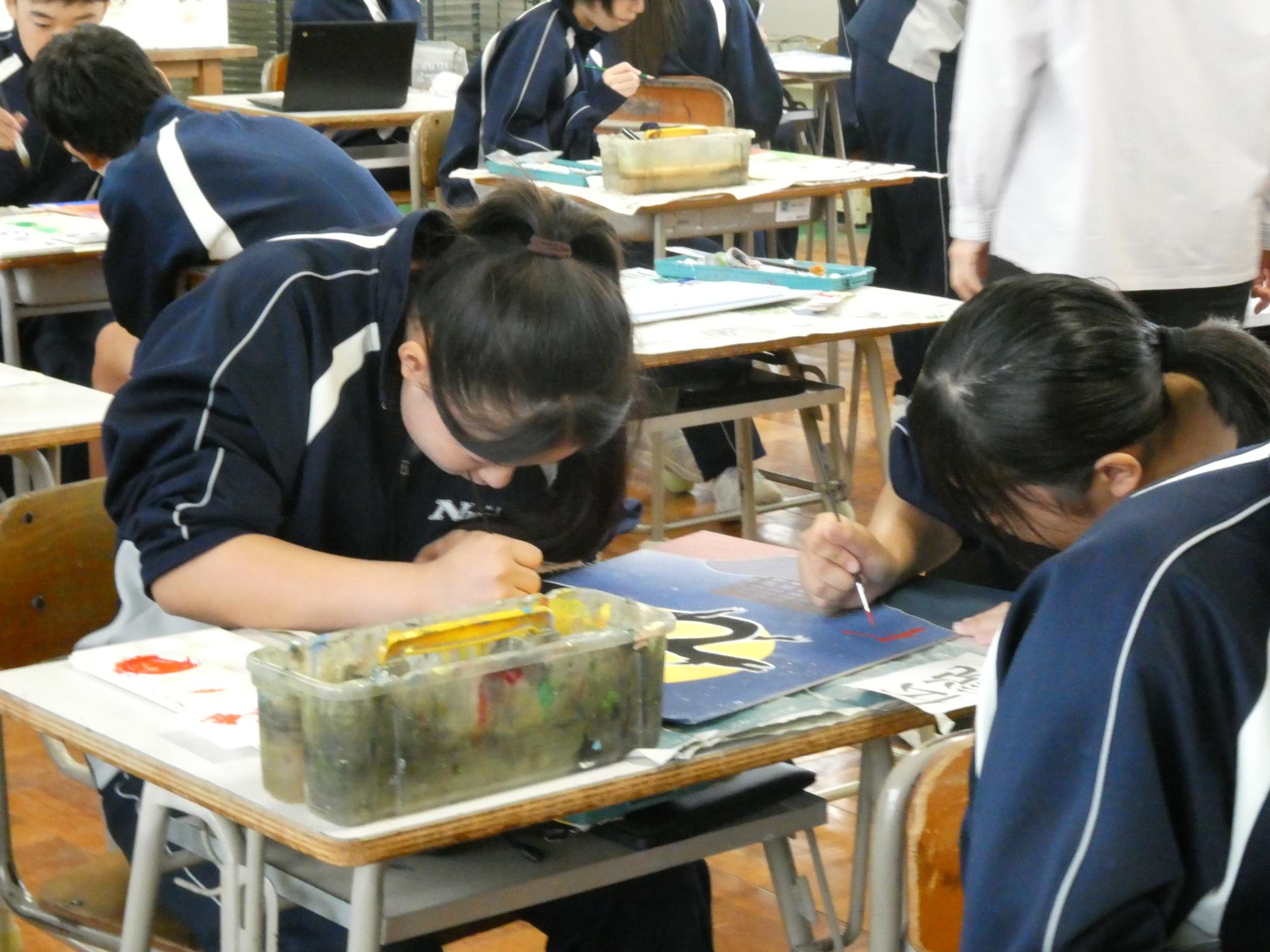 毎年好評を得ている中津川PRのポスター制作です。もう描き終わっている子も多くいました。描き終わった子たちは仲間の作品の色塗りを手伝っていました。