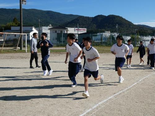 3年生は、自分で一周200mを何秒で走るのか、自分で設定してその通りに走るというトレーニングをしていました。