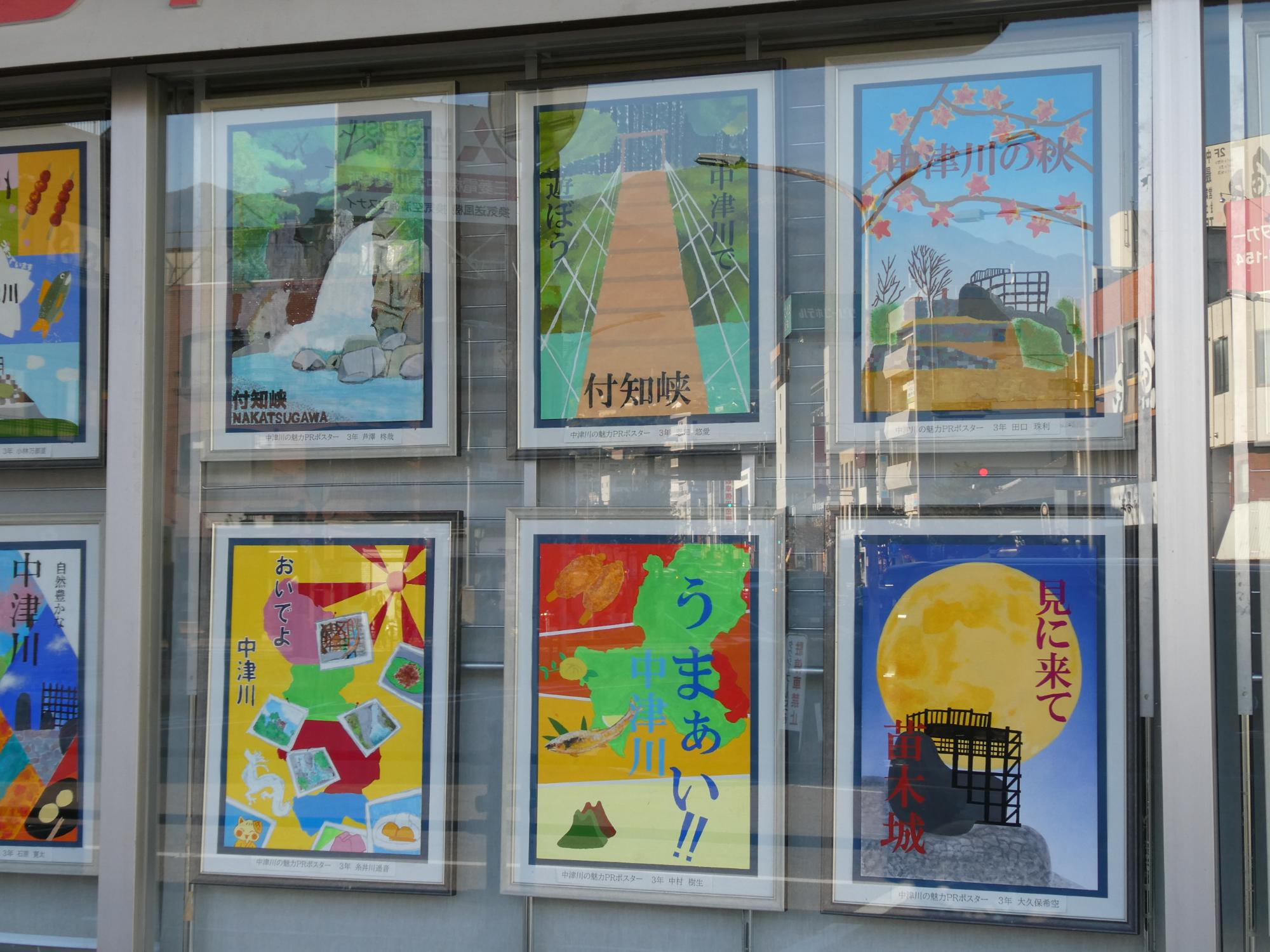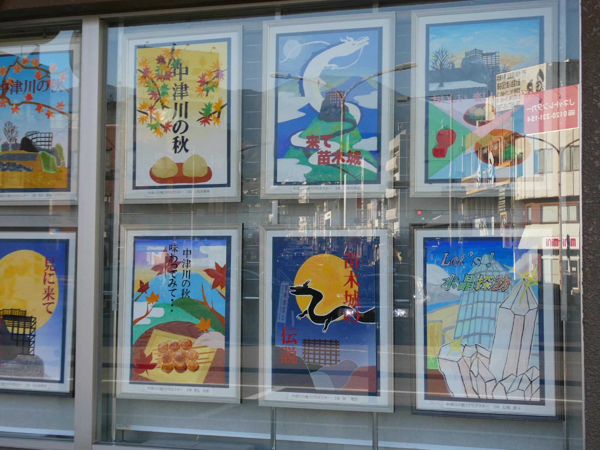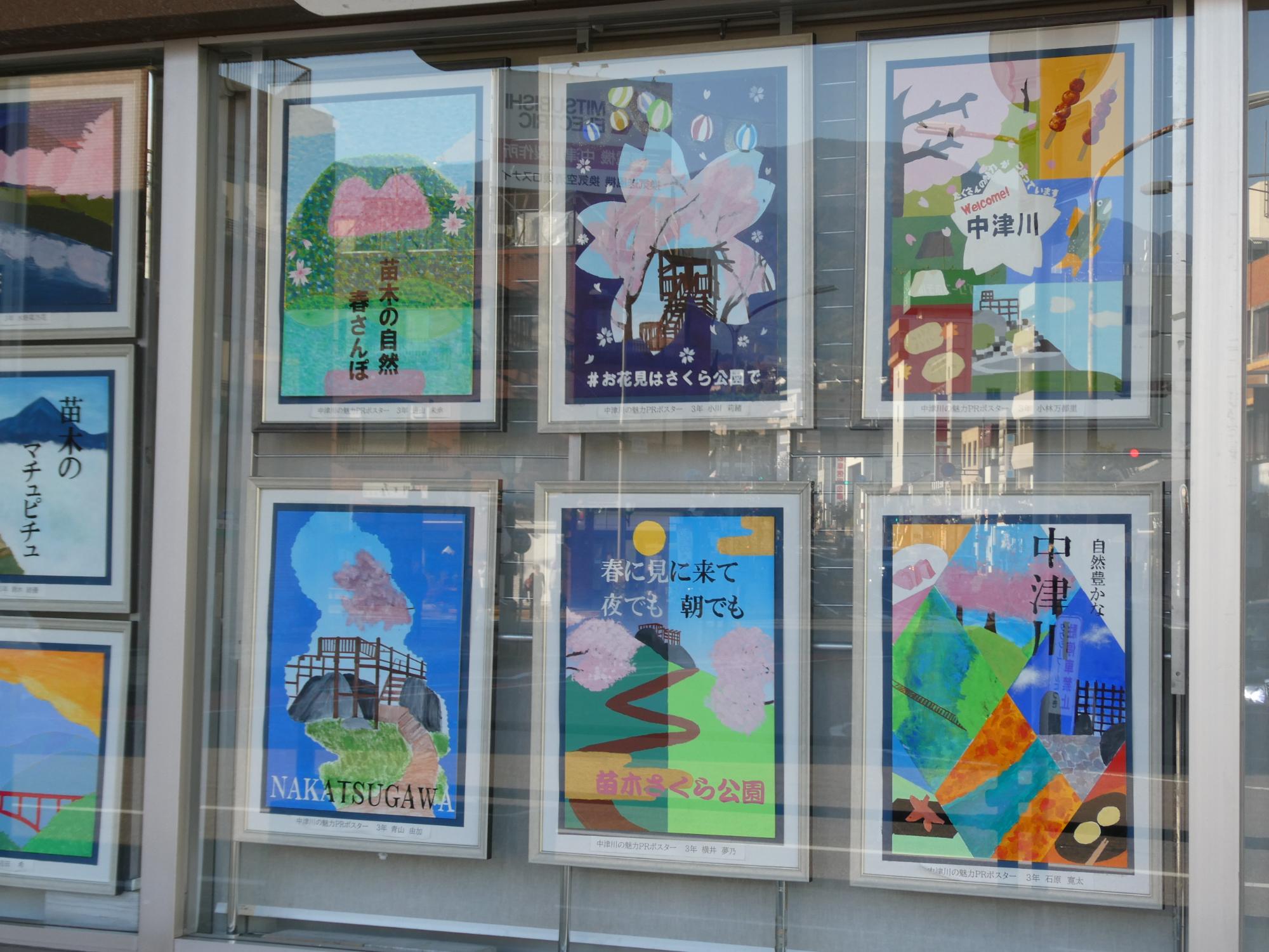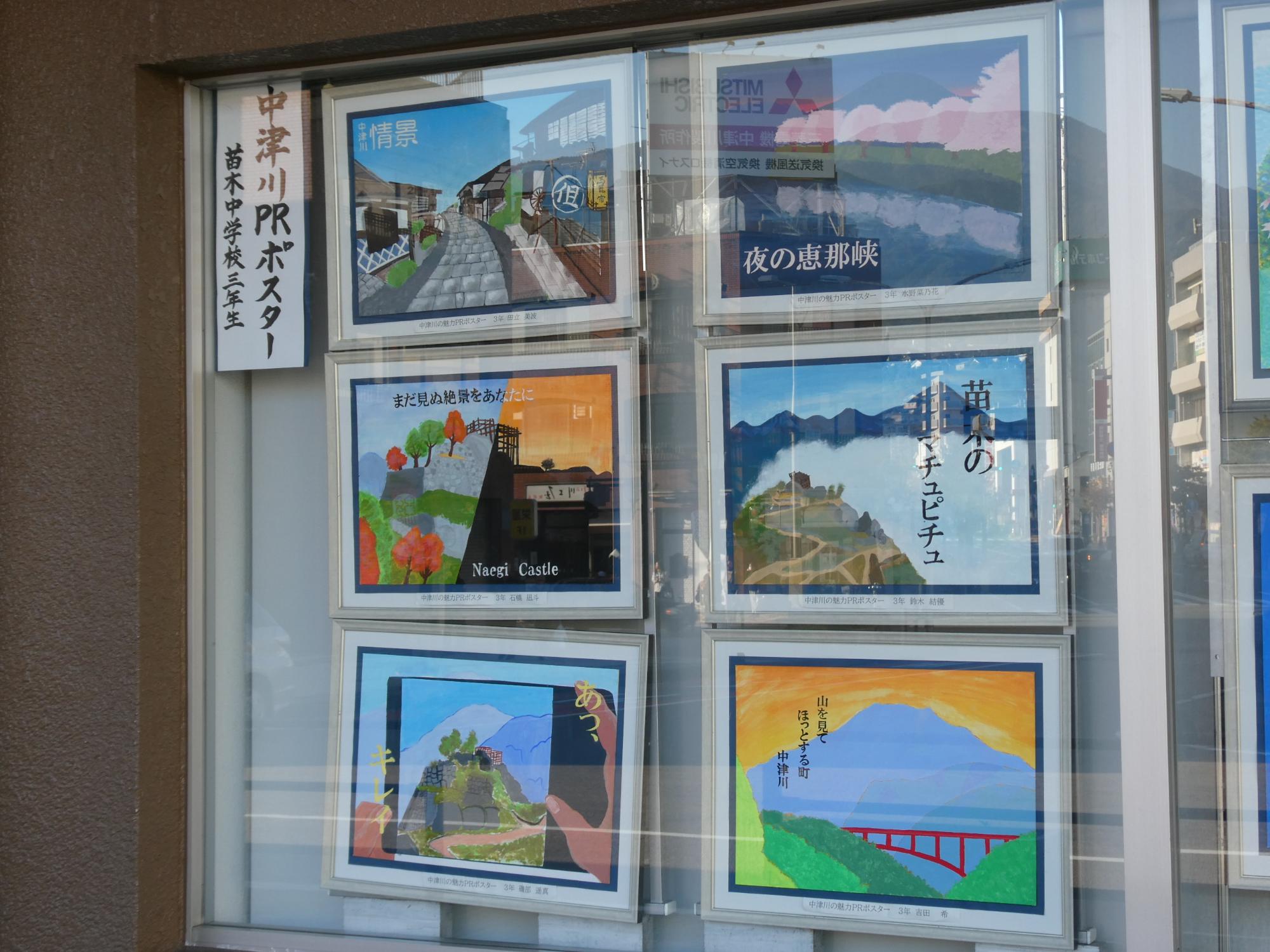 JR 中津川駅にあるステーションギャラリーには、今、苗木中学校三年生制作の「中津川PRポスター」が展示されています。