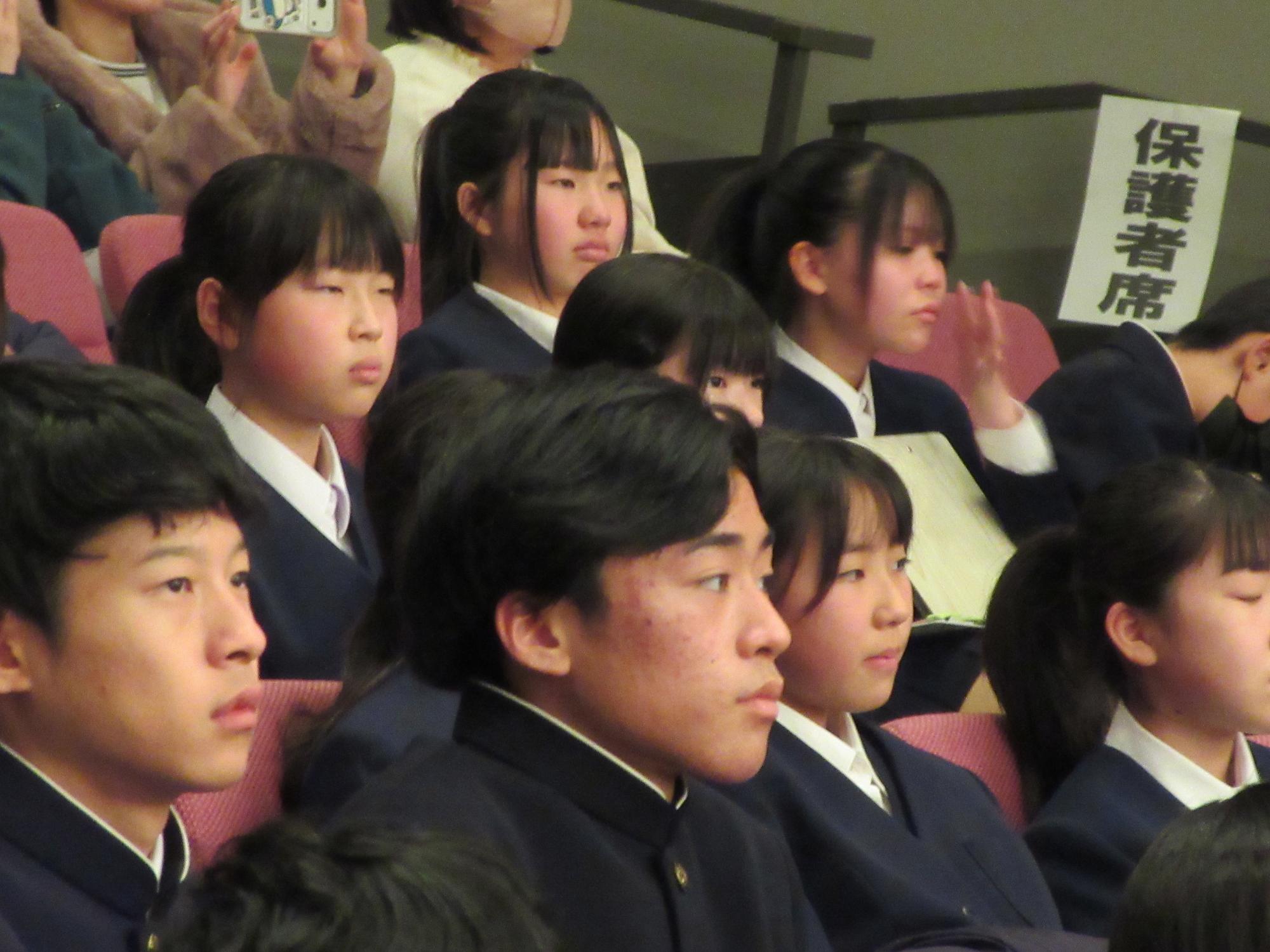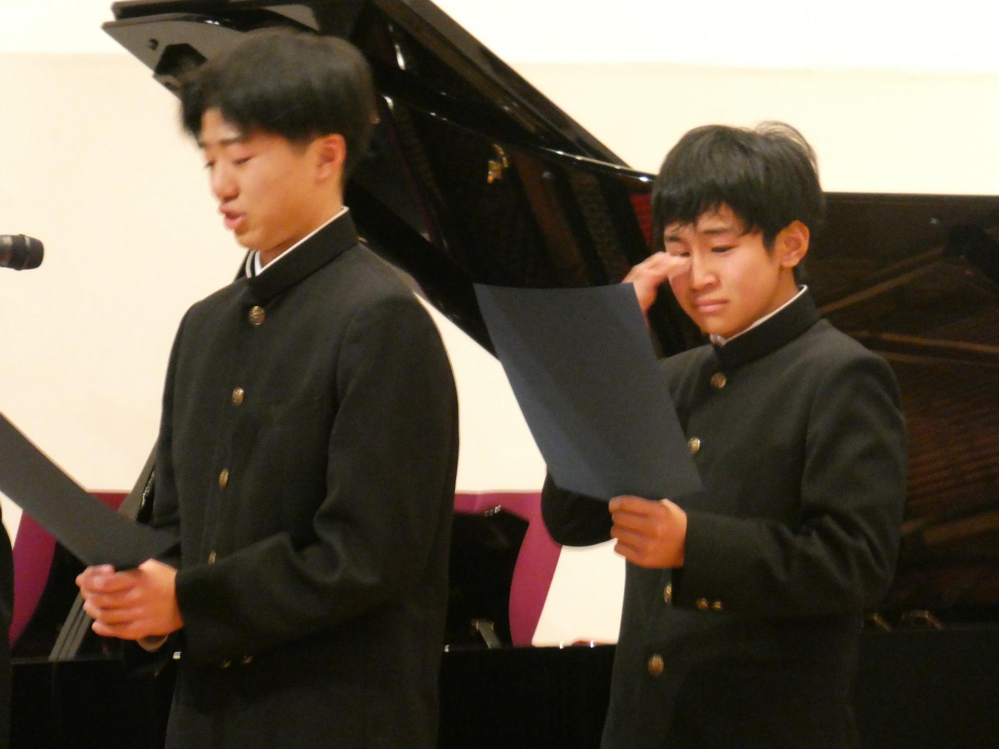 その2クラスが、学年合唱で歌い上げた「結」。それぞれのクラスでの取組をしてきたけれど、学校のために、学年のためにって、いつも思ってやってきた。ライバルだけど、親友のような2つのクラスは、お互いを高め合うことで、この苗木中を進化させてきた。親友と歌うこの「結」に、想いがあふれたね。