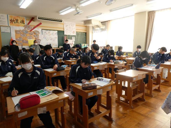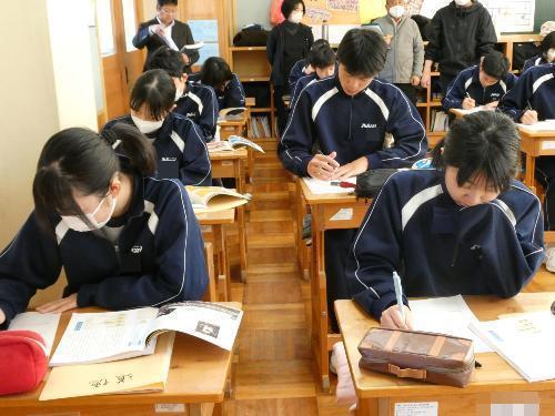 3年B組の1時間目の授業は、「道徳」。いつもと違うのは、先生たちが何人も見に来ていること。