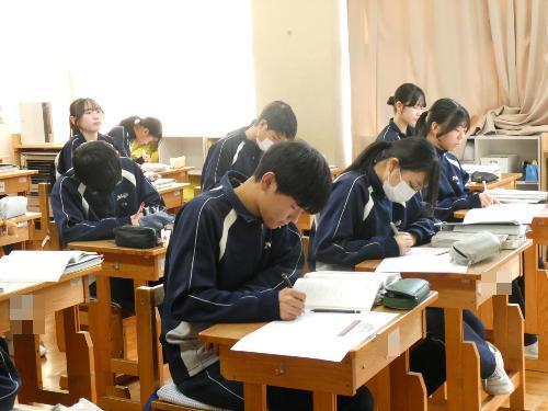 1月21日「3A~授業風景」 更新日:2026年01月21日 3Aの授業風景です。 今日は2コマ、数学と英語の授業風景。 入試まであと1ケ月半。 ピリピリとした雰囲気かと思いきや、そうでもないかな(笑) 真剣ではあるけれど、和やかな雰囲気でした。 【数学】 【英語】