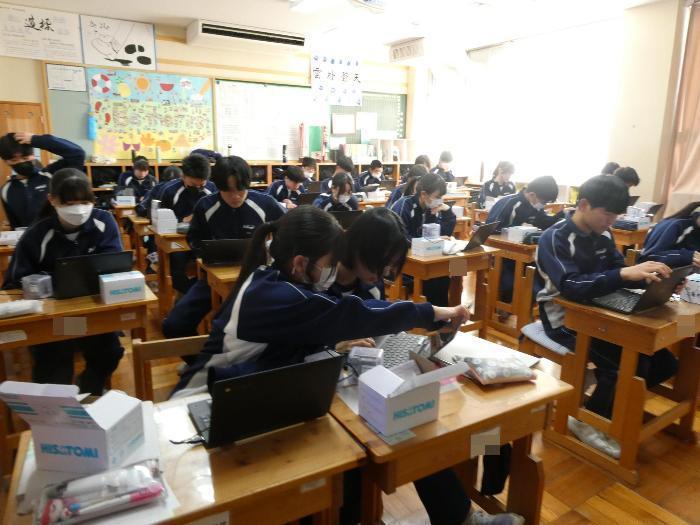 3Aの授業風景は技術。デジタル時計を作っていました。