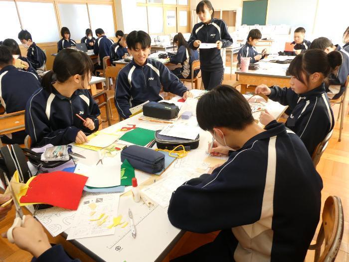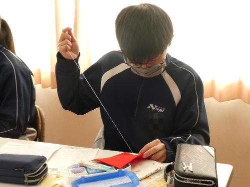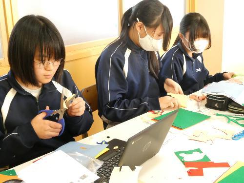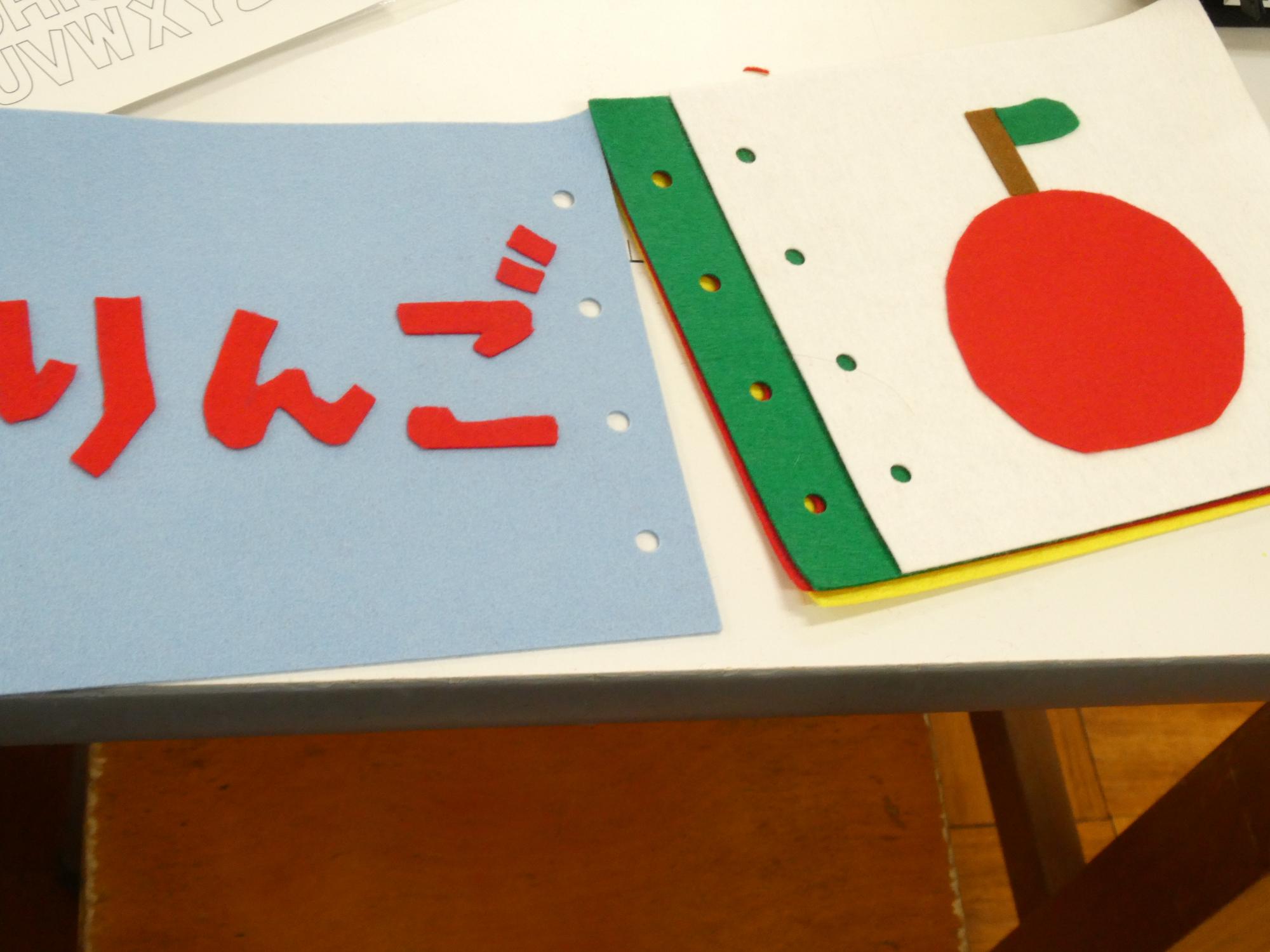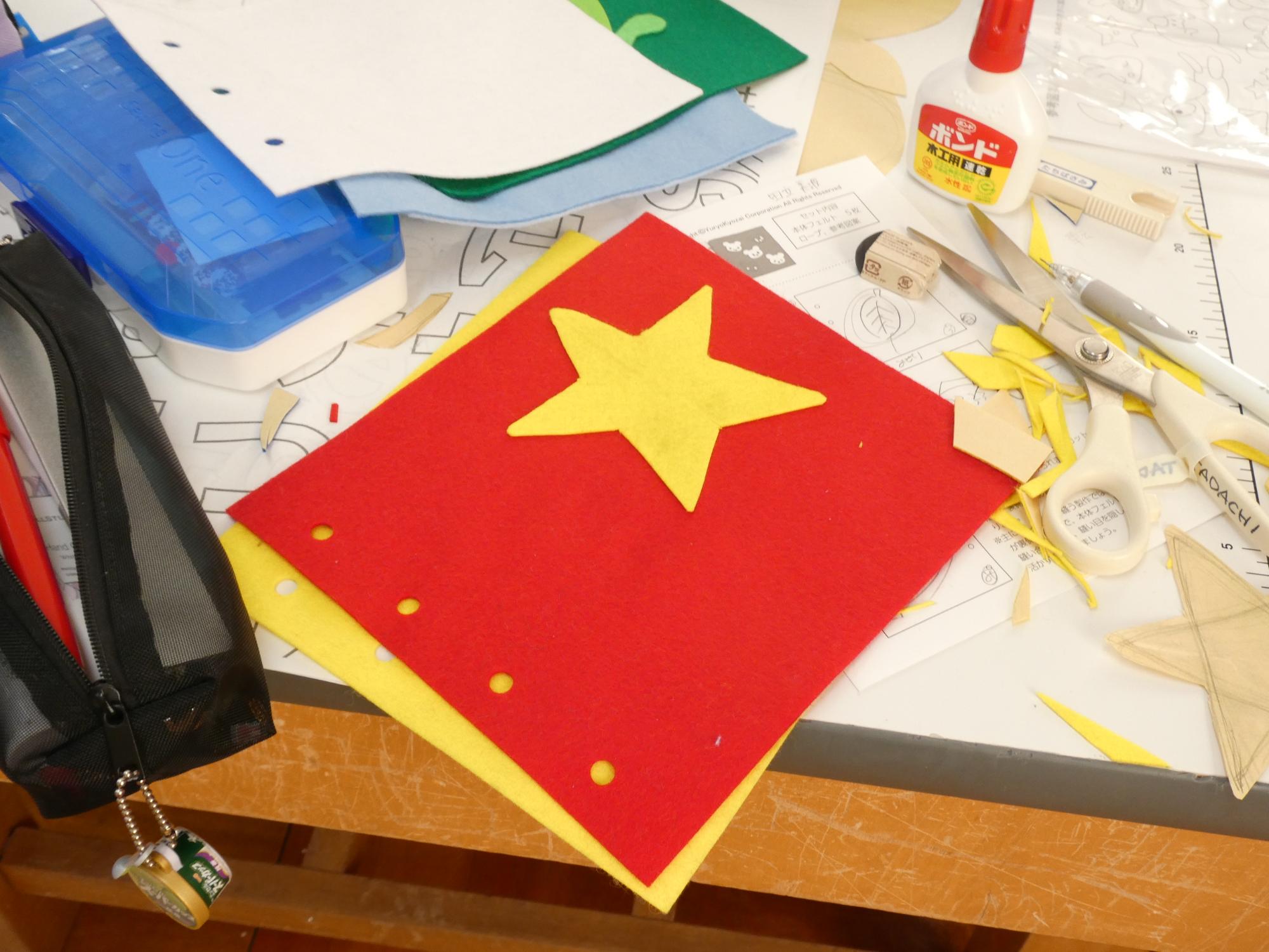 裏にのりが付いているフエルトは、貼った後に、アイロンで圧着すればくっつきます。普通のフエルト生地だと、針と糸で縫い付けなくてはなりません。ほとんどの生徒がのり付きですが、そんな中、針と糸で頑張って縫っている生徒もいました。えらいっ!