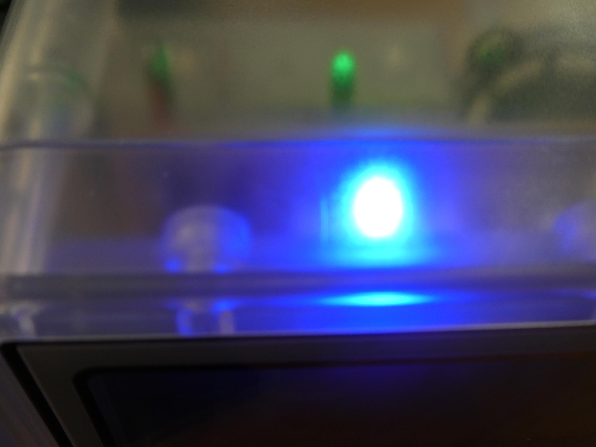 ゆっくり変わる色を選ぶ人、フラッシュのように目まぐるしく色が変わる設定にした人、いろいろです。この光の変化は、実際の生活では邪魔ですね(笑)気になって寝付けないし、目覚ましの光にしたらちょっと弱すぎる。