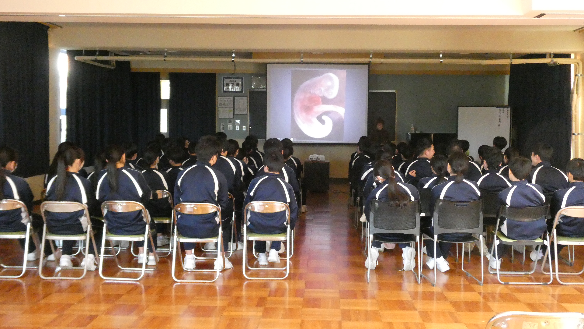 2月20日「3年生~思春期教室」 更新日:2026年02月20日 毎年、この時期に行っていただいている、三年生の思春期教室です。 生命の誕生から、命の尊厳まで、単なる性教育ではない、命の教育 命の尊さに涙を浮かべる生徒もいた・・・ とても意味のある、価値のある時間をいただきました。